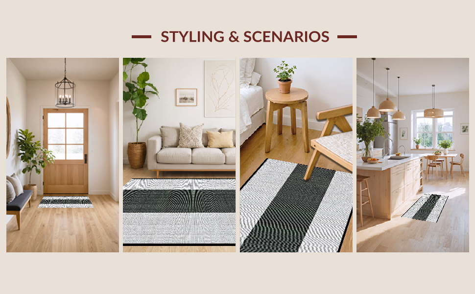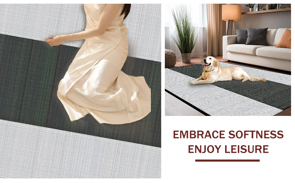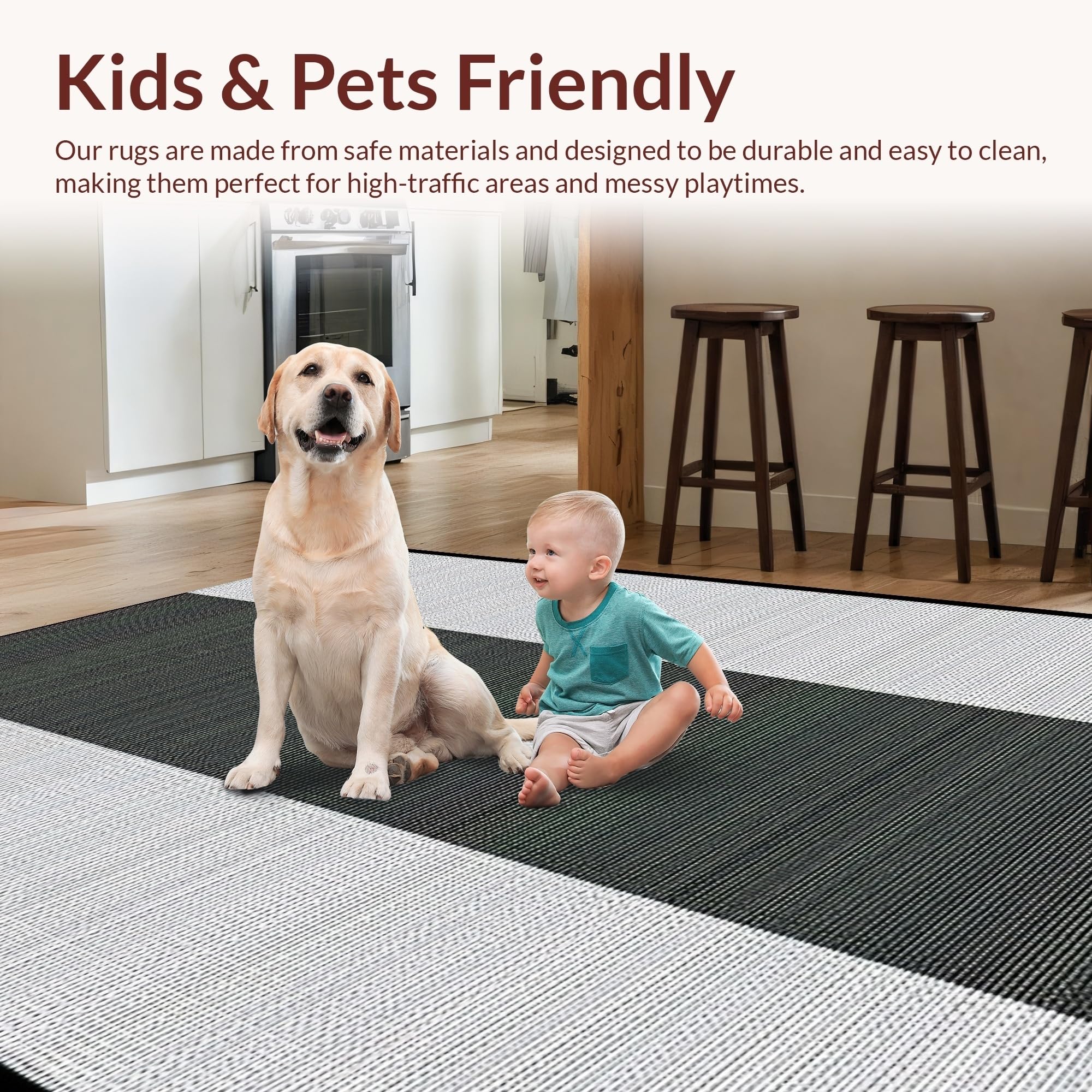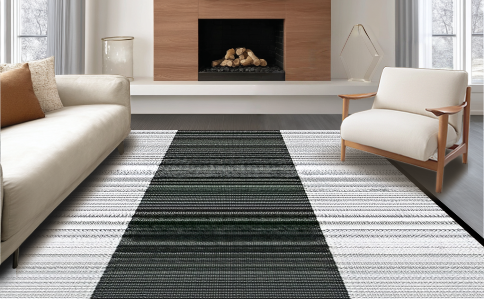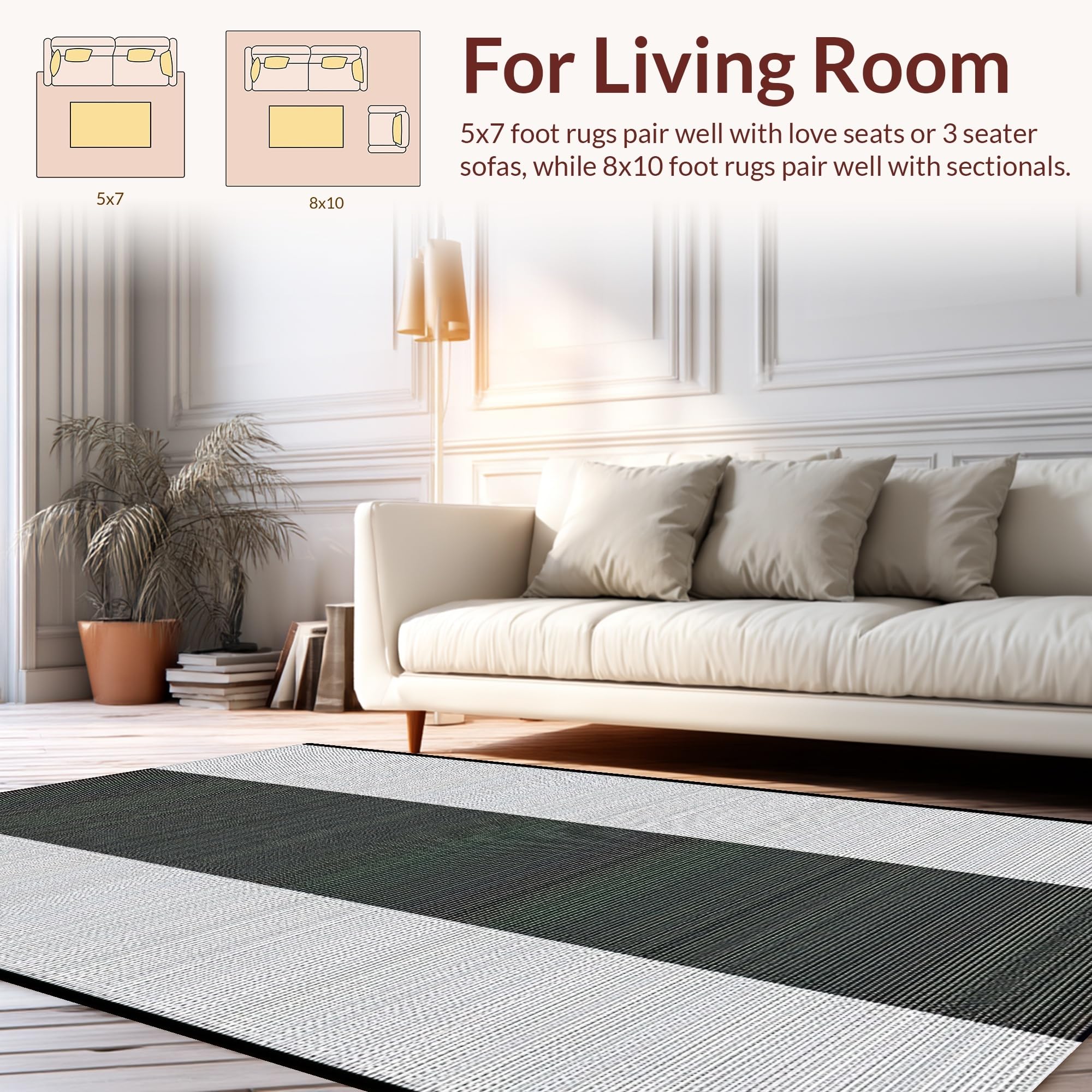 Ultra Soft Area Rug, Non Slip, Stain Resistant, Washable Area Rugs for Living Room, Bedroom, Contemporary Bold Graphic Lines(Black) Overview: