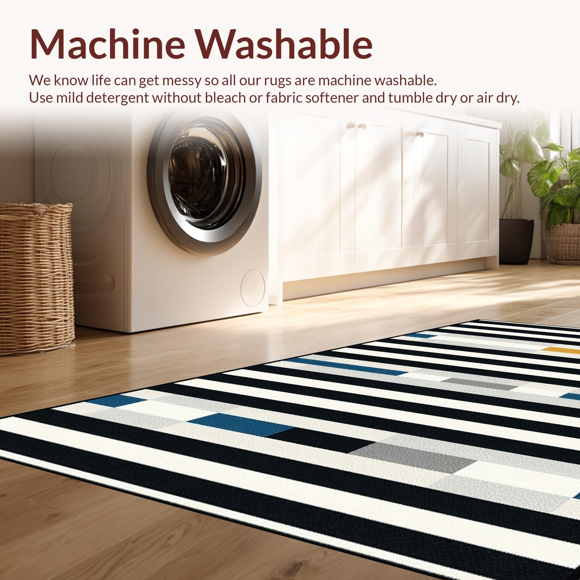 - Machine Washable: Our rugs can be easily thrown in the wash machine.