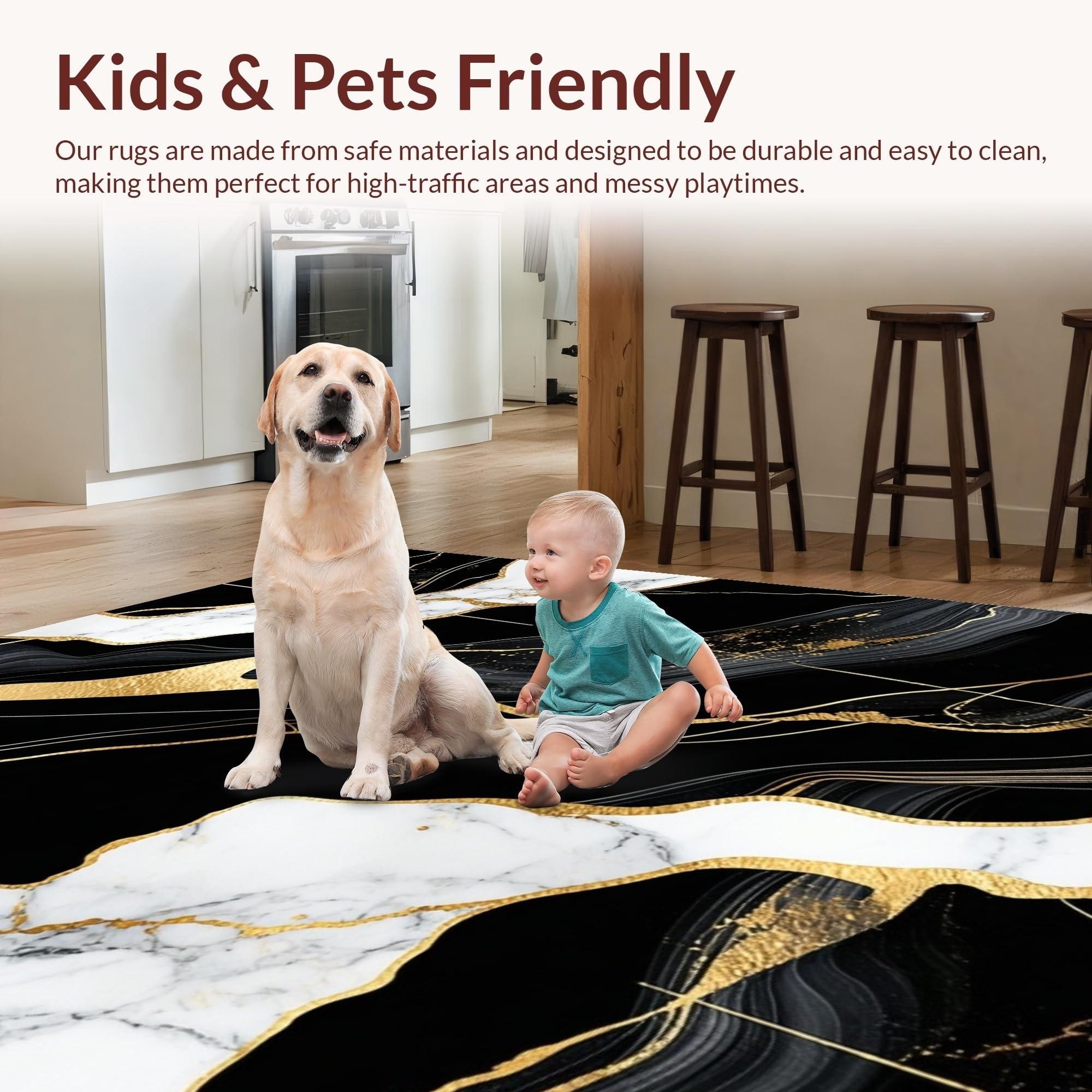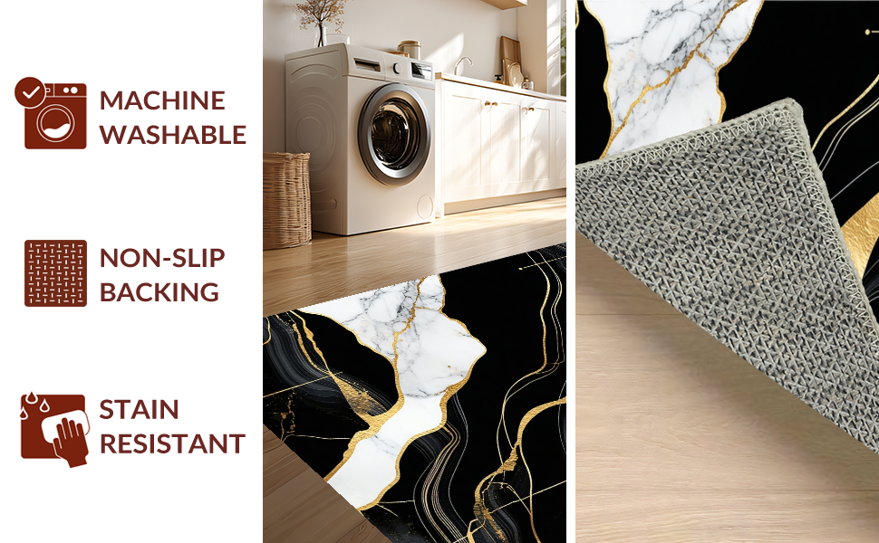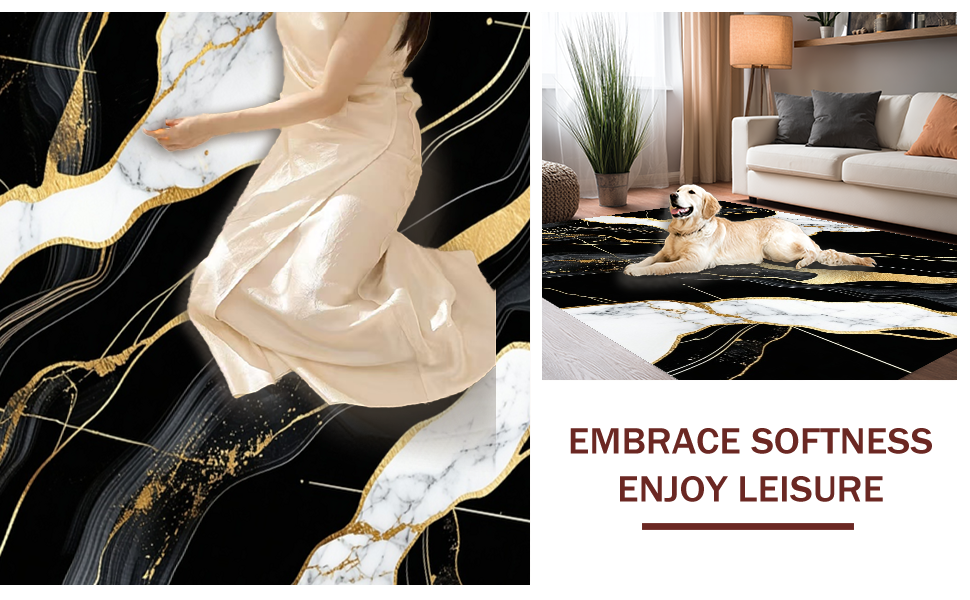 Ultra Soft Area Rug, Non Slip, Stain Resistant, Washable Area Rugs for Living Room, Bedroom, Contemporary Bold Patterned Look(Black) Overview: