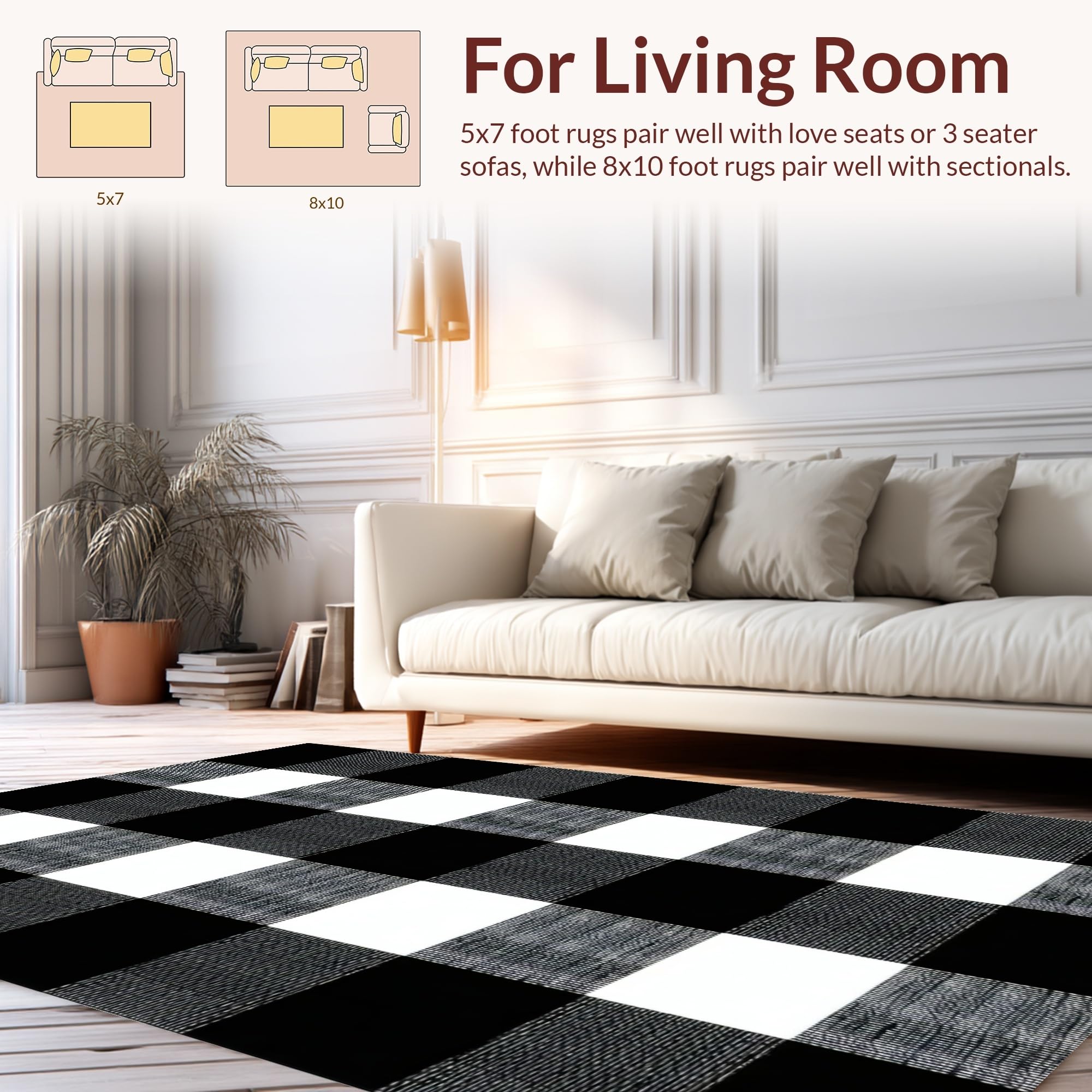 Ultra Soft Area Rug, Non Slip, Stain Resistant, Washable Area Rugs for Living Room, Bedroom, Contemporary Bold Stripe Arrangement(Black) Overview: