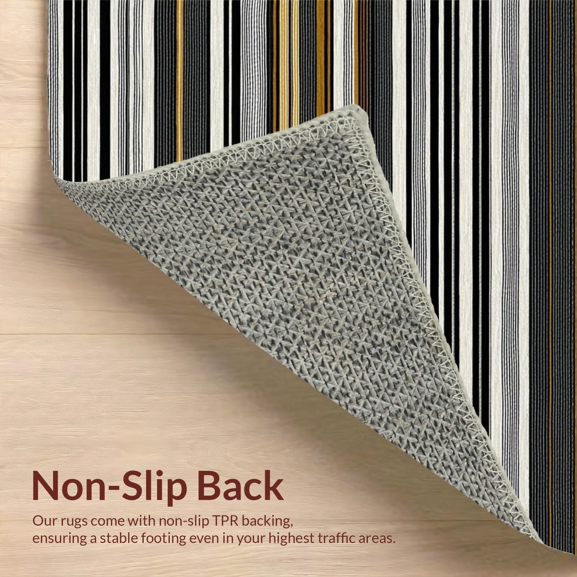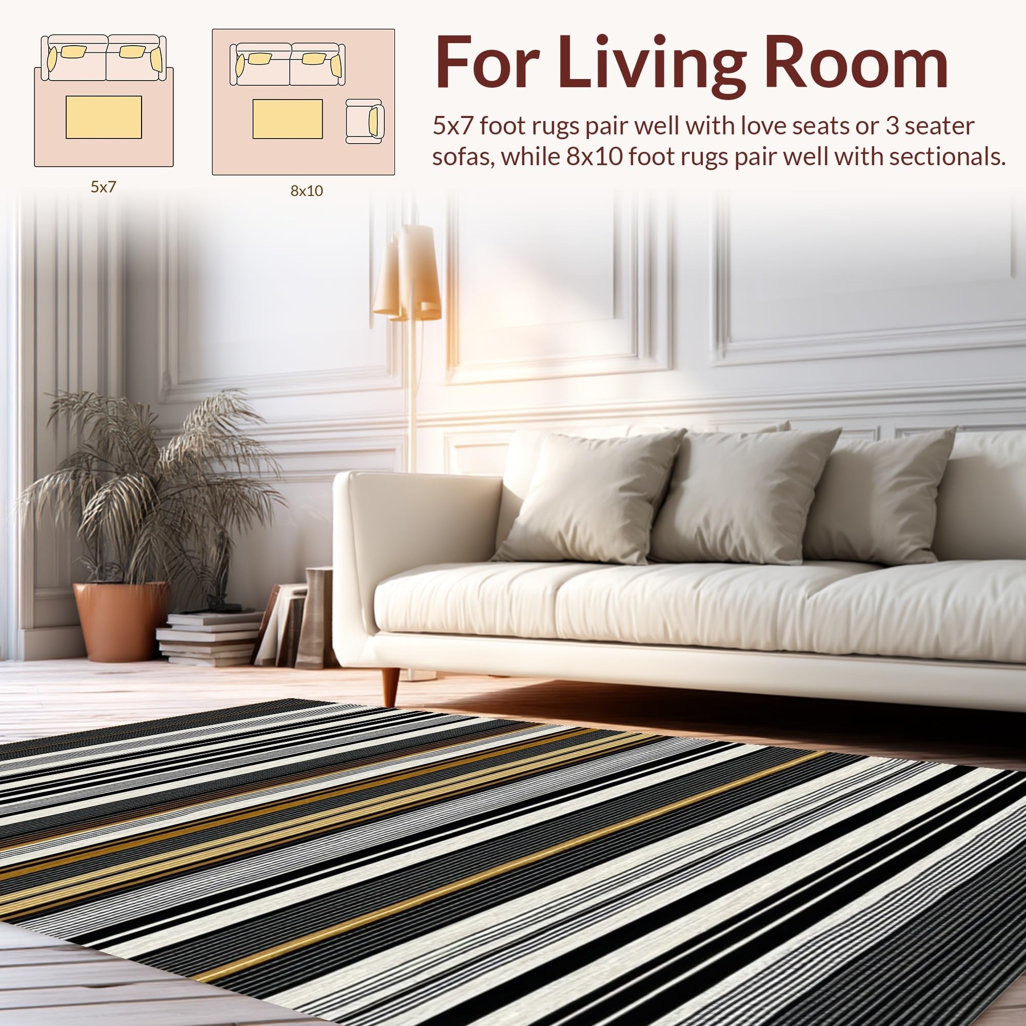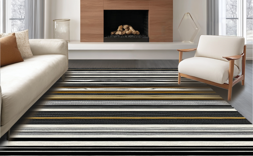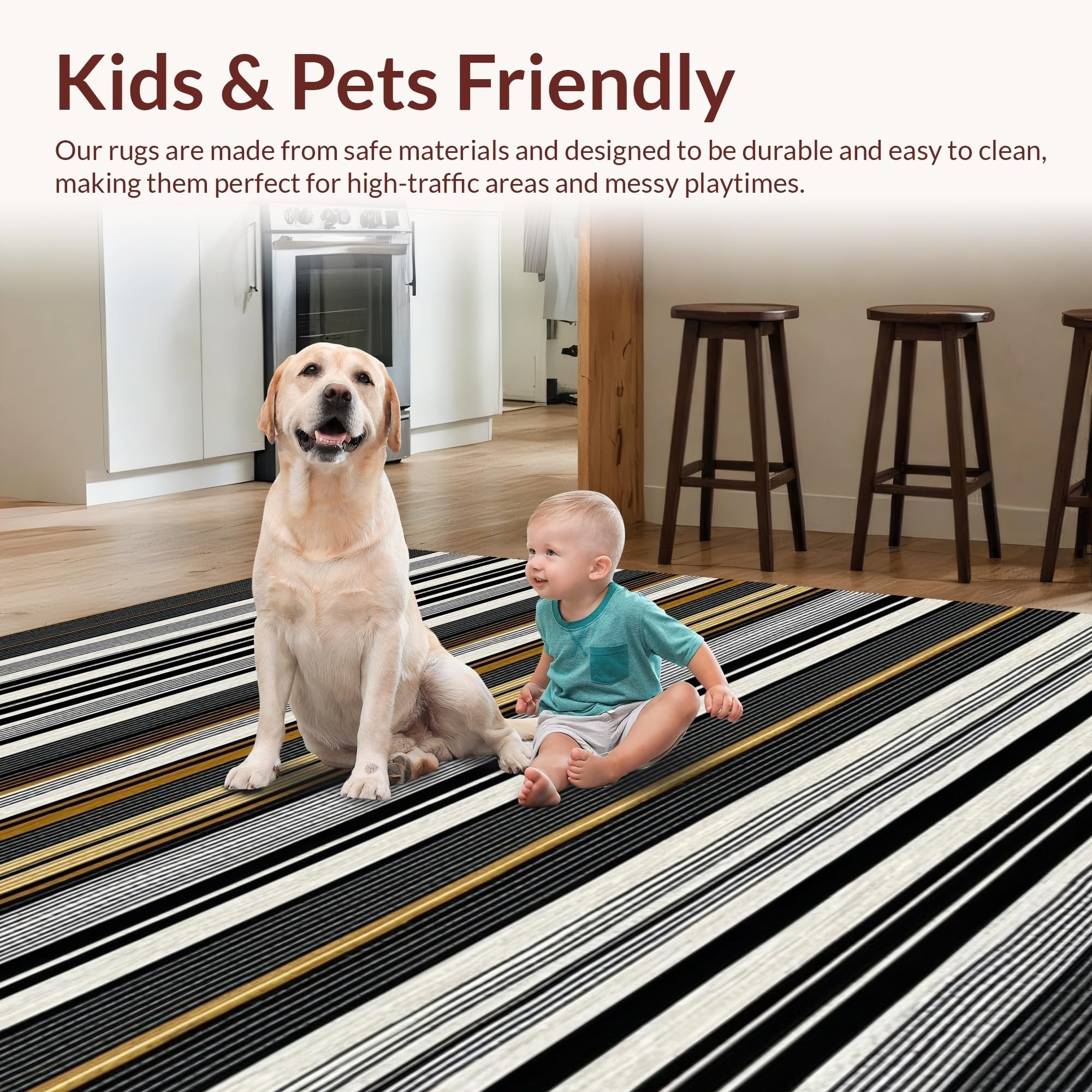 Ultra Soft Area Rug, Non Slip, Stain Resistant, Washable Area Rugs for Living Room, Bedroom, Contemporary Bold Stripe Configuration(Black) Overview: