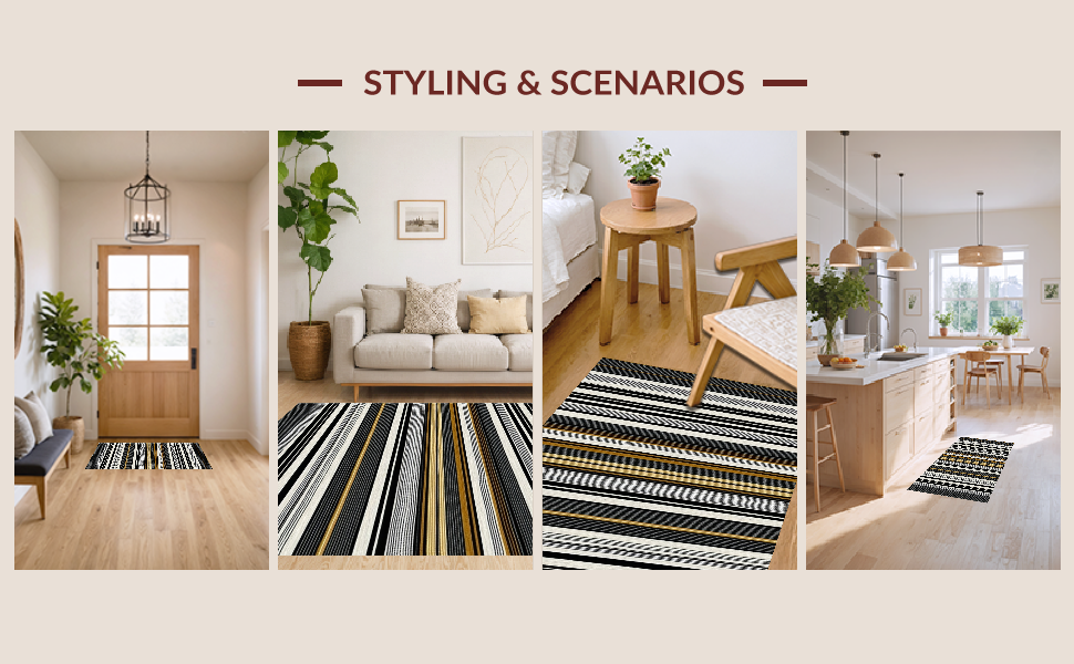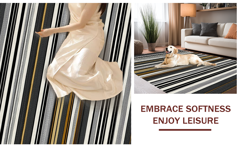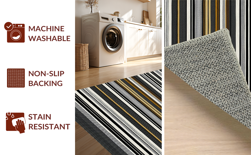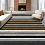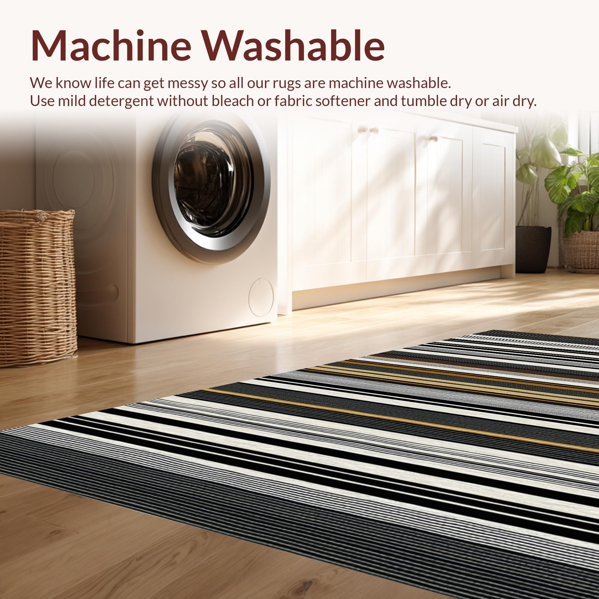 Ultra Soft Area Rug, Non Slip, Stain Resistant, Washable Area Rugs for Living Room, Bedroom, Contemporary Bold Stripe Configuration(Black) Overview: