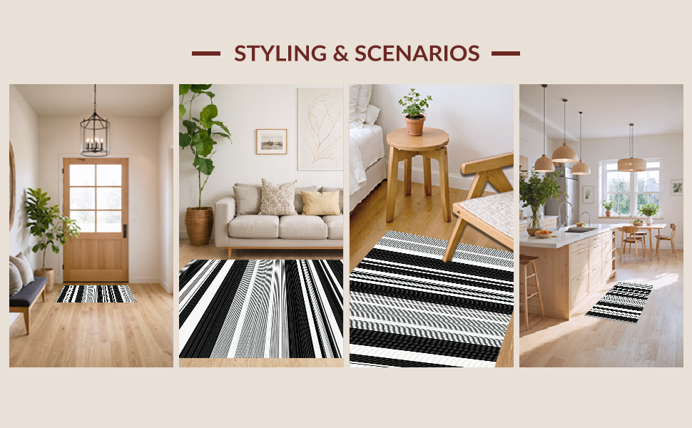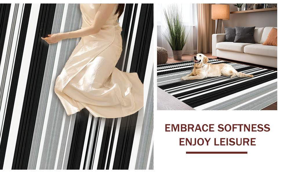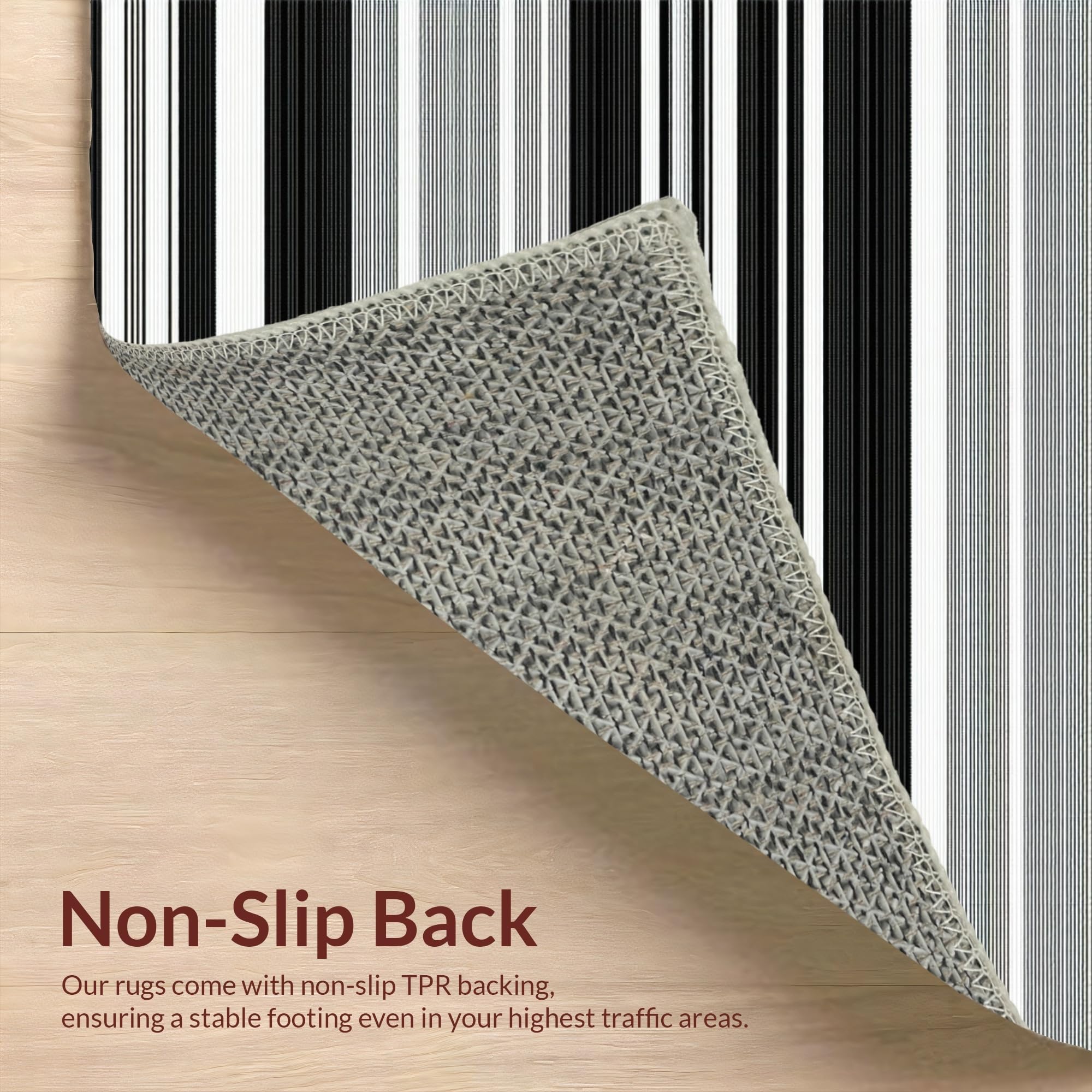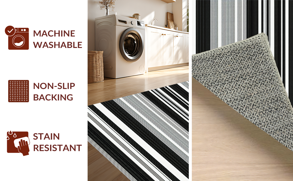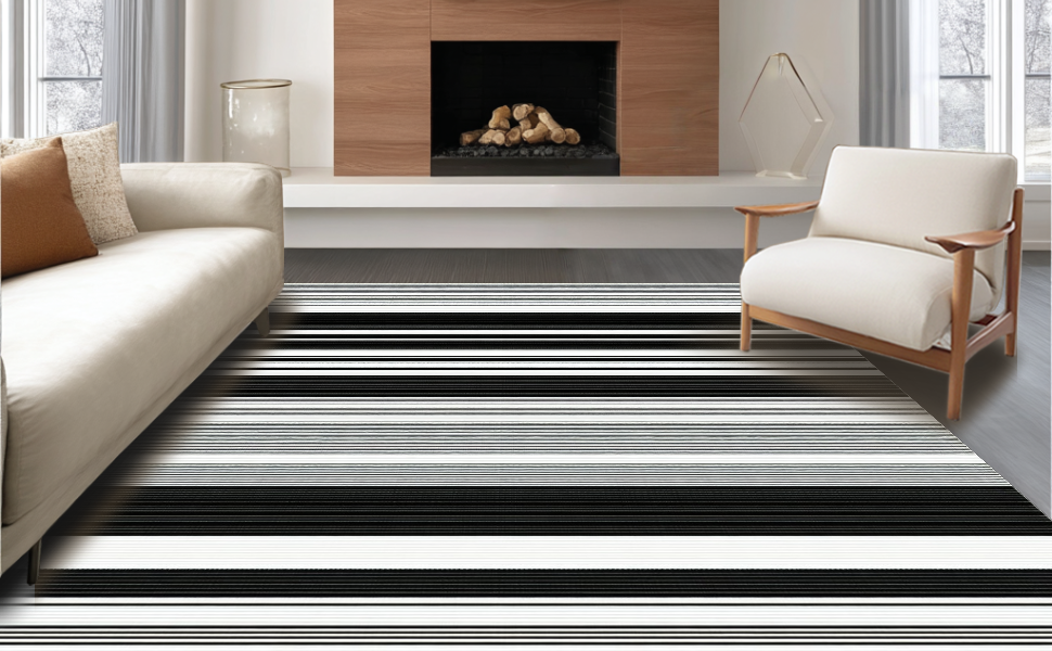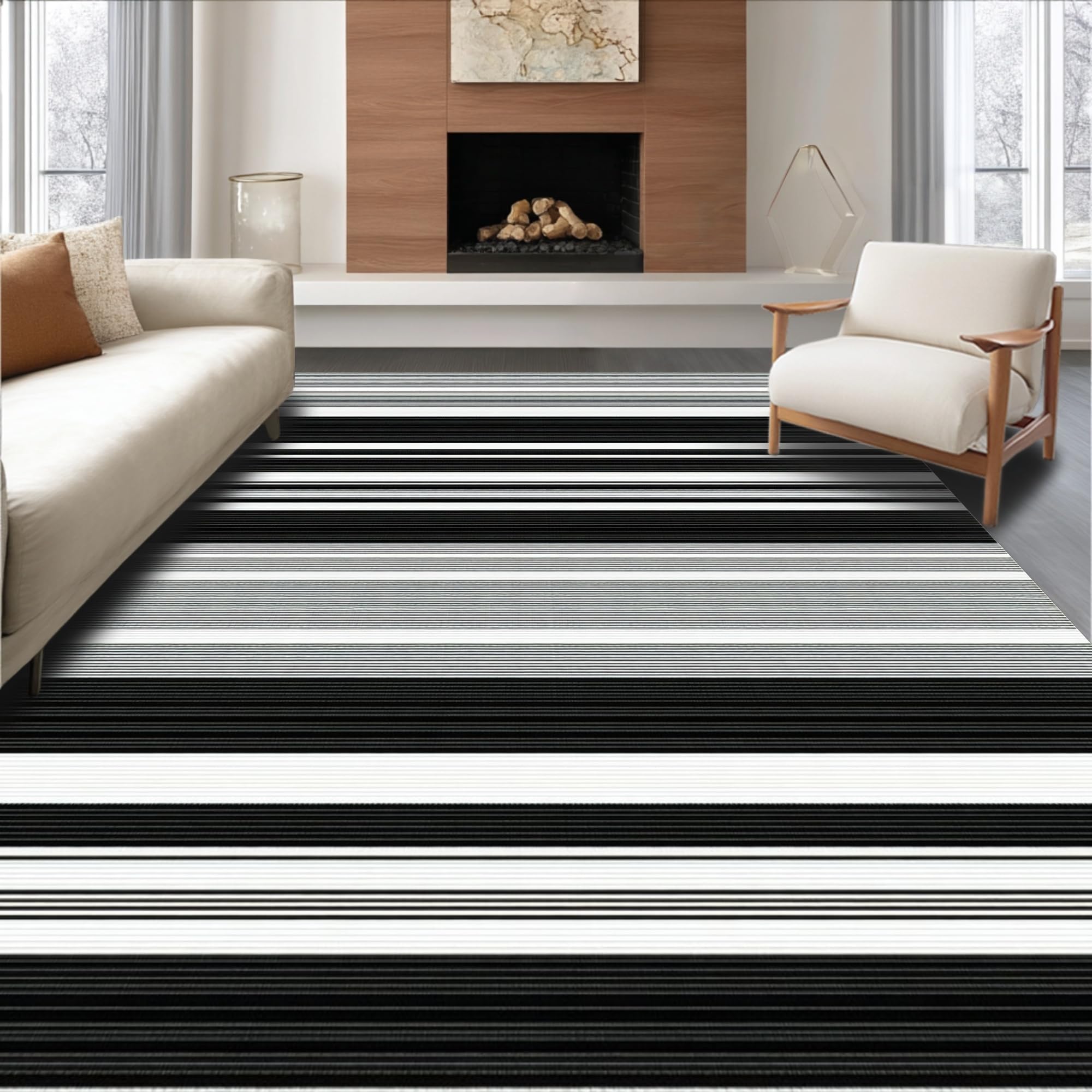 Ultra Soft Area Rug, Non Slip, Stain Resistant, Washable Area Rugs for Living Room, Bedroom, Contemporary Bold Striped Aesthetic(Black) Overview: