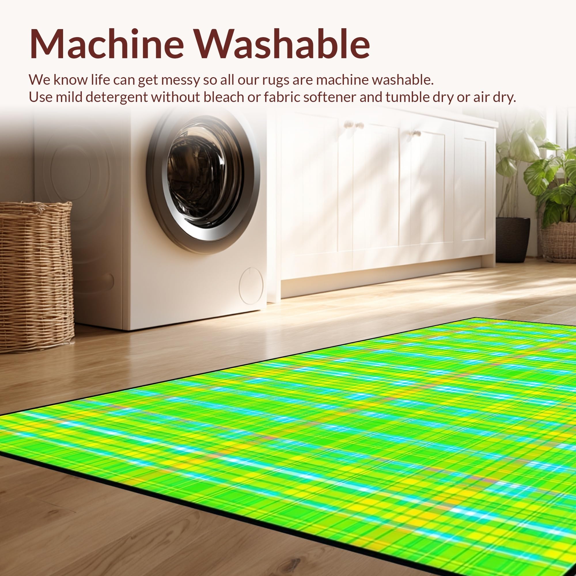 - Machine Washable: Our rugs can be easily thrown in the wash machine.