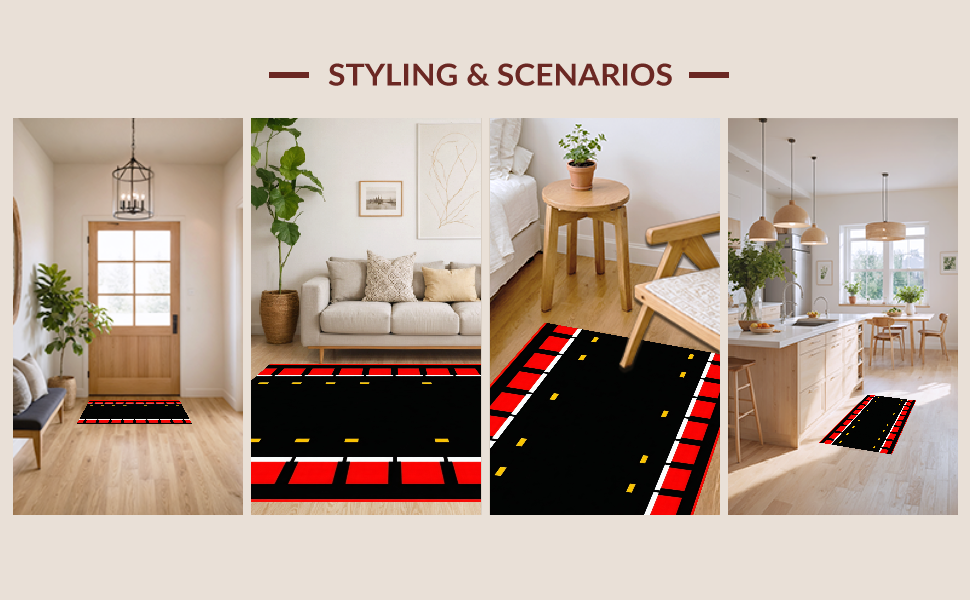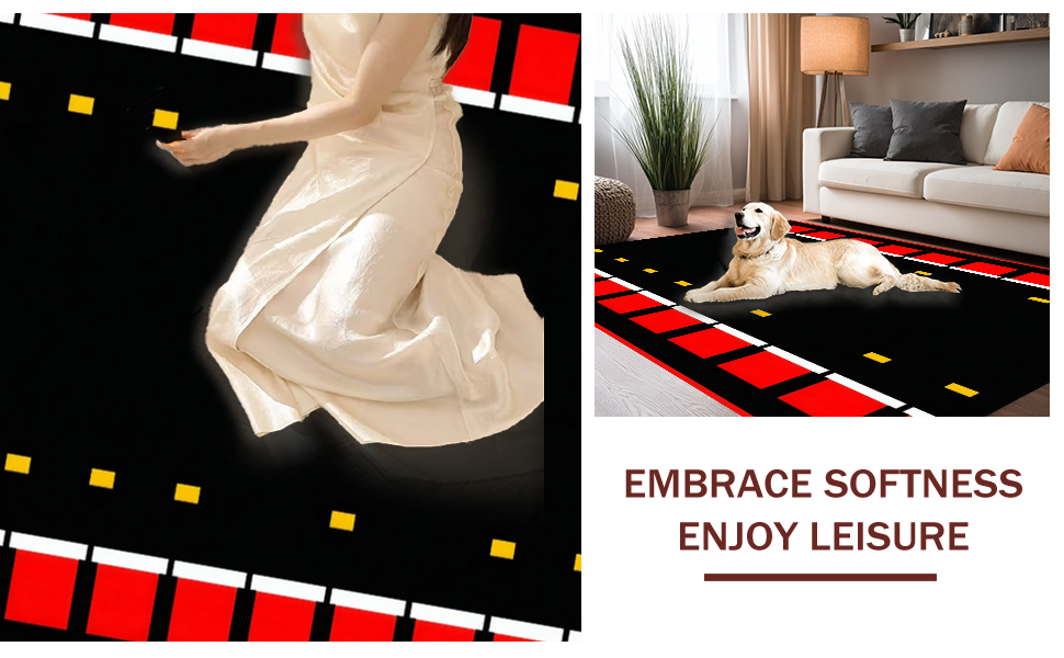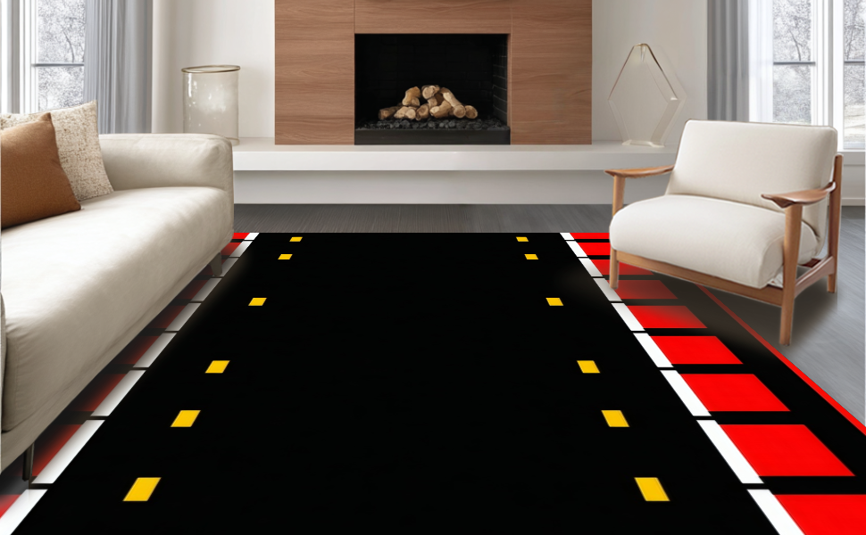 Ultra Soft Area Rug, Non Slip, Stain Resistant, Washable Area Rugs for Living Room, Bedroom, Contemporary Bold Track Motif(Red) Overview: