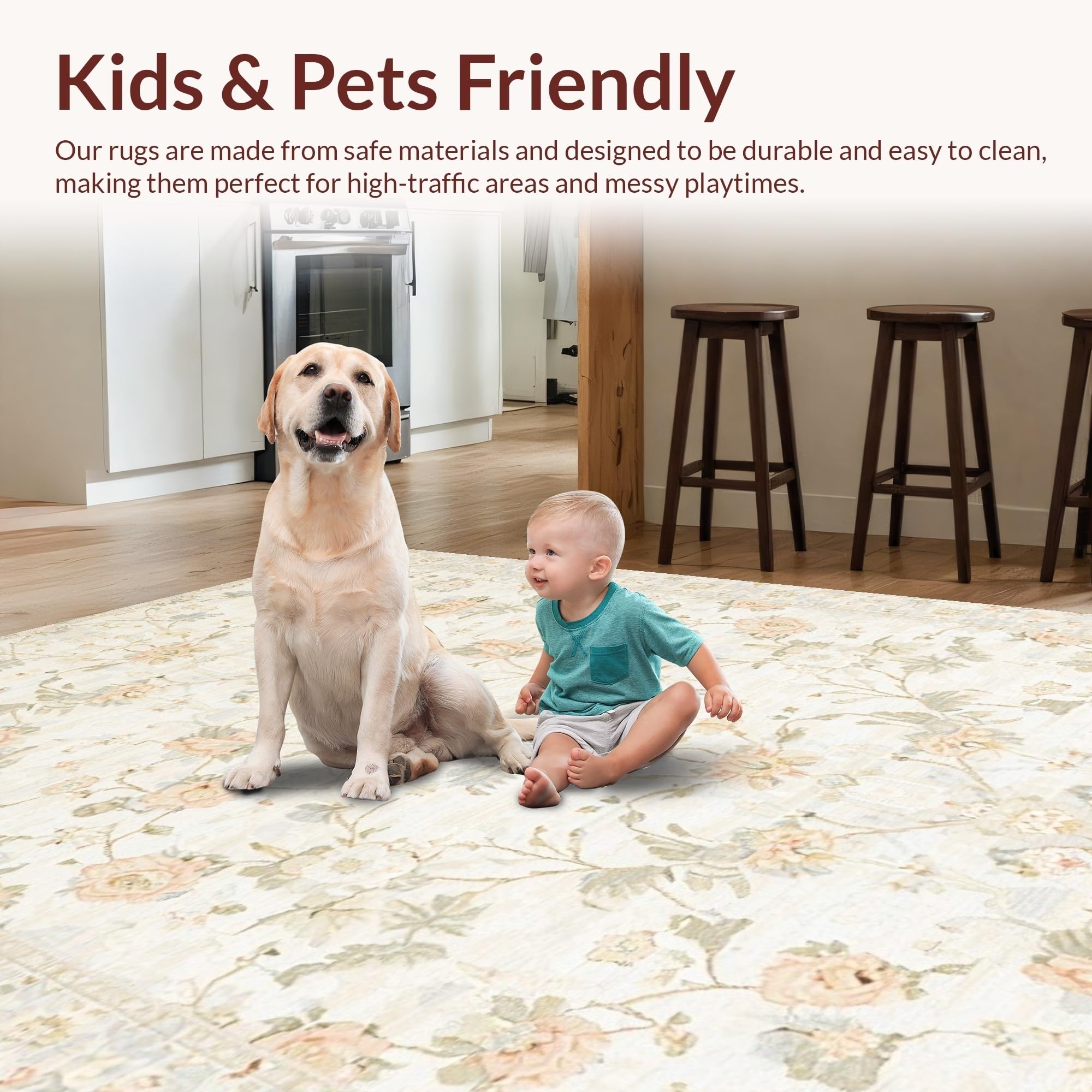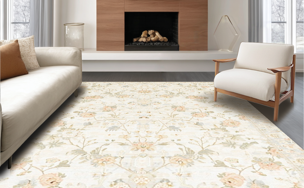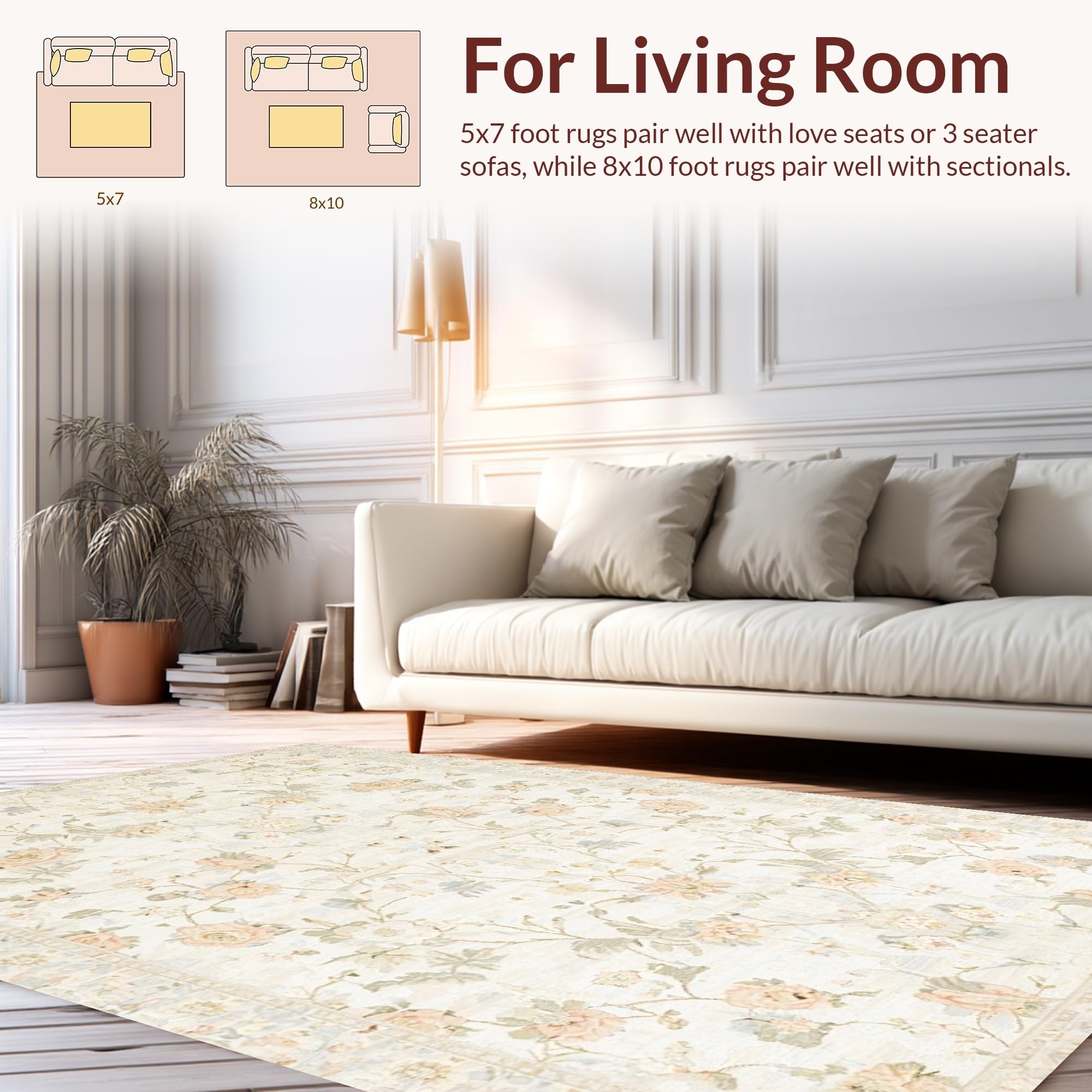 Ultra Soft Area Rug, Non Slip, Stain Resistant, Washable Area Rugs for Living Room, Bedroom, Contemporary Botanical Charm with Elegance(Beige) Overview: