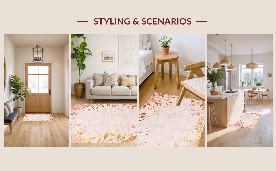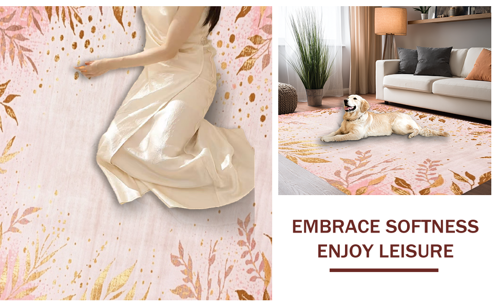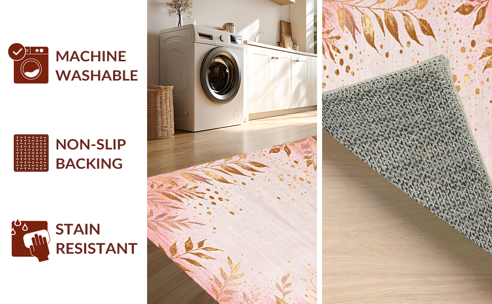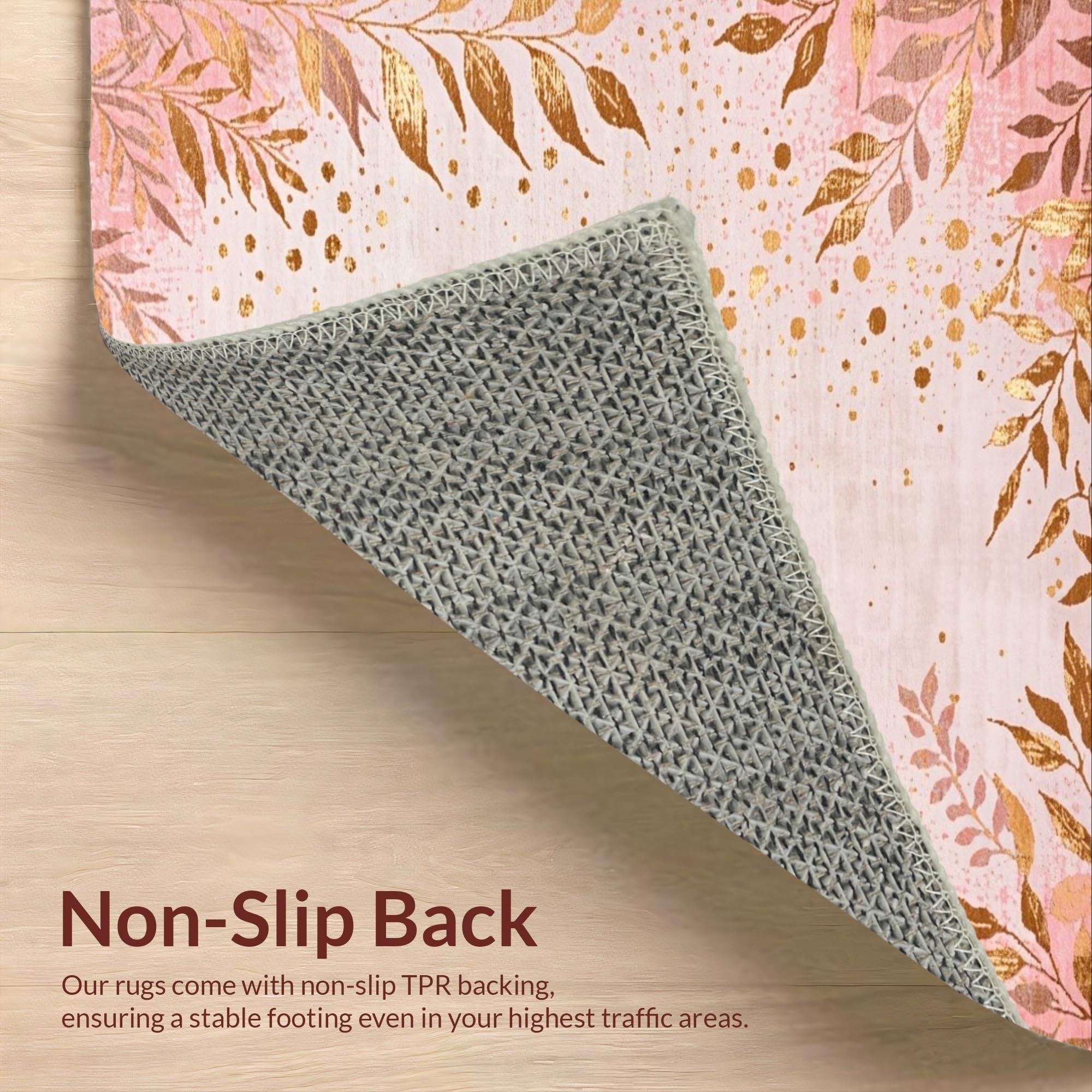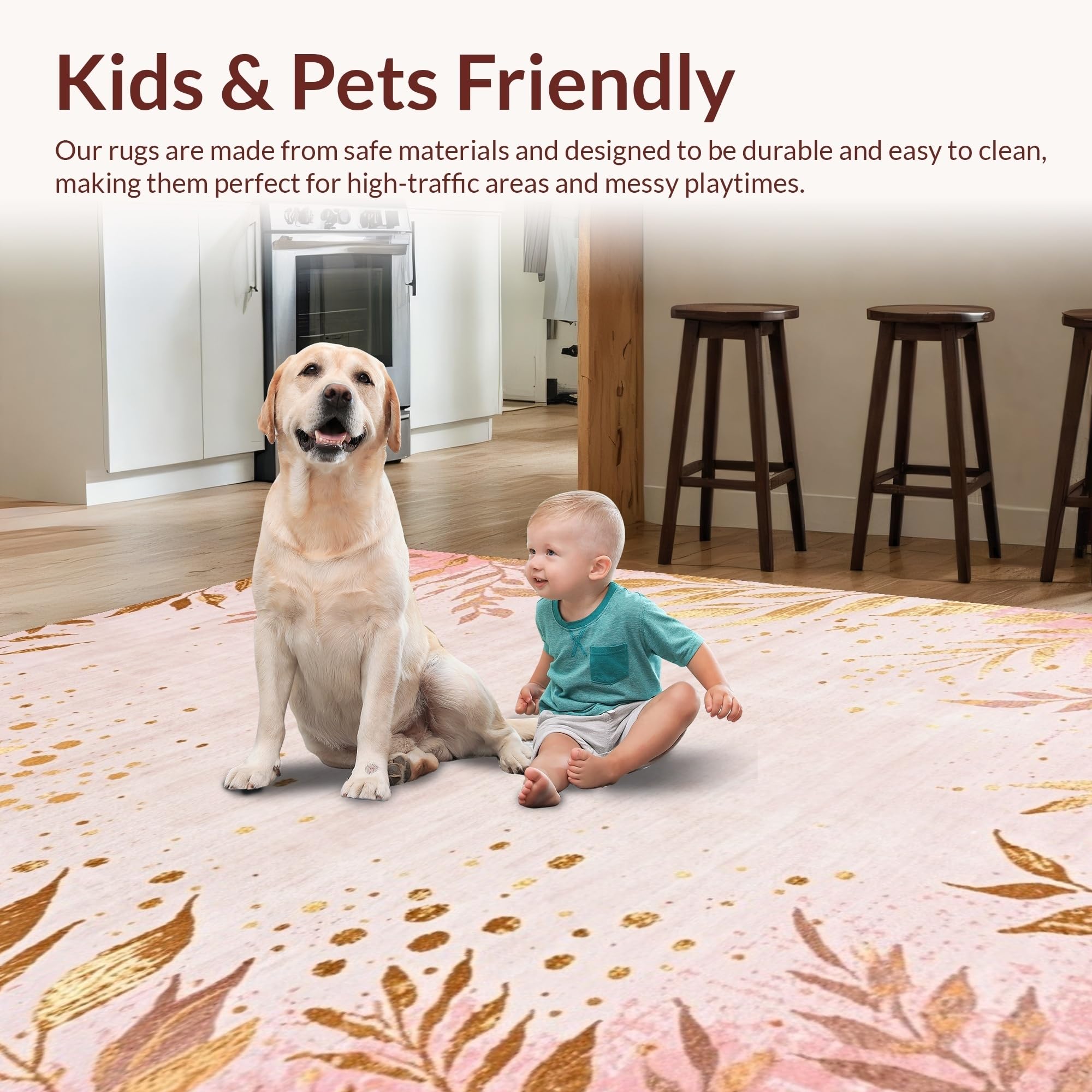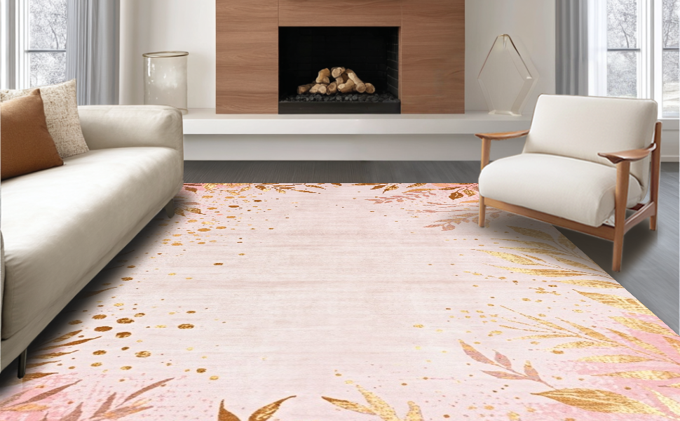Ultra Soft Area Rug, Non Slip, Stain Resistant, Washable Area Rugs for Living Room, Bedroom, Contemporary Botanical Print Flair(Pink) Overview:
