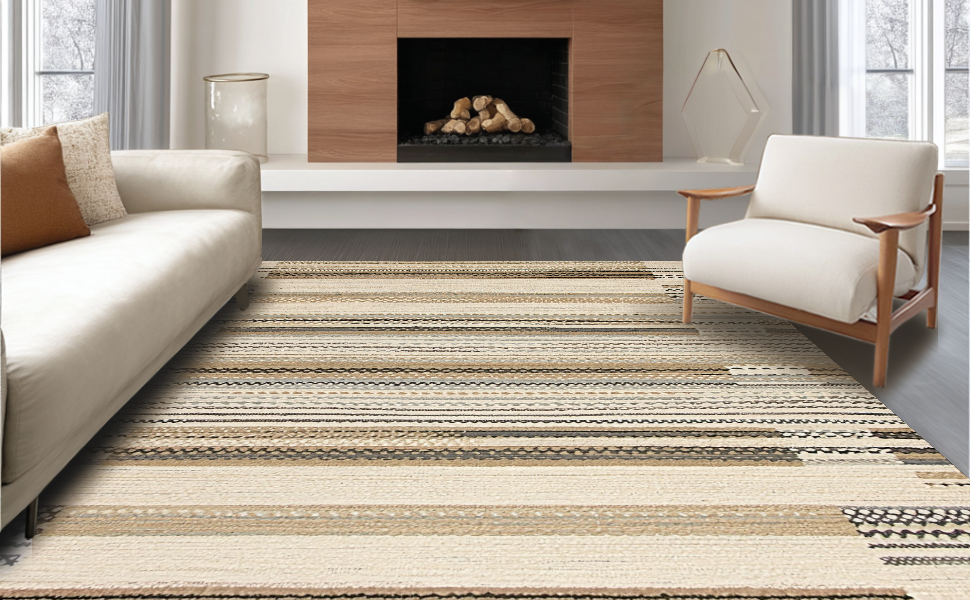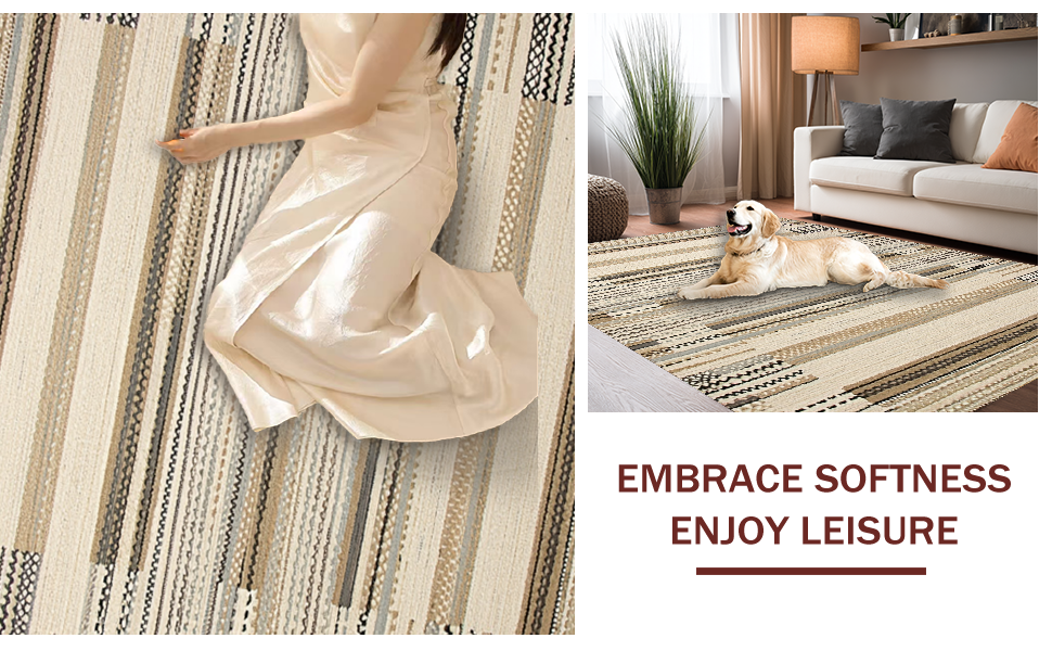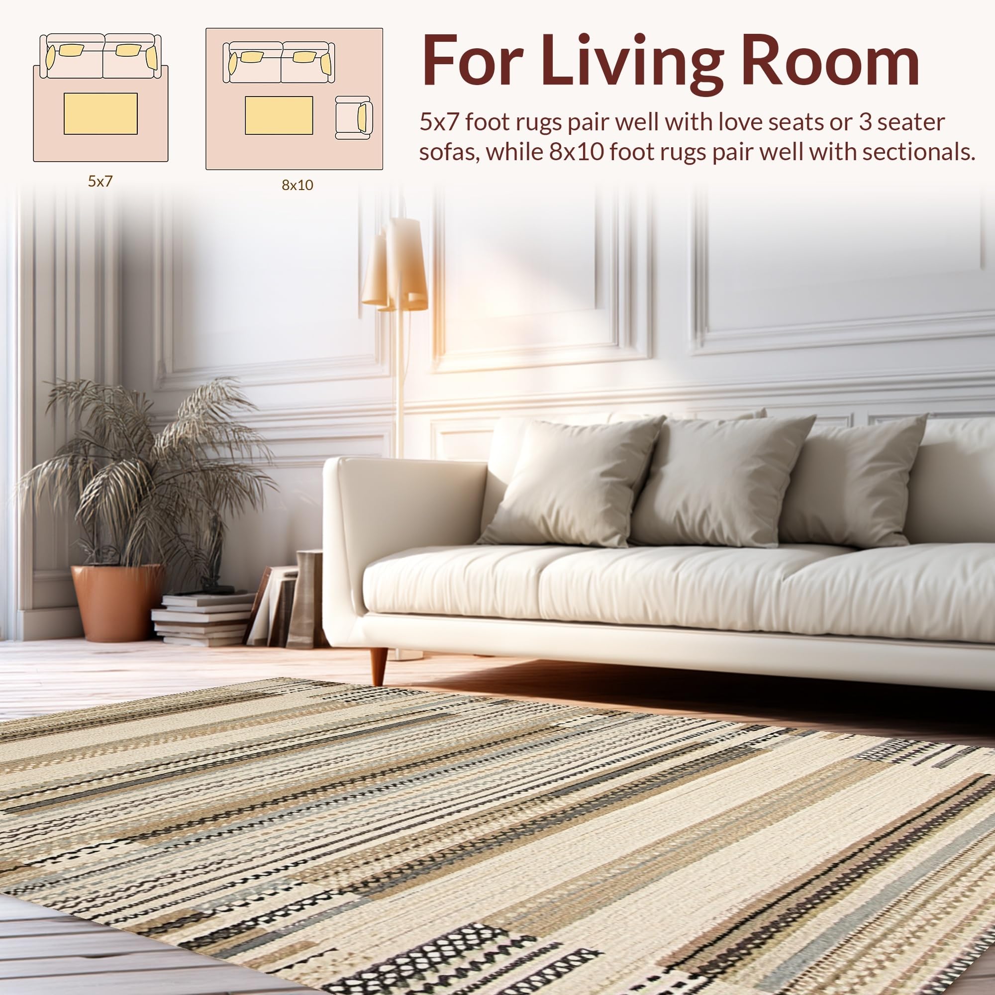 Ultra Soft Area Rug, Non Slip, Stain Resistant, Washable Area Rugs for Living Room, Bedroom, Contemporary Braided Craftsmanship Style(Beige) Overview:
