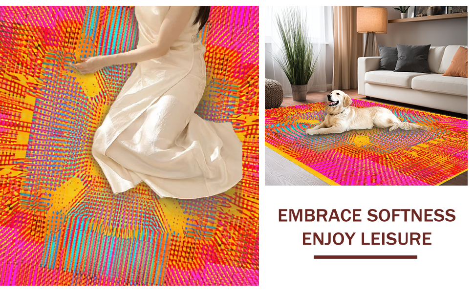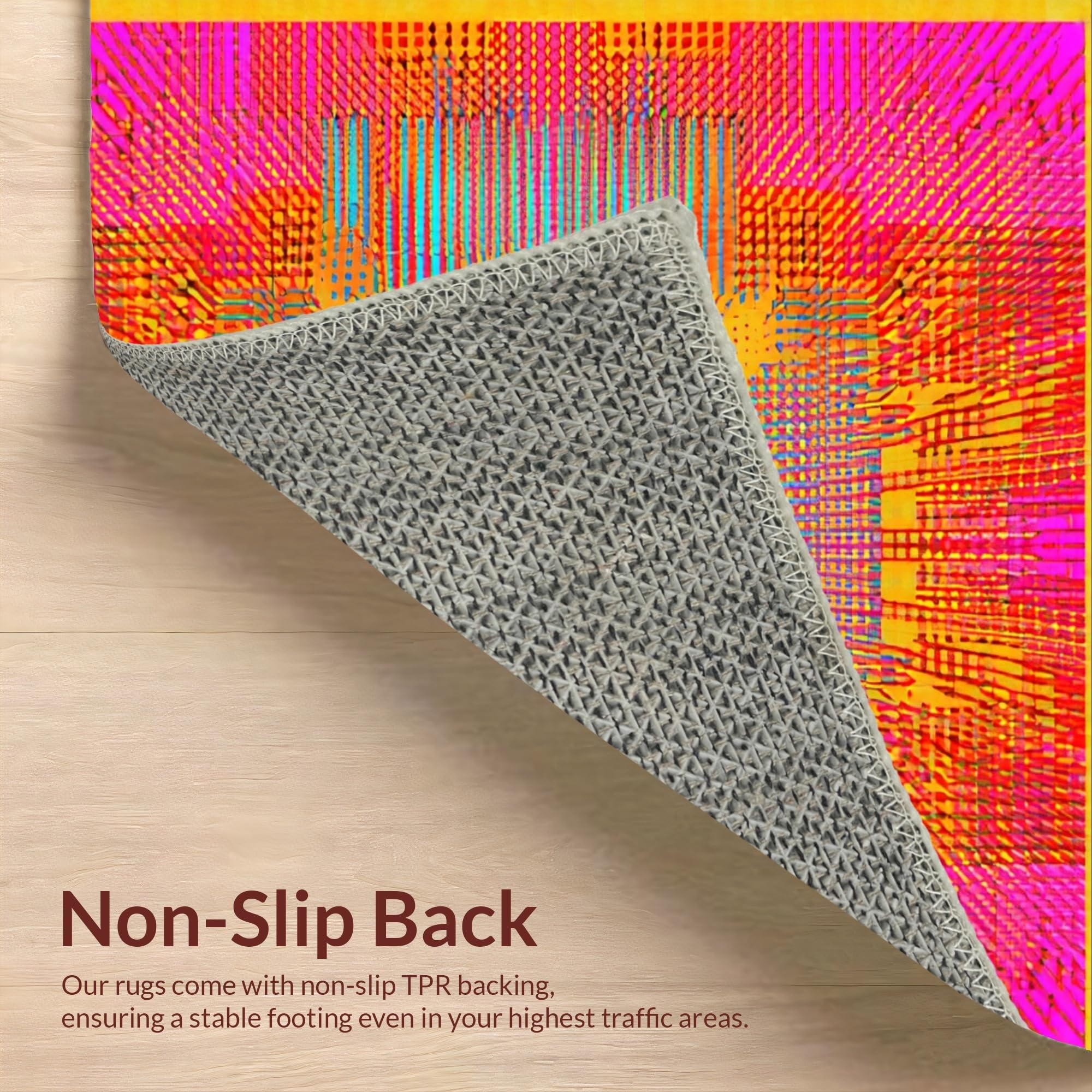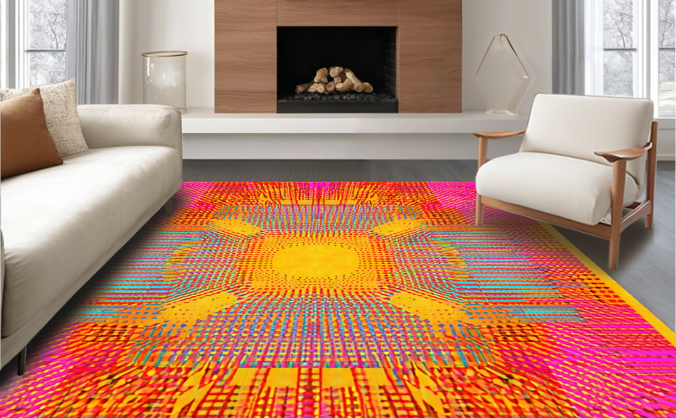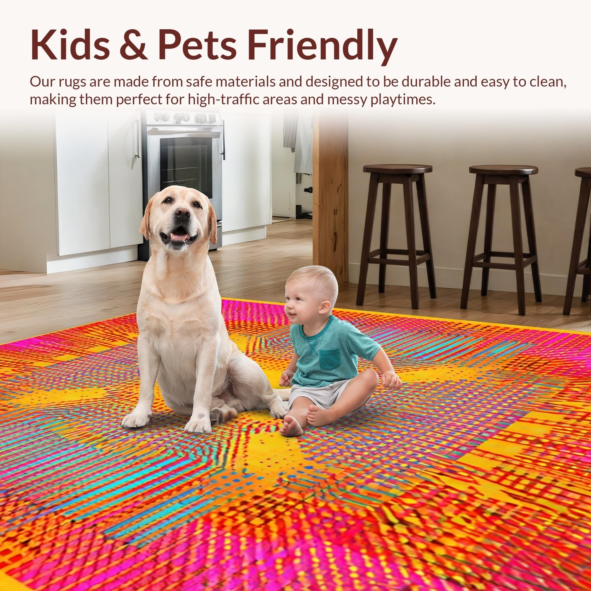 Ultra Soft Area Rug, Non Slip, Stain Resistant, Washable Area Rugs for Living Room, Bedroom, Contemporary Bright Patterned Motif(Yellow) Overview: