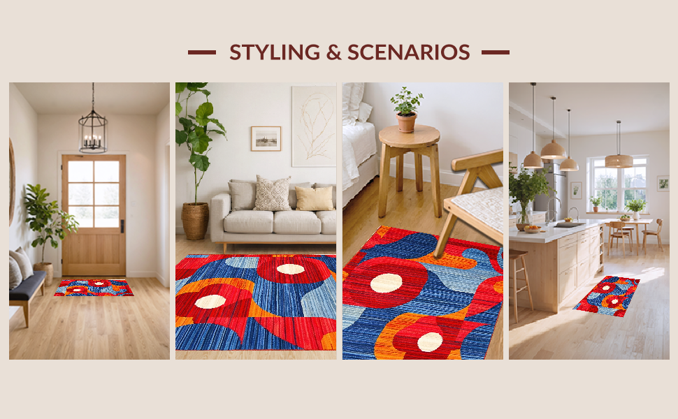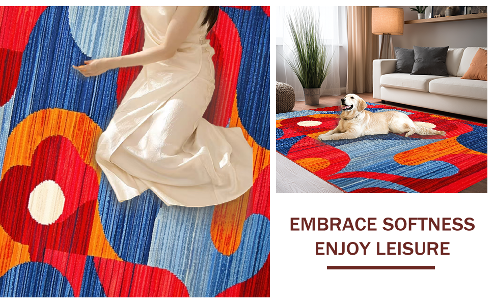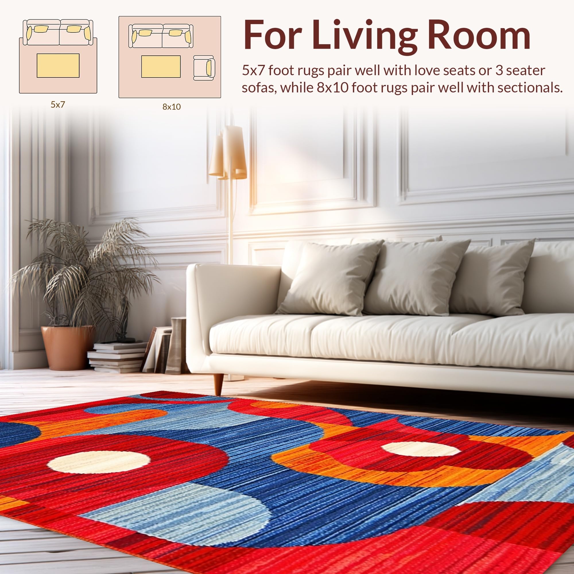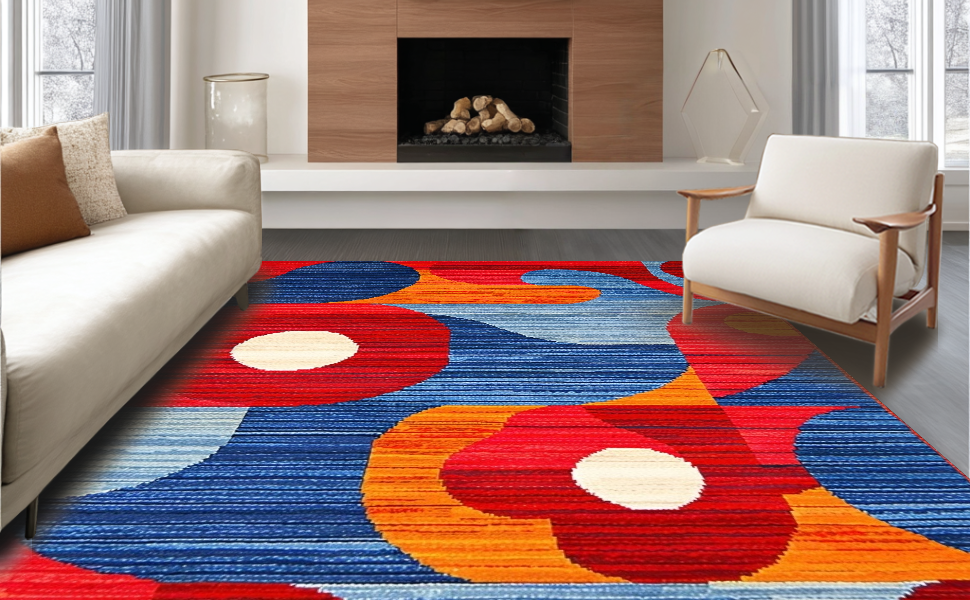 Ultra Soft Area Rug, Non Slip, Stain Resistant, Washable Area Rugs for Living Room, Bedroom, Contemporary Bright Swirl Aesthetics(Red) Overview: