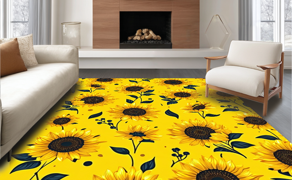 Ultra Soft Area Rug, Non Slip, Stain Resistant, Washable Area Rugs for Living Room, Bedroom, Contemporary Butterfly and Floral Fusion(Yellow) Overview: