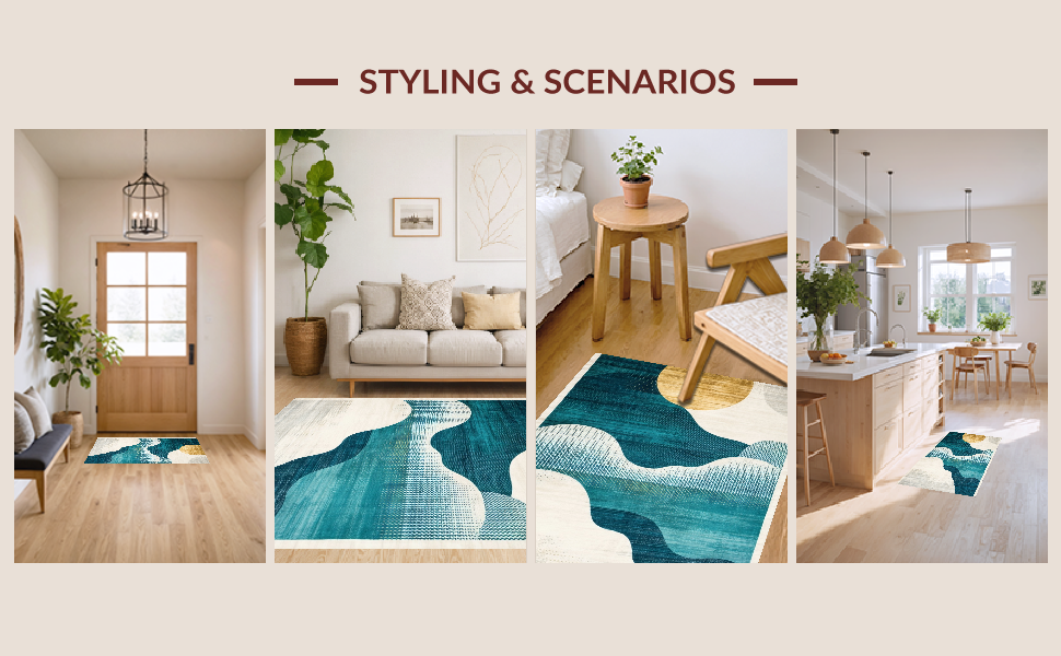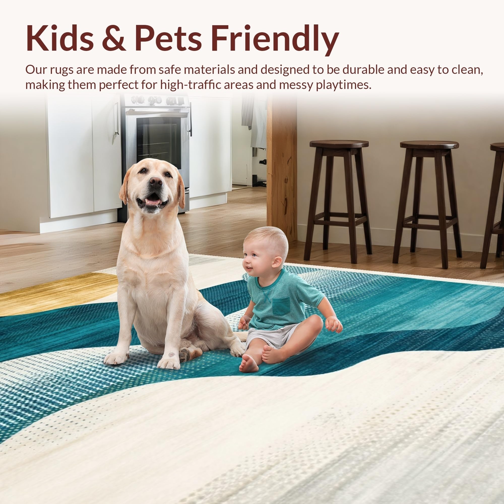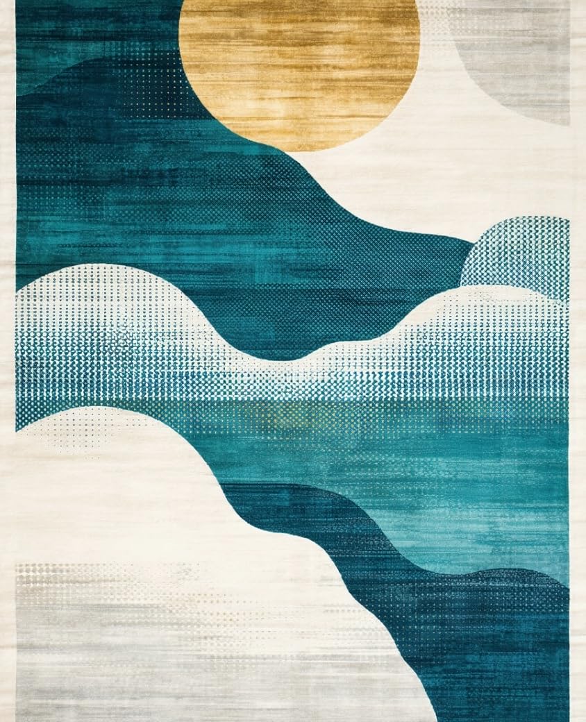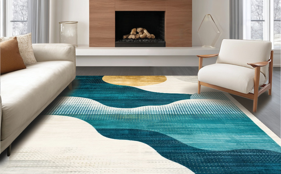 Ultra Soft Area Rug, Non Slip, Stain Resistant, Washable Area Rugs for Living Room, Bedroom, Contemporary Calm Tiled Design(Blue) Overview: