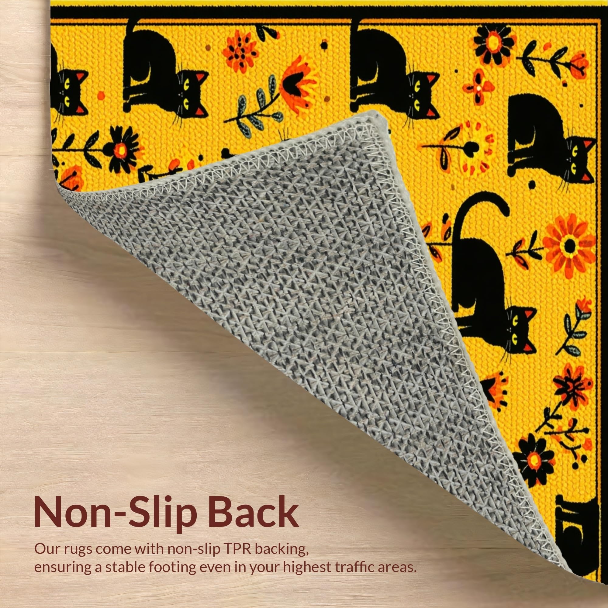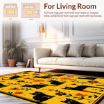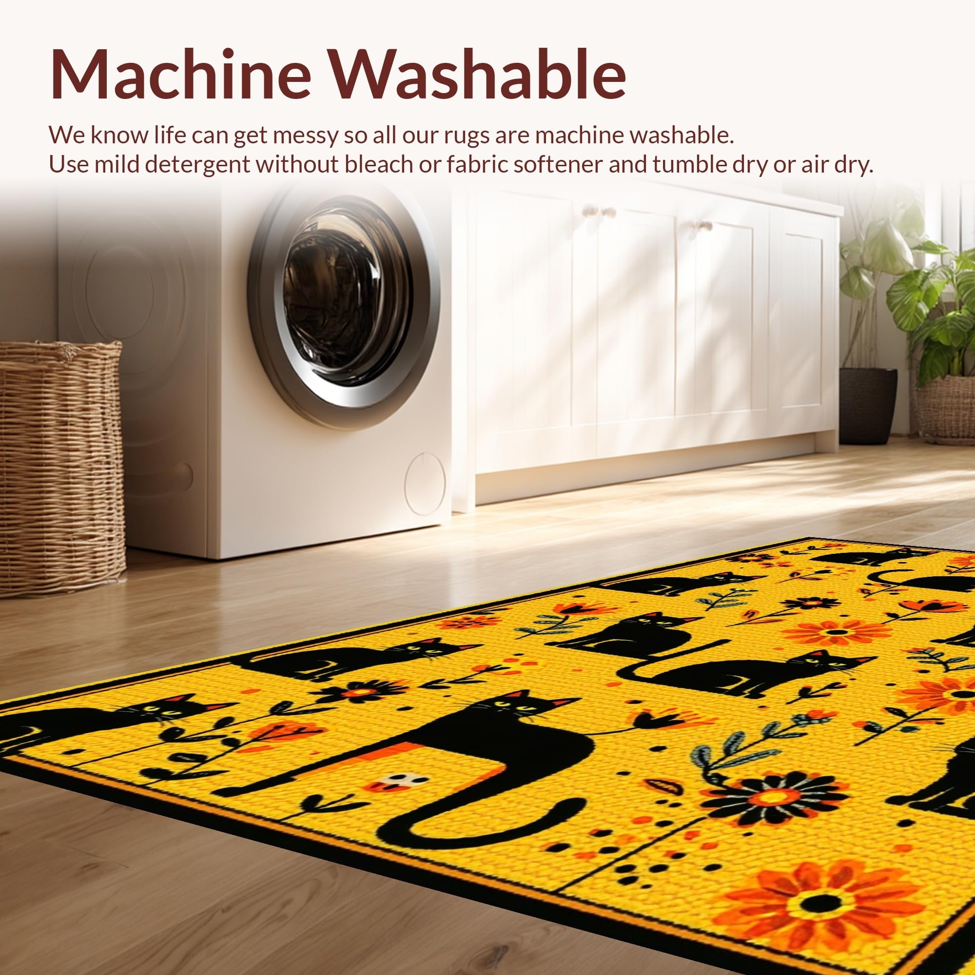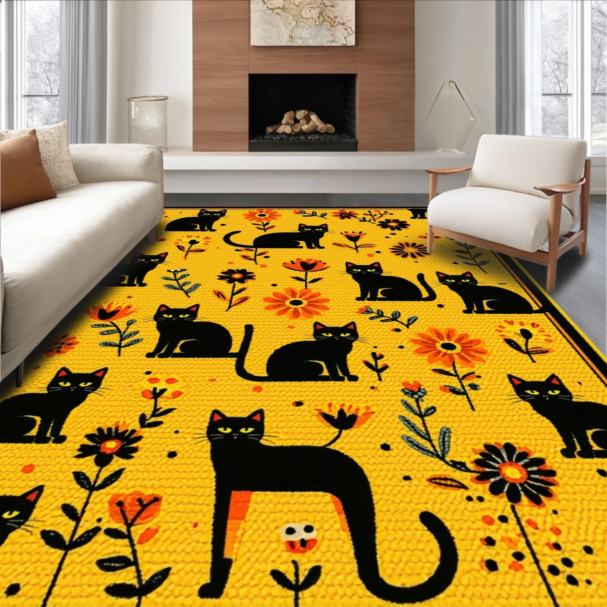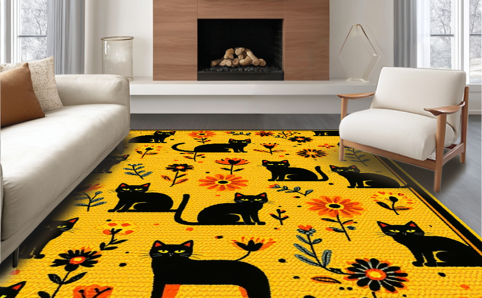 Ultra Soft Area Rug, Non Slip, Stain Resistant, Washable Area Rugs for Living Room, Bedroom, Contemporary Cat Flower Arrangement(Yellow) Overview: