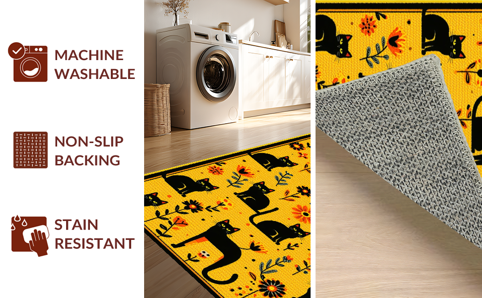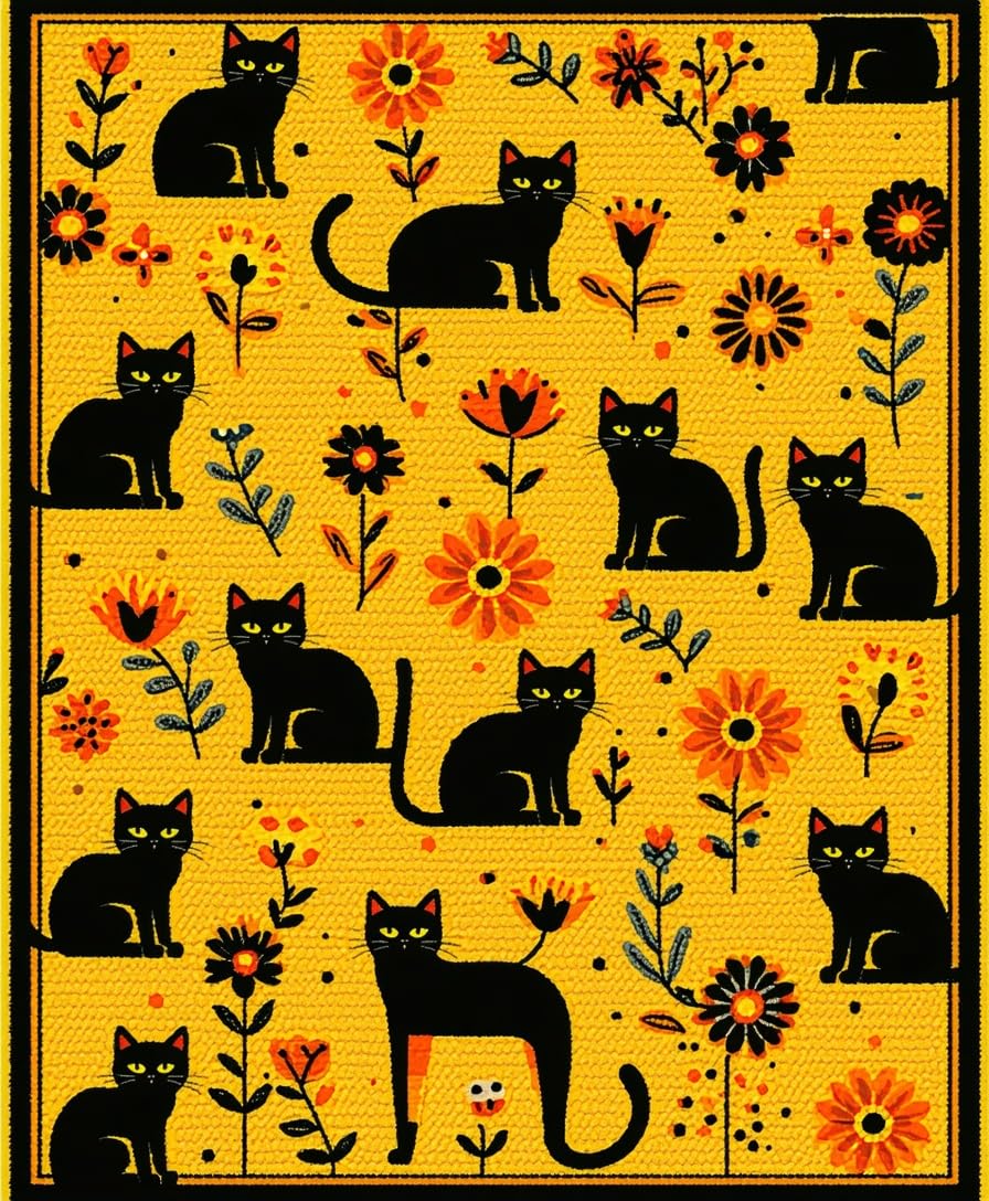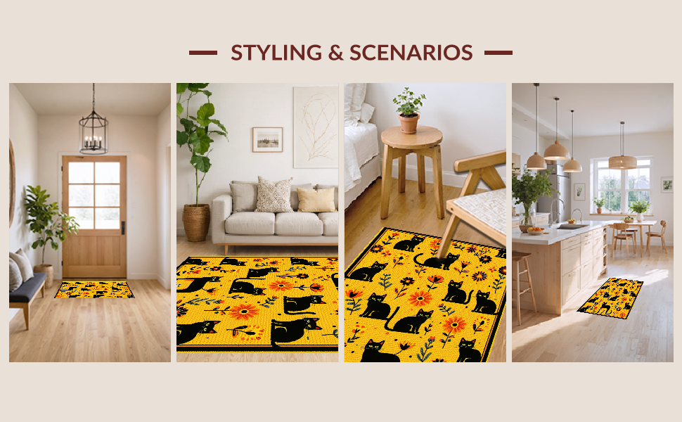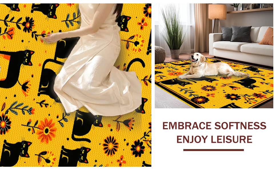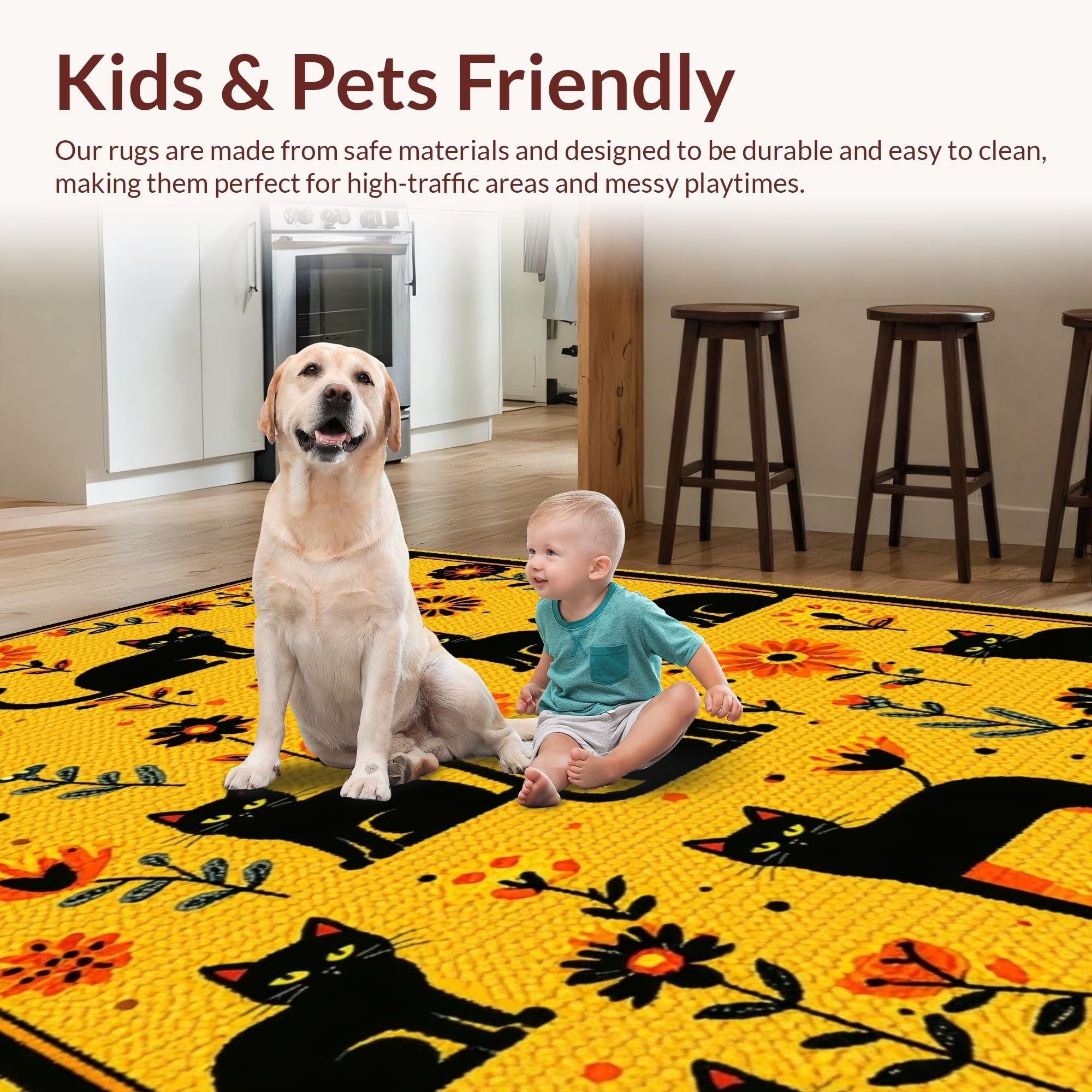 Ultra Soft Area Rug, Non Slip, Stain Resistant, Washable Area Rugs for Living Room, Bedroom, Contemporary Cat Flower Arrangement(Yellow) Overview: