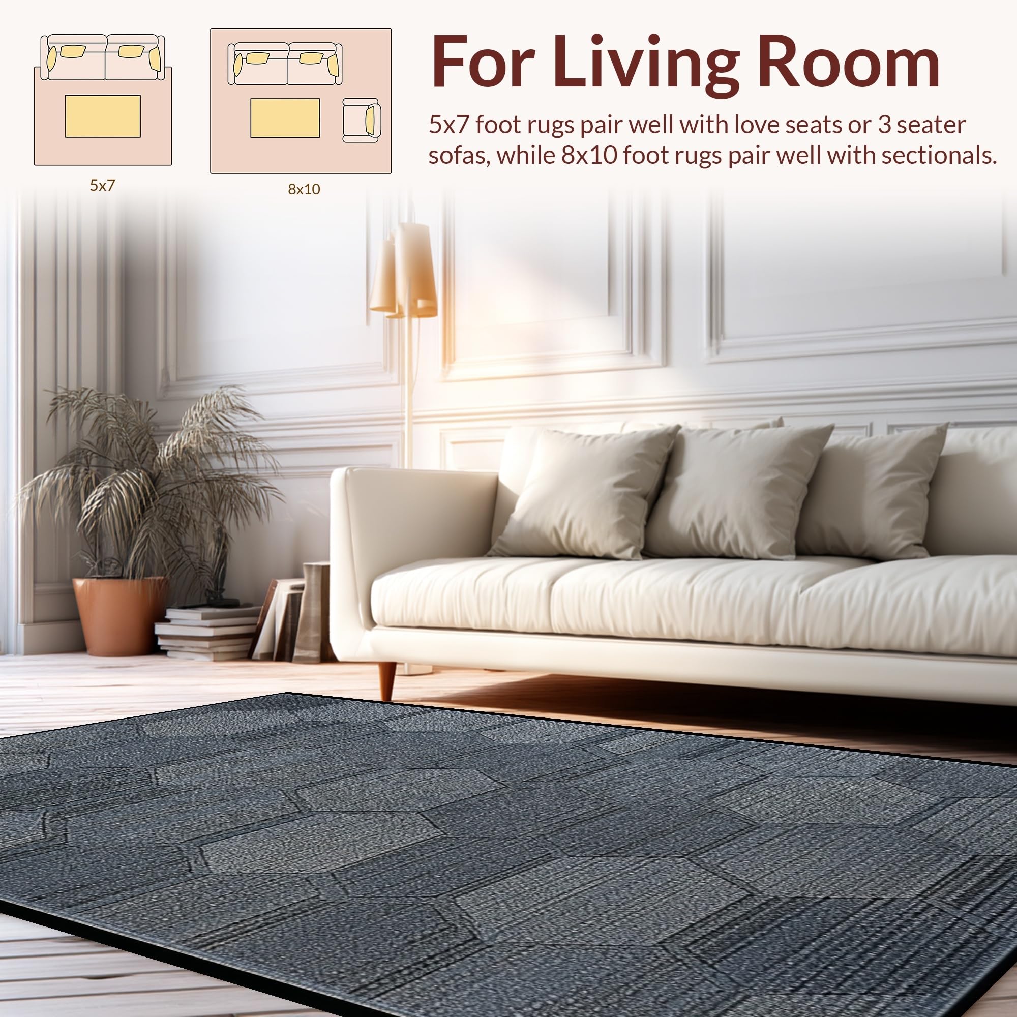 Ultra Soft Area Rug, Non Slip, Stain Resistant, Washable Area Rugs for Living Room, Bedroom, Contemporary Charcoal Geometric Texture(Gray) Overview: