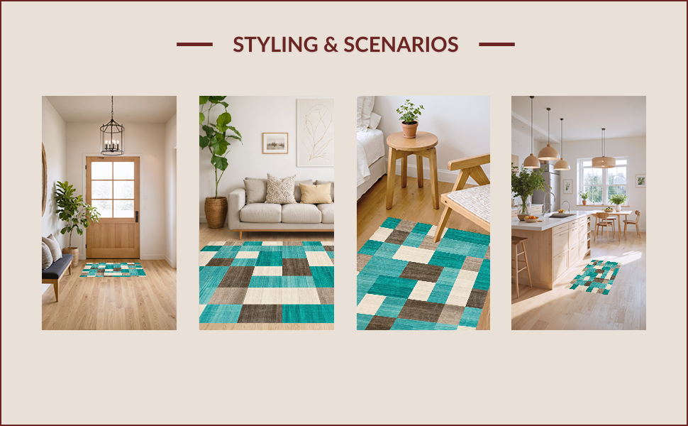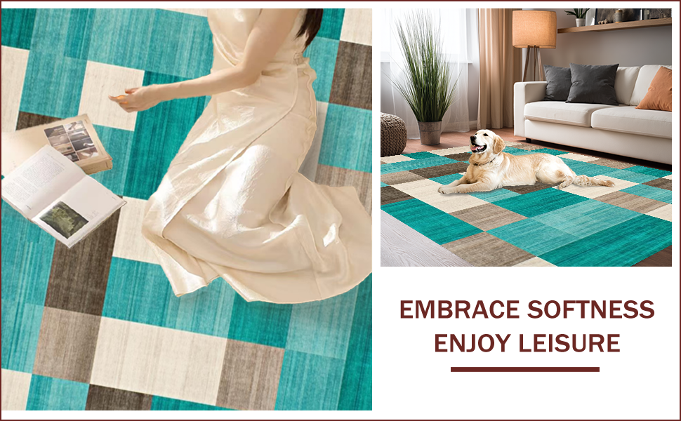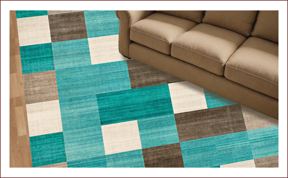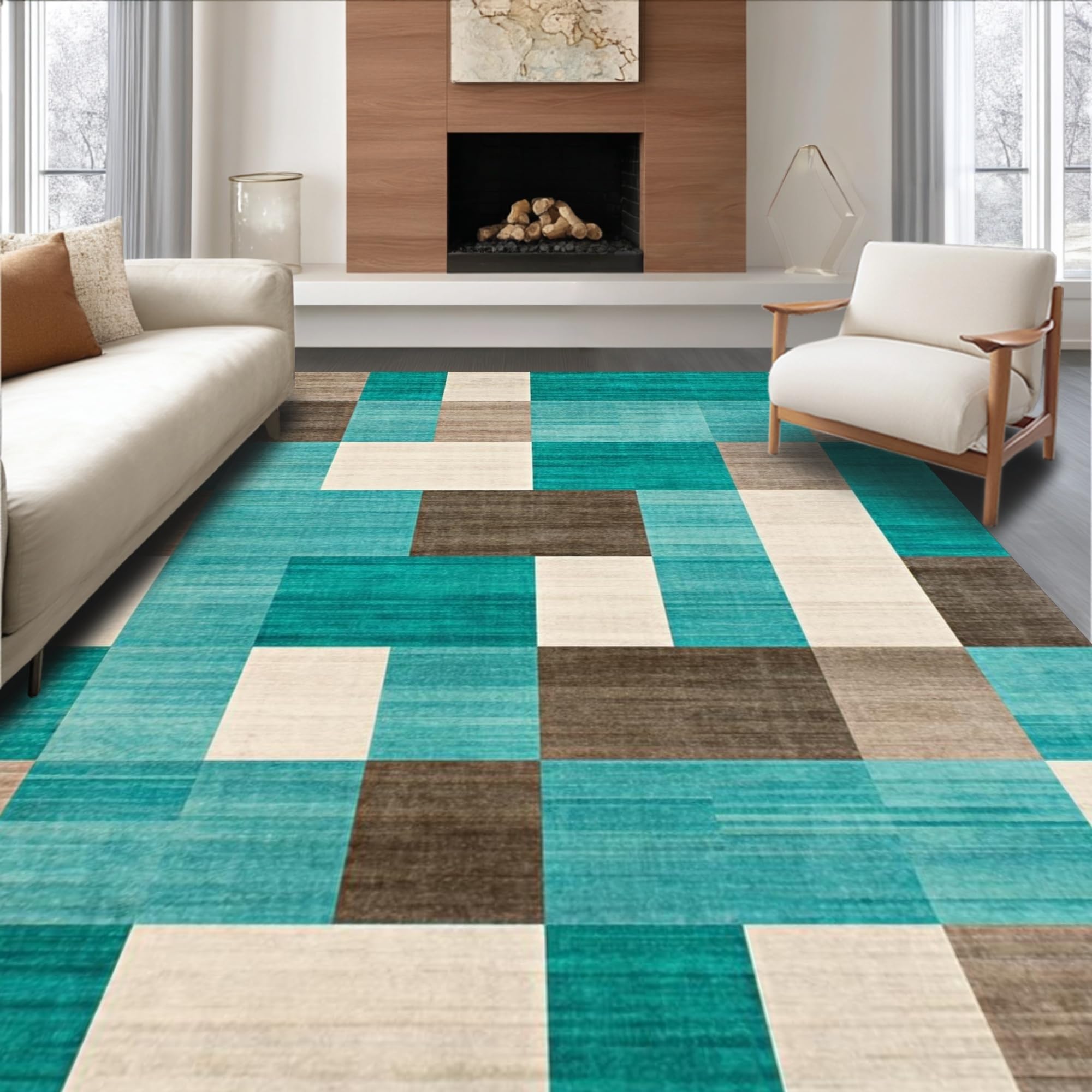 Ultra Soft Area Rug, Non Slip, Stain Resistant, Washable Area Rugs for Living Room, Bedroom, Contemporary Checked Earthy Tones(Green) Overview: