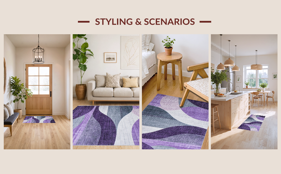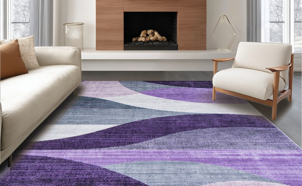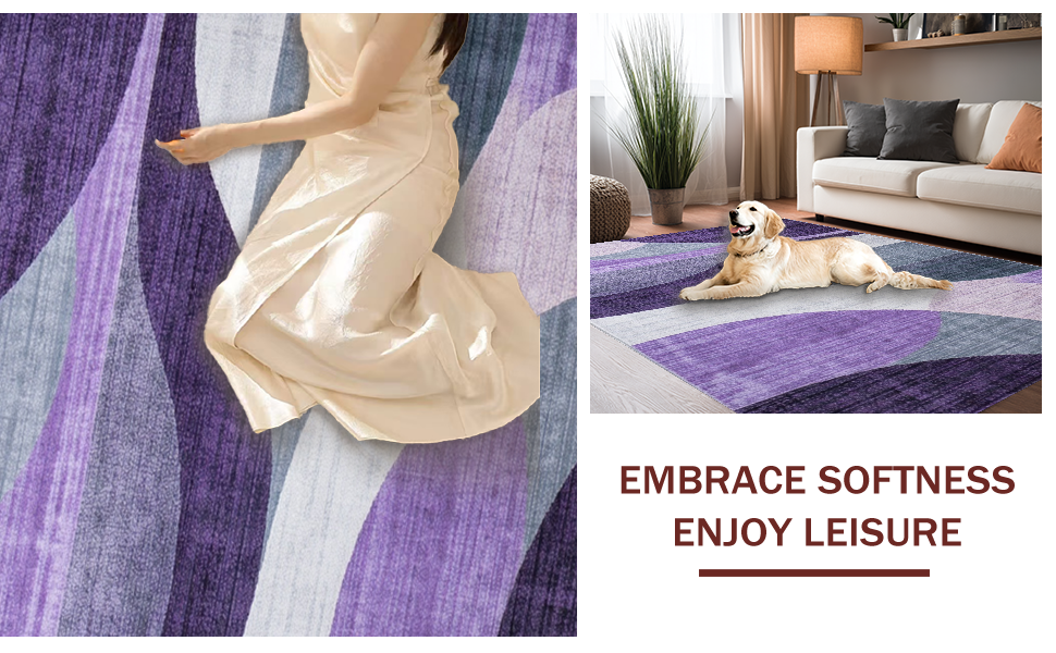 Ultra Soft Area Rug, Non Slip, Stain Resistant, Washable Area Rugs for Living Room, Bedroom, Contemporary Chenille Texture(Purple) Overview: