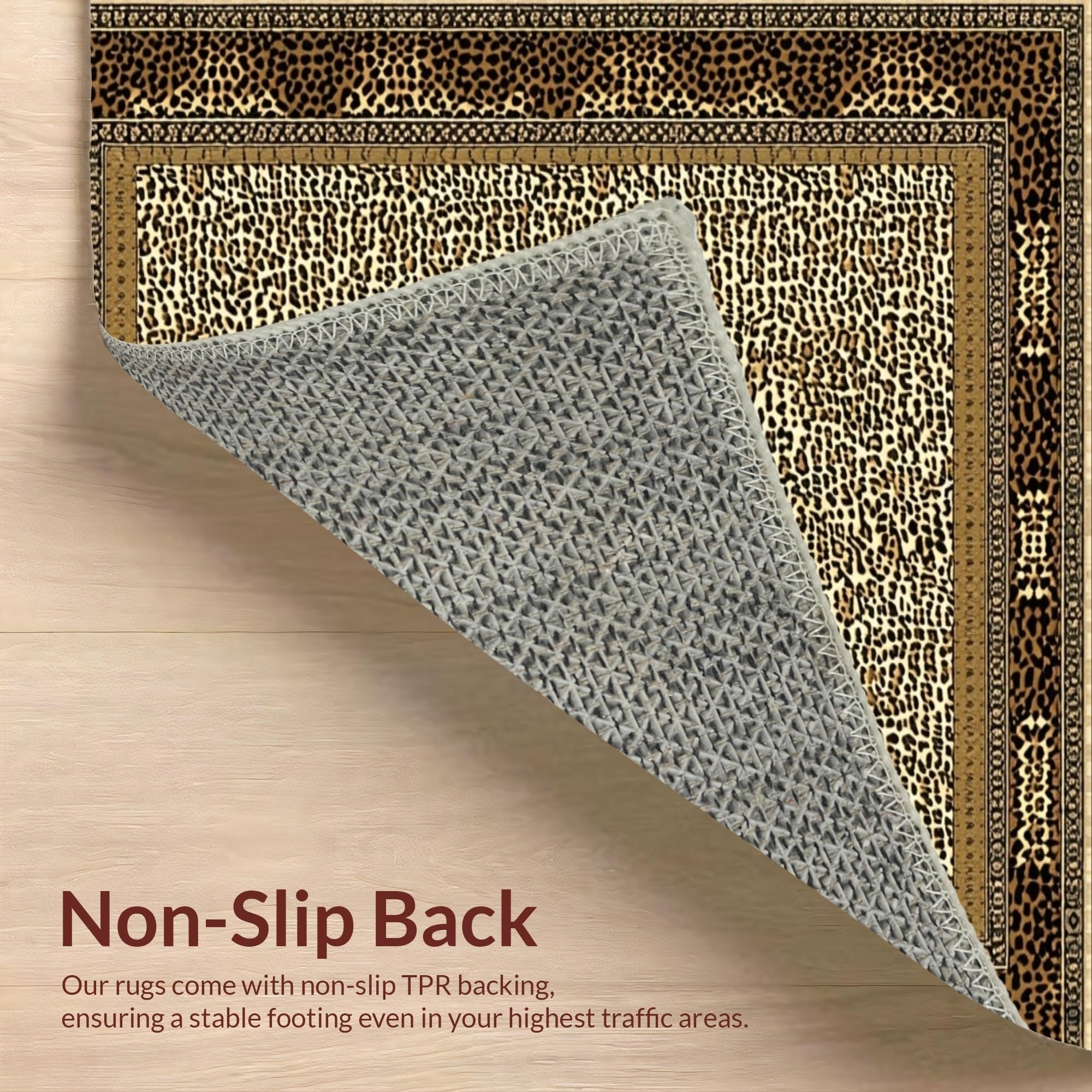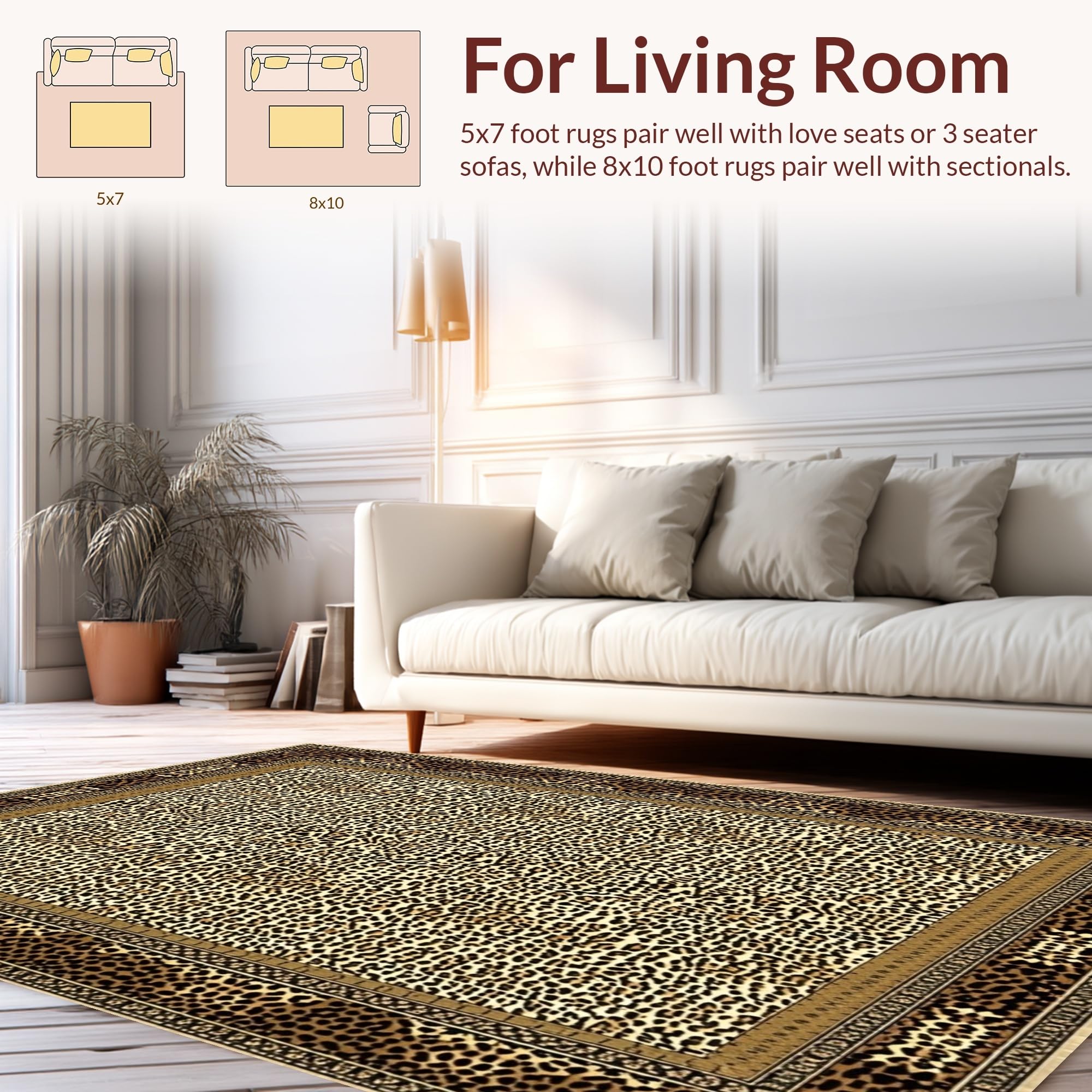 Ultra Soft Area Rug, Non Slip, Stain Resistant, Washable Area Rugs for Living Room, Bedroom, Contemporary Chic Leopard Motif(Beige) Overview: