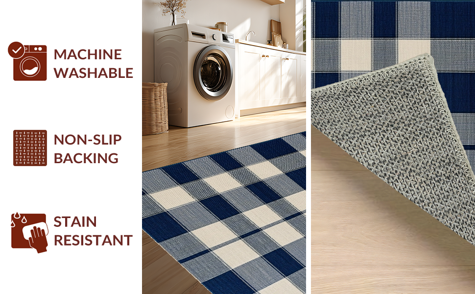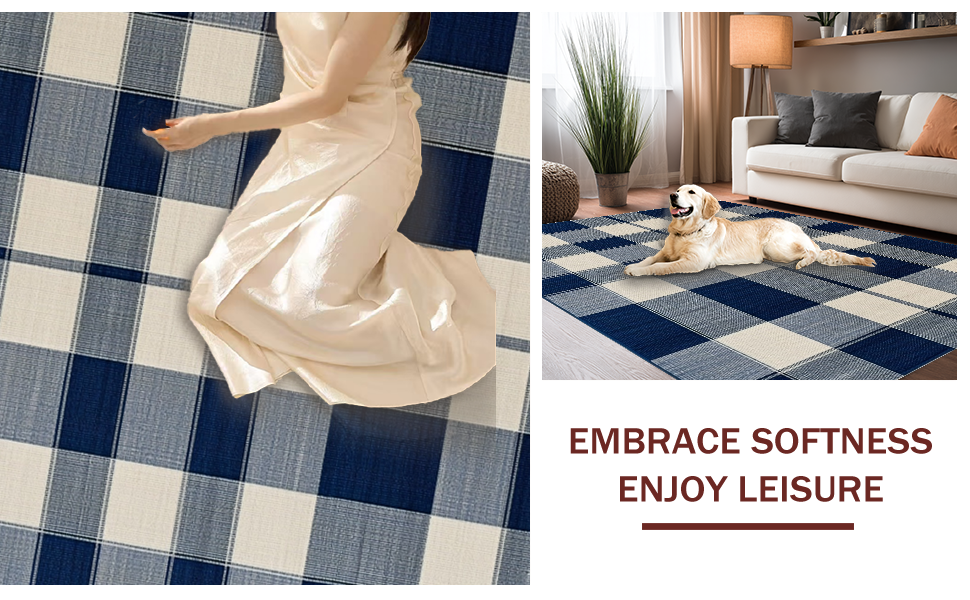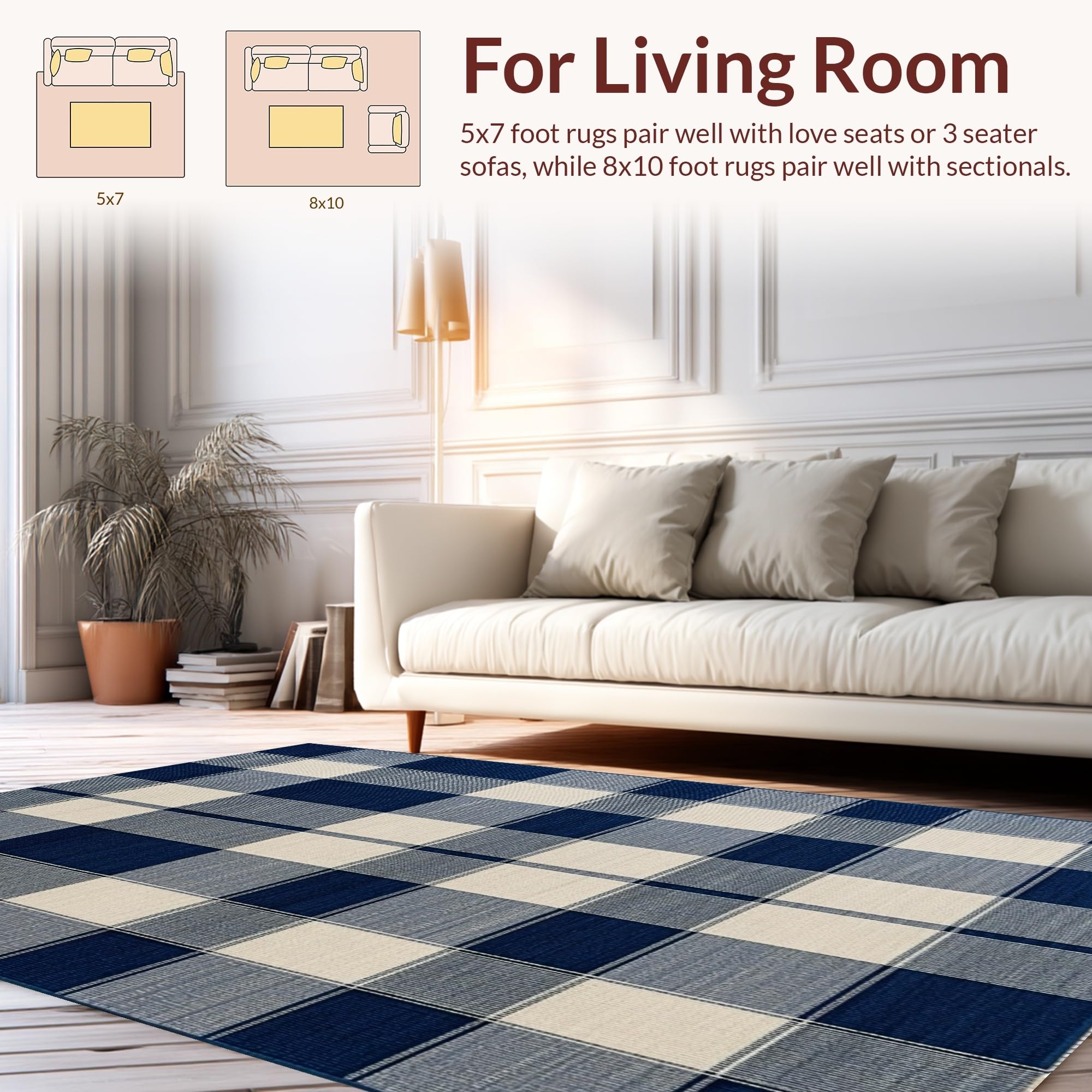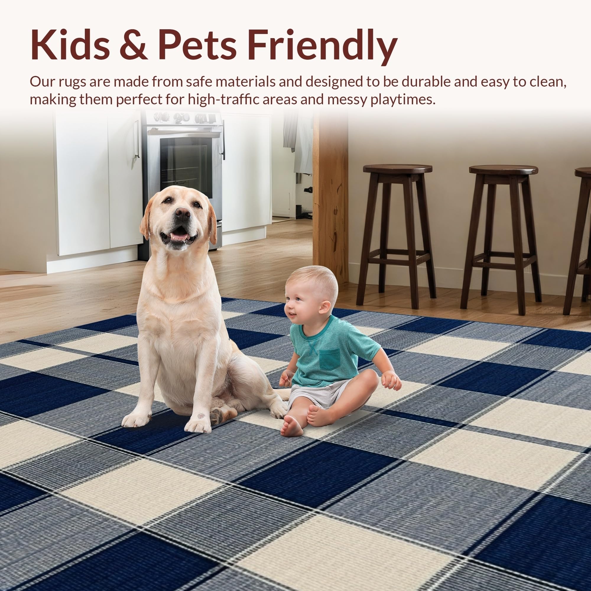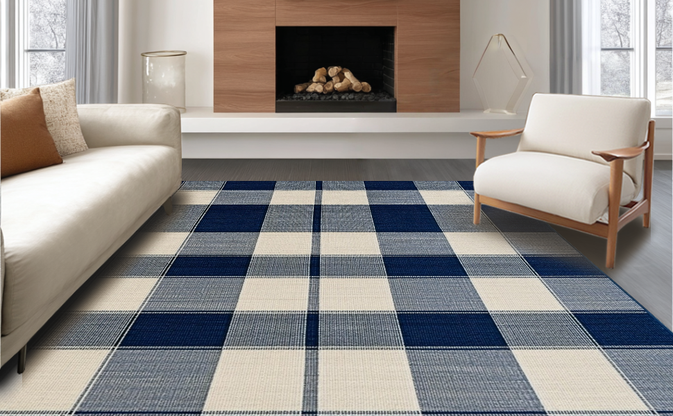 Ultra Soft Area Rug, Non Slip, Stain Resistant, Washable Area Rugs for Living Room, Bedroom, Contemporary Chic Plaid Aesthetic(Blue) Overview: