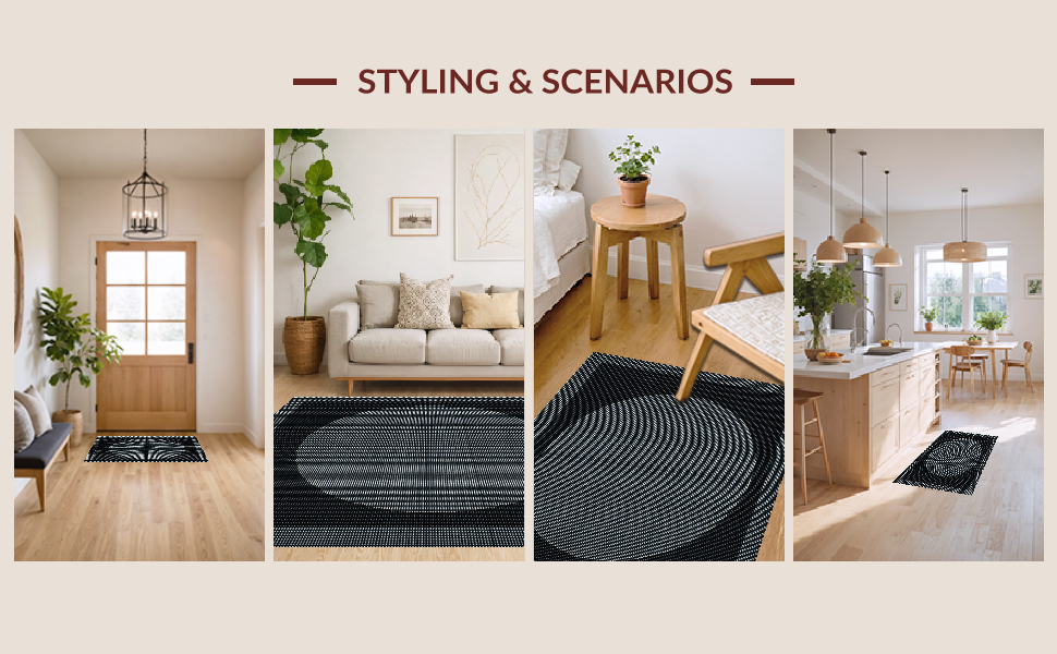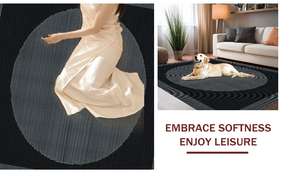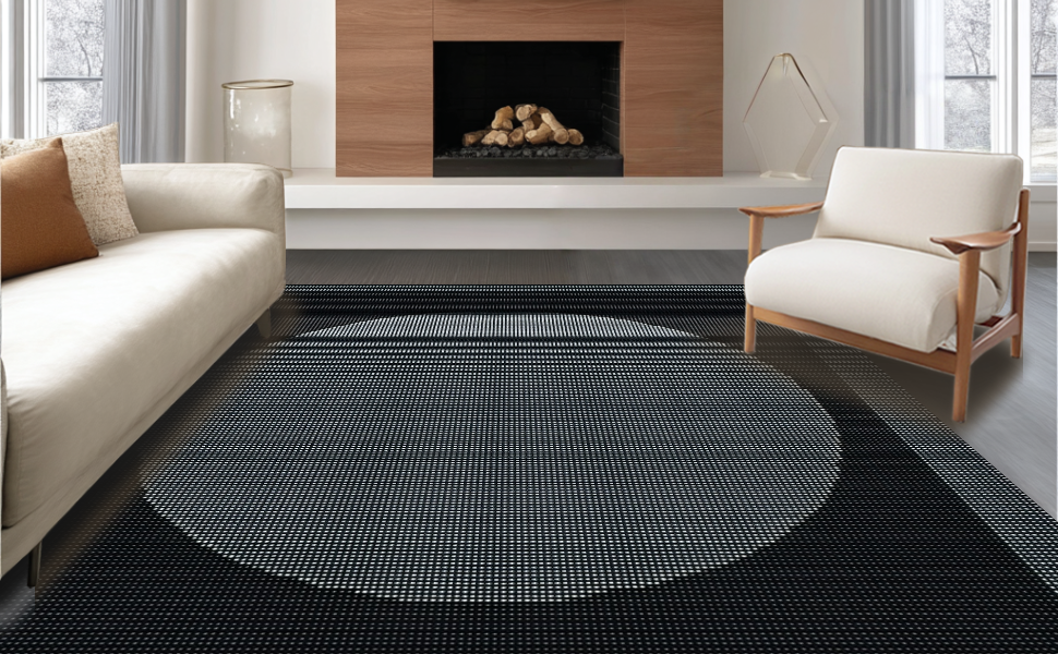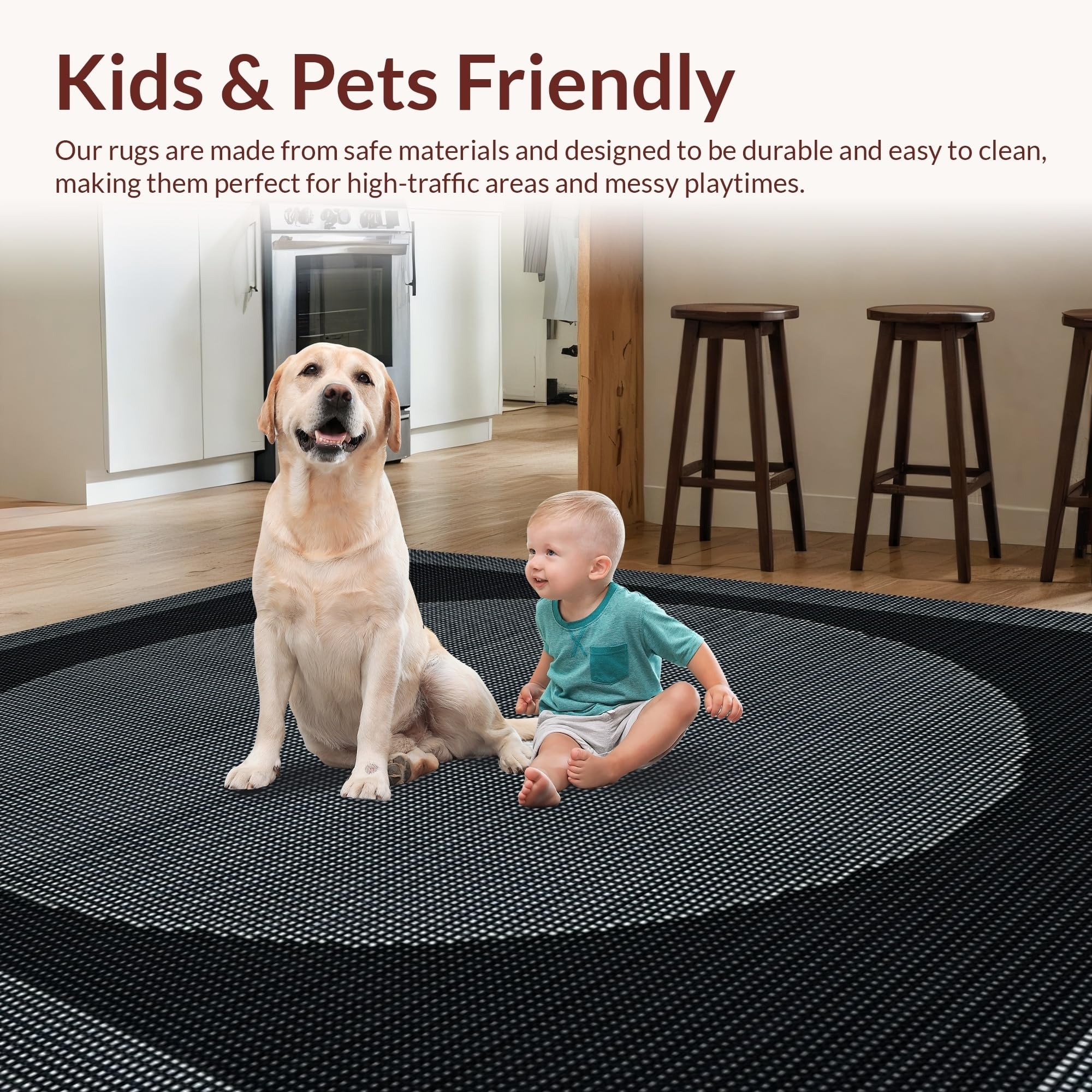 Ultra Soft Area Rug, Non Slip, Stain Resistant, Washable Area Rugs for Living Room, Bedroom, Contemporary Circular Elegant Design(Black) Overview: