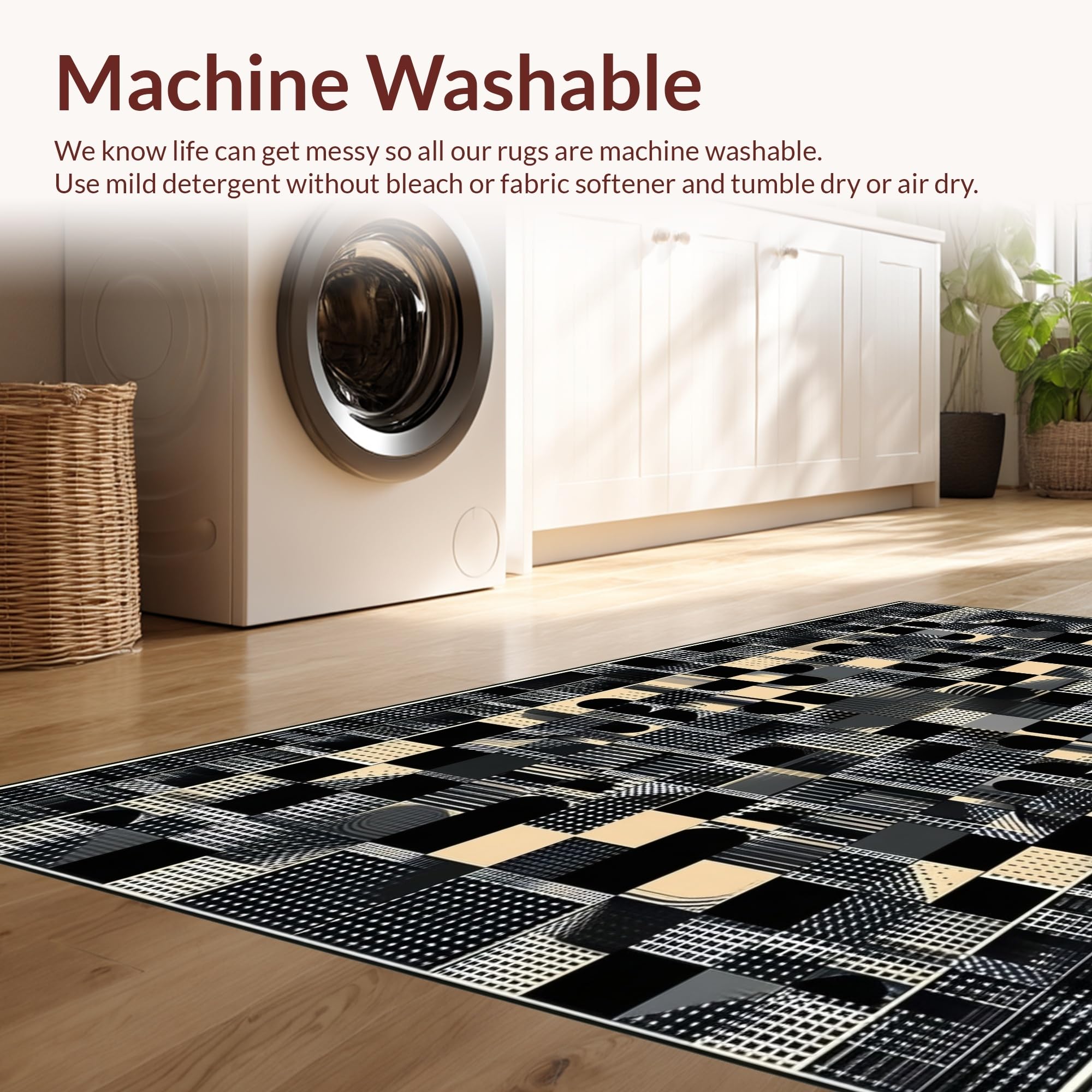 - Machine Washable: Our rugs can be easily thrown in the wash machine.