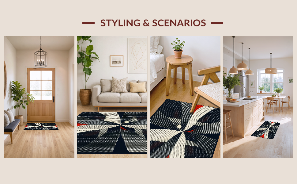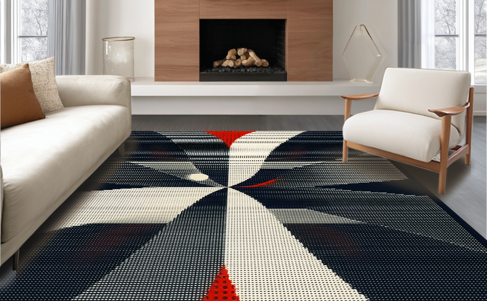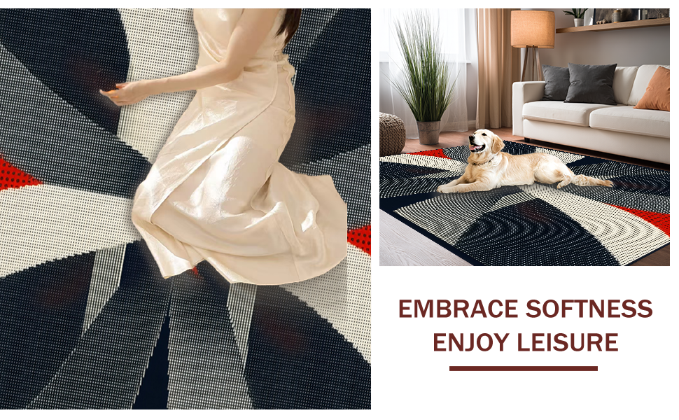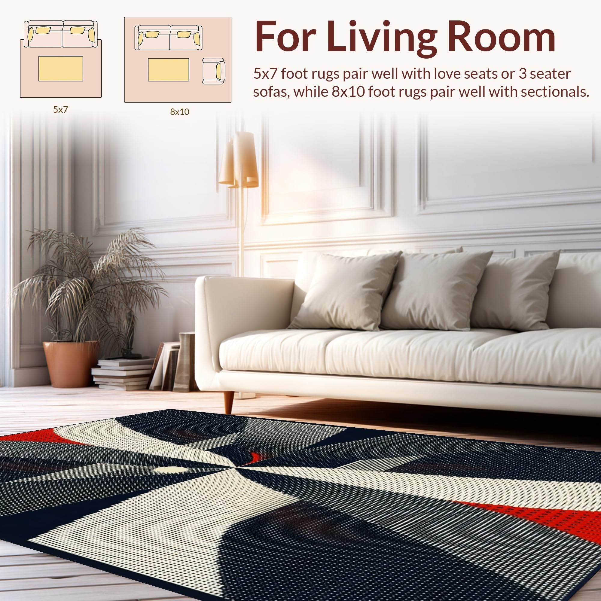 Ultra Soft Area Rug, Non Slip, Stain Resistant, Washable Area Rugs for Living Room, Bedroom, Contemporary Circular Optical Effect(Black) Overview: