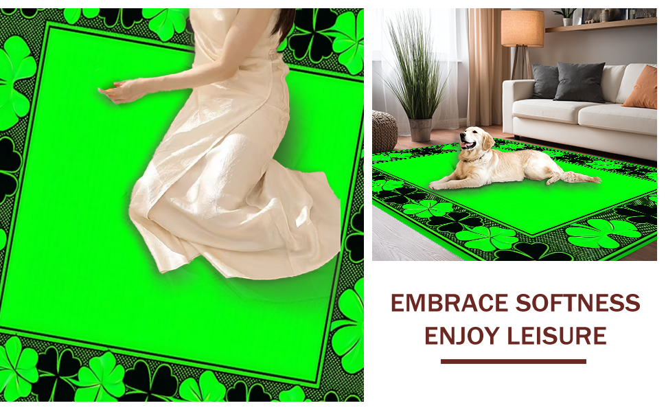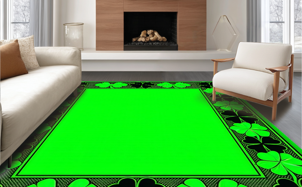 Ultra Soft Area Rug, Non Slip, Stain Resistant, Washable Area Rugs for Living Room, Bedroom, Contemporary Clover Artistry(Green) Overview: