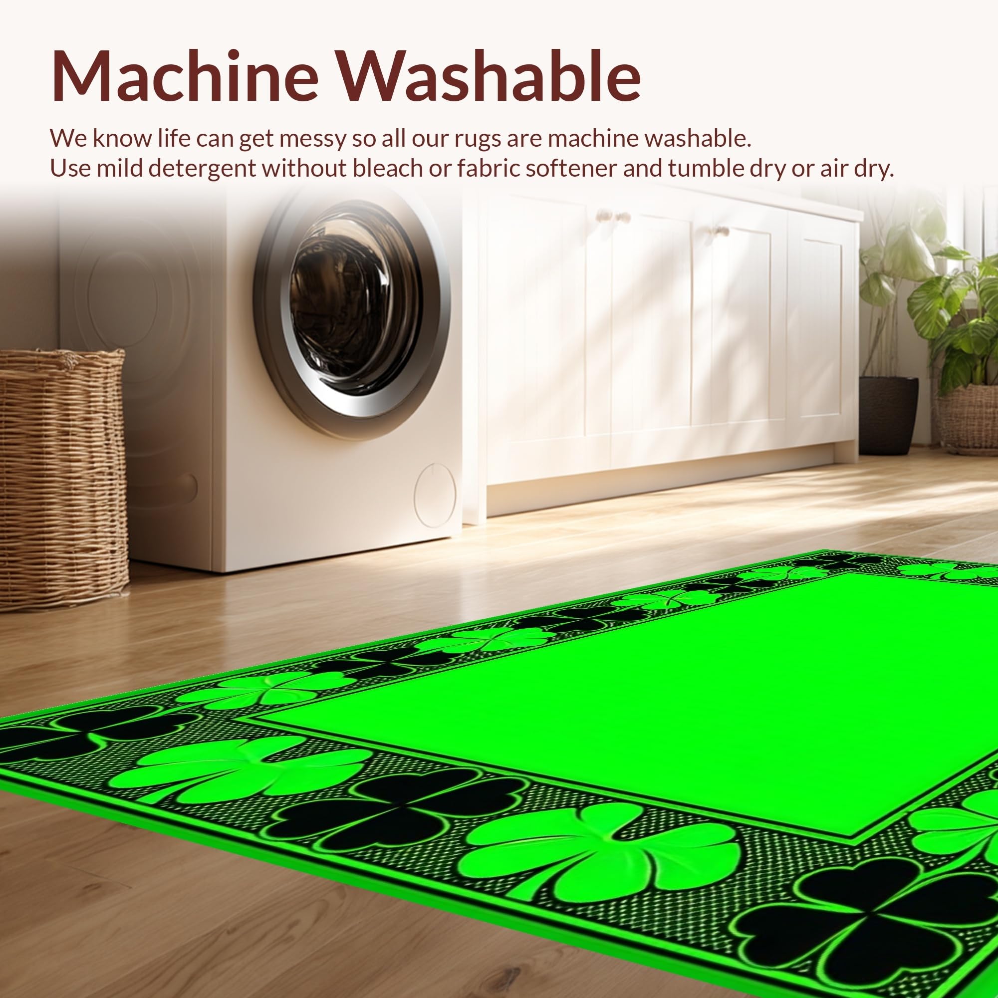 - Machine Washable: Our rugs can be easily thrown in the wash machine.