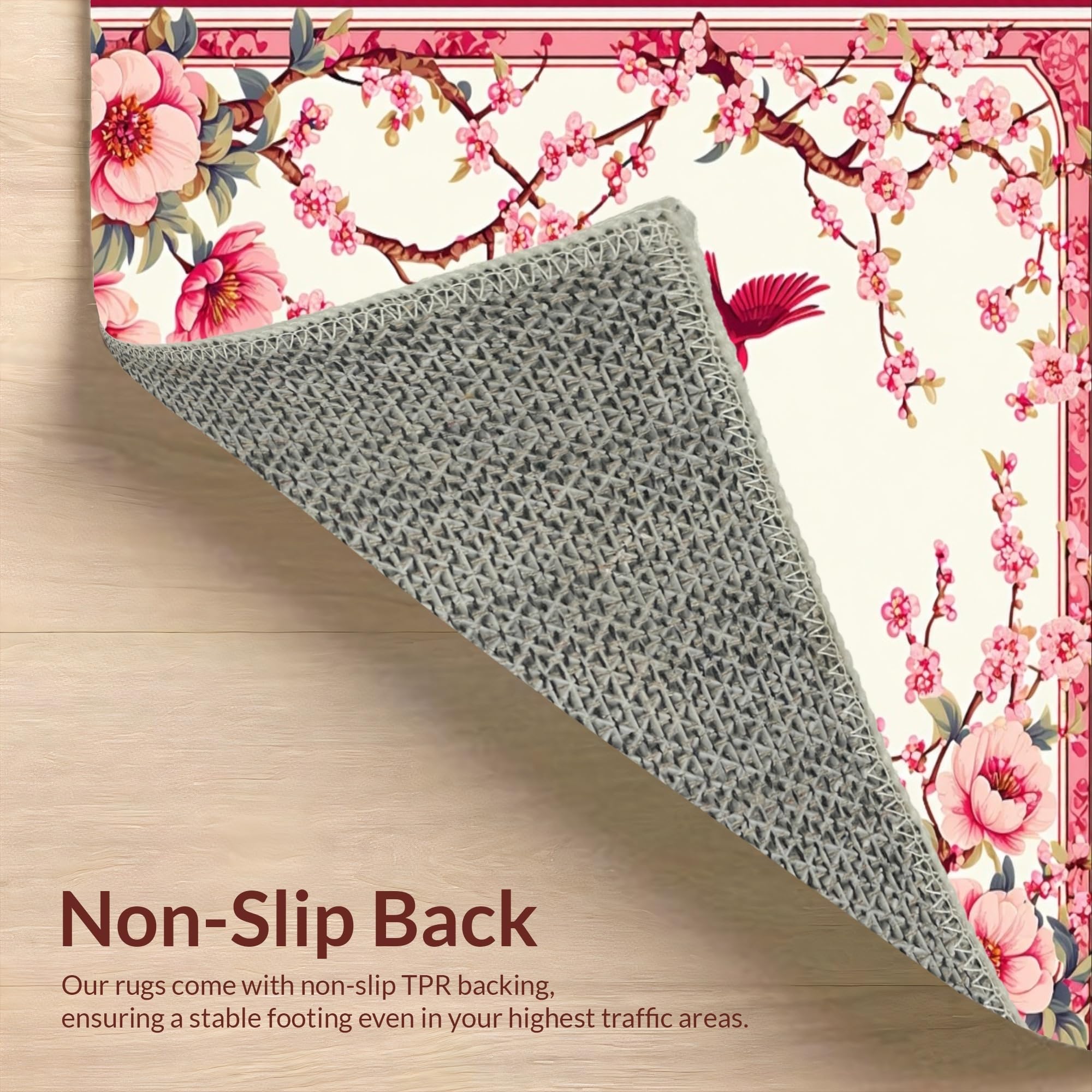 Ultra Soft Area Rug, Non Slip, Stain Resistant, Washable Area Rugs for Living Room, Bedroom, Contemporary Colorful Flower Arrangement(Pink) Overview: