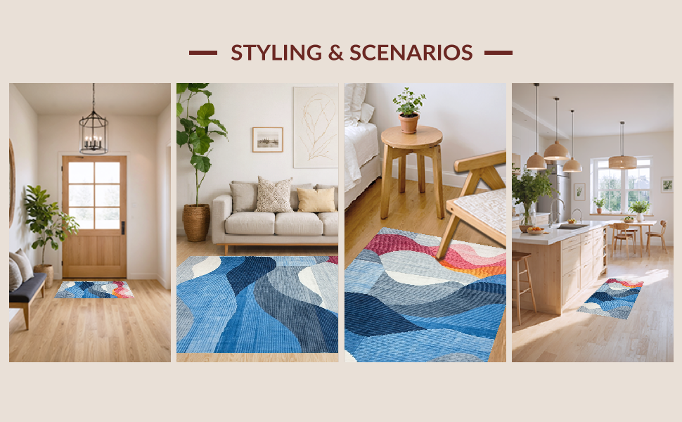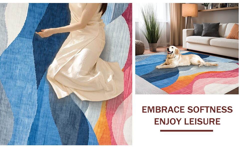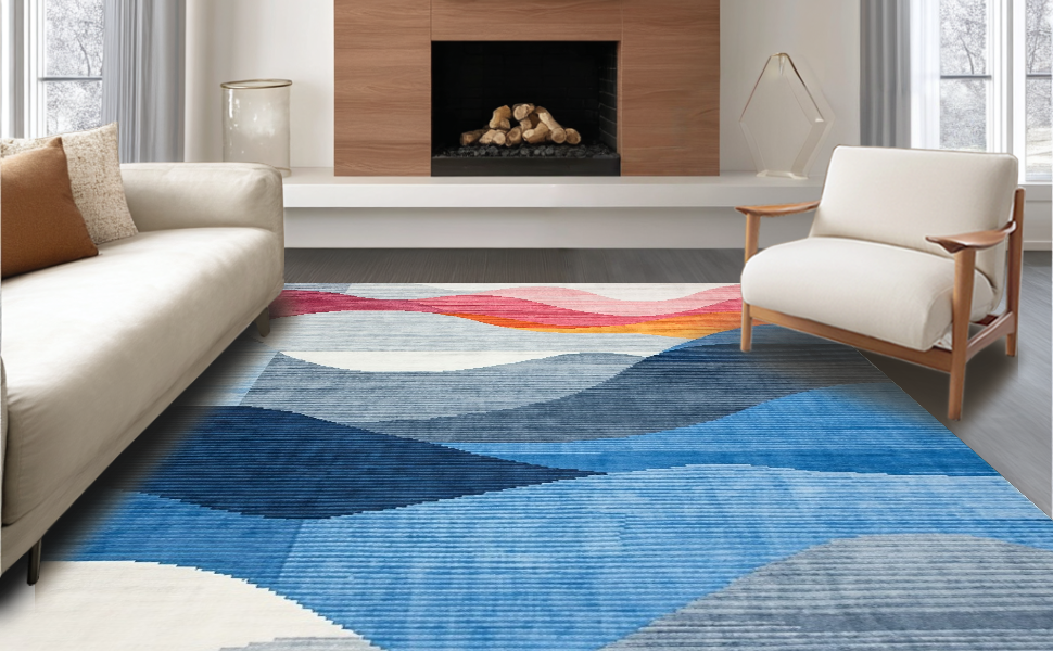 Ultra Soft Area Rug, Non Slip, Stain Resistant, Washable Area Rugs for Living Room, Bedroom, Contemporary Colorful Swirl Aesthetic(Blue) Overview: