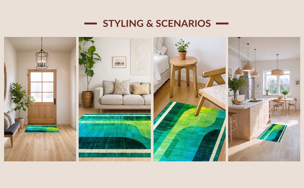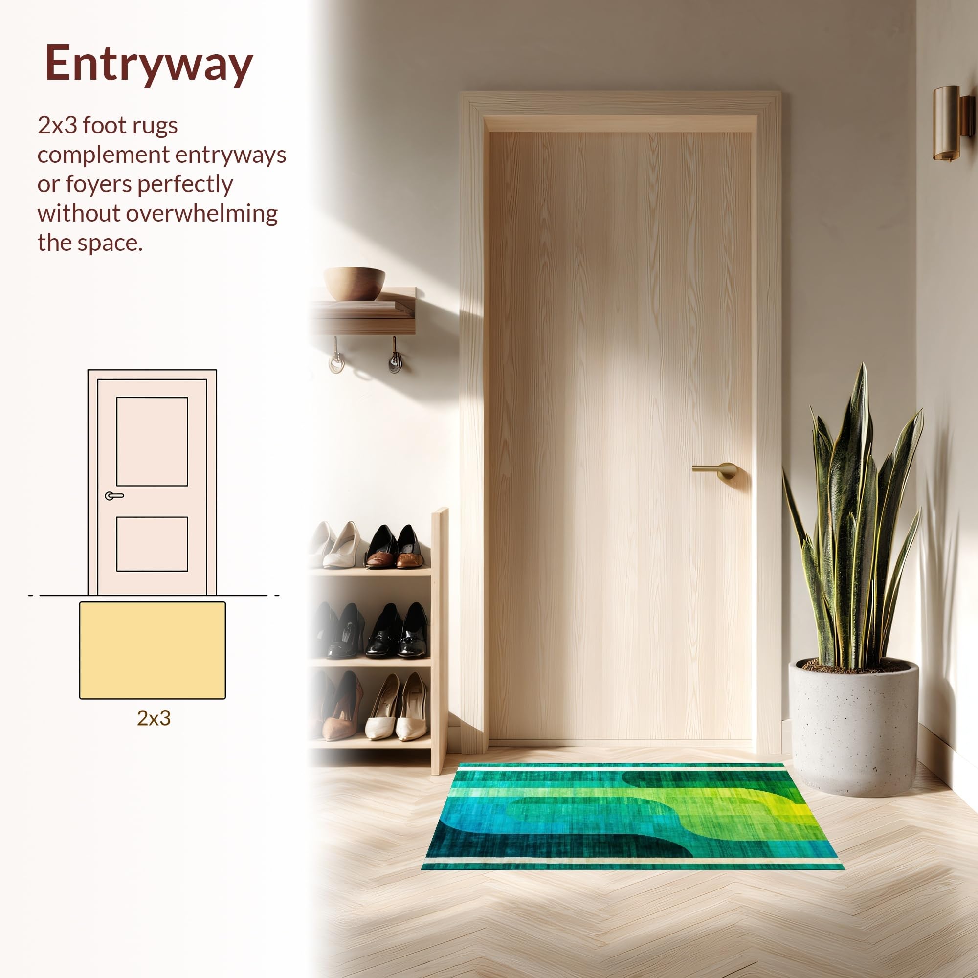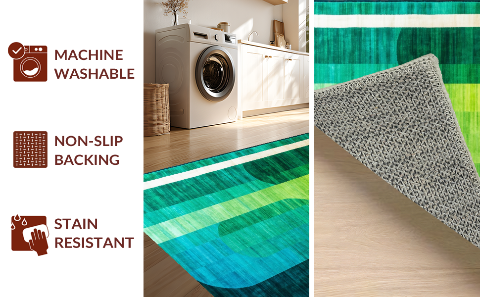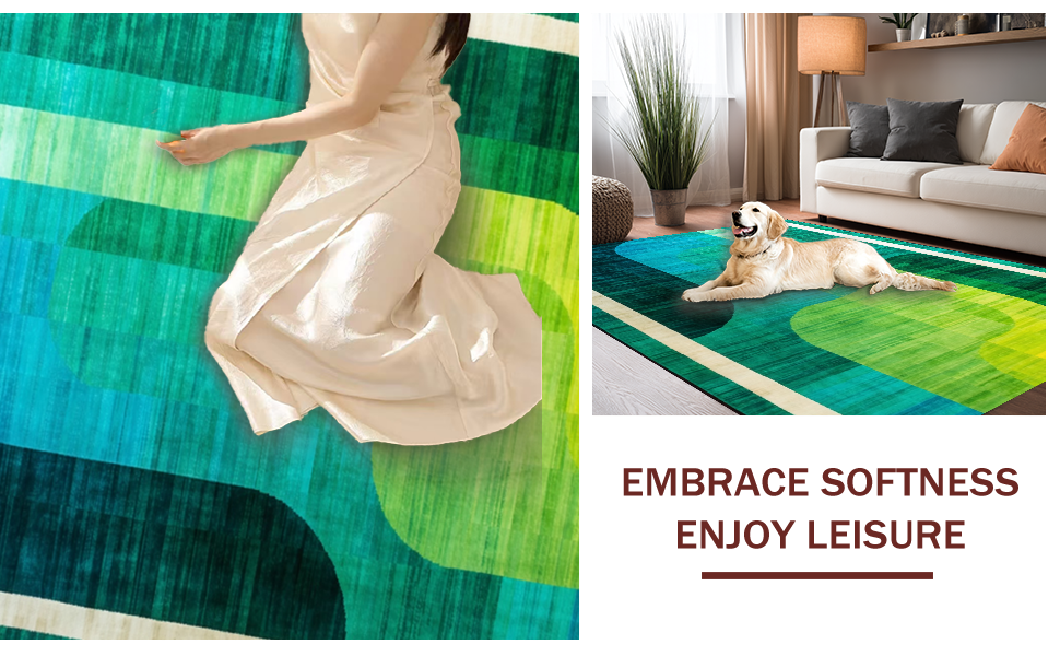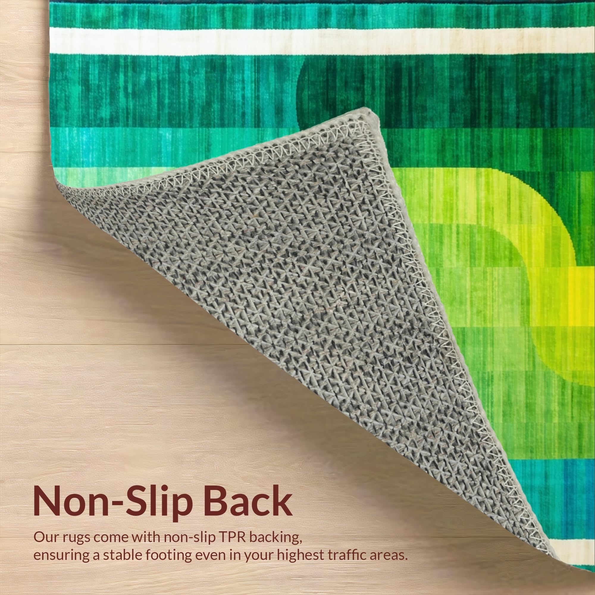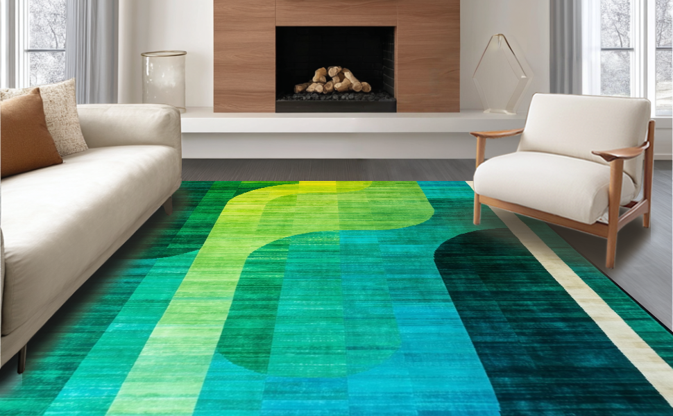 Ultra Soft Area Rug, Non Slip, Stain Resistant, Washable Area Rugs for Living Room, Bedroom, Contemporary Colorful Symmetrical Design(Green) Overview: