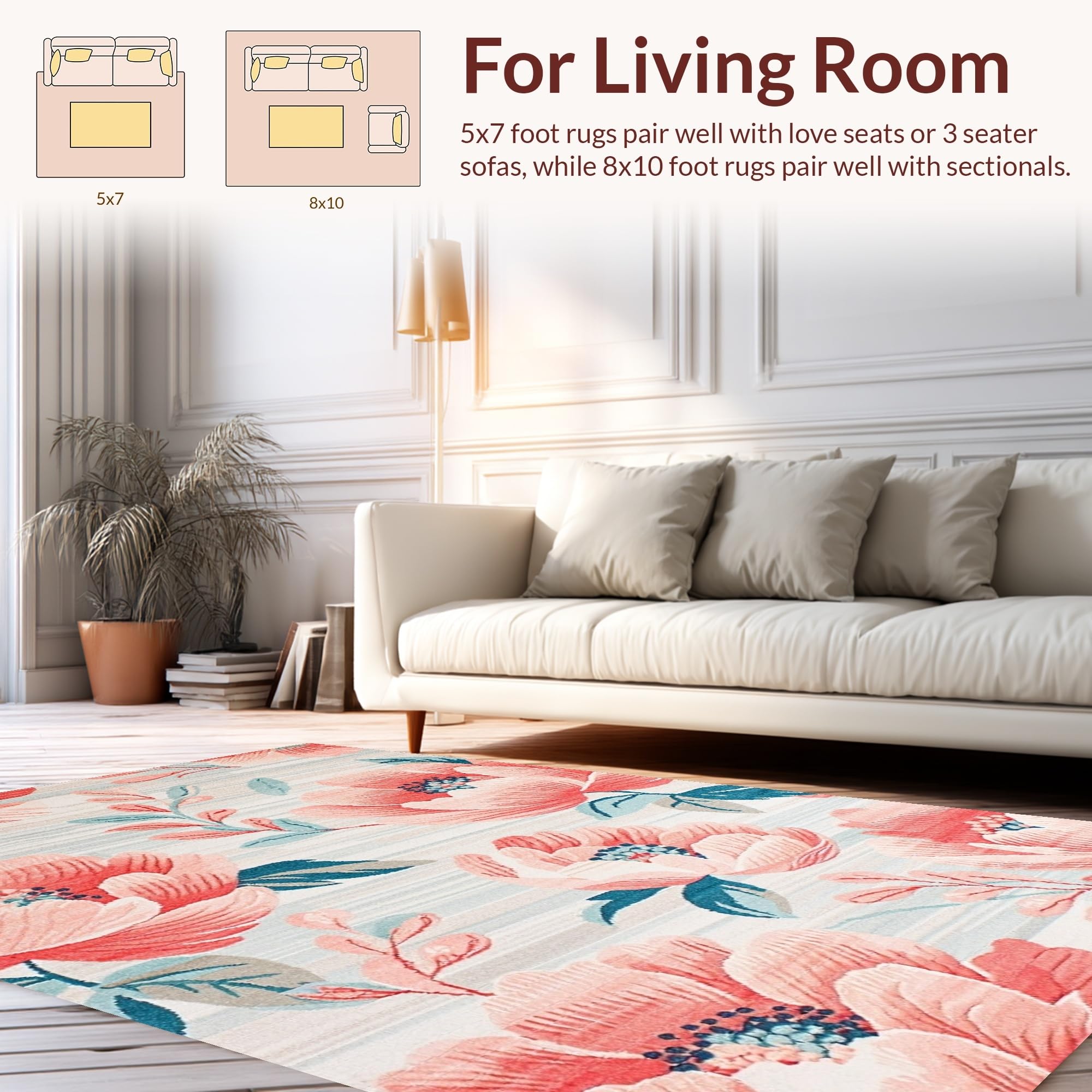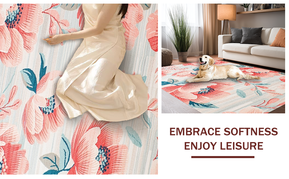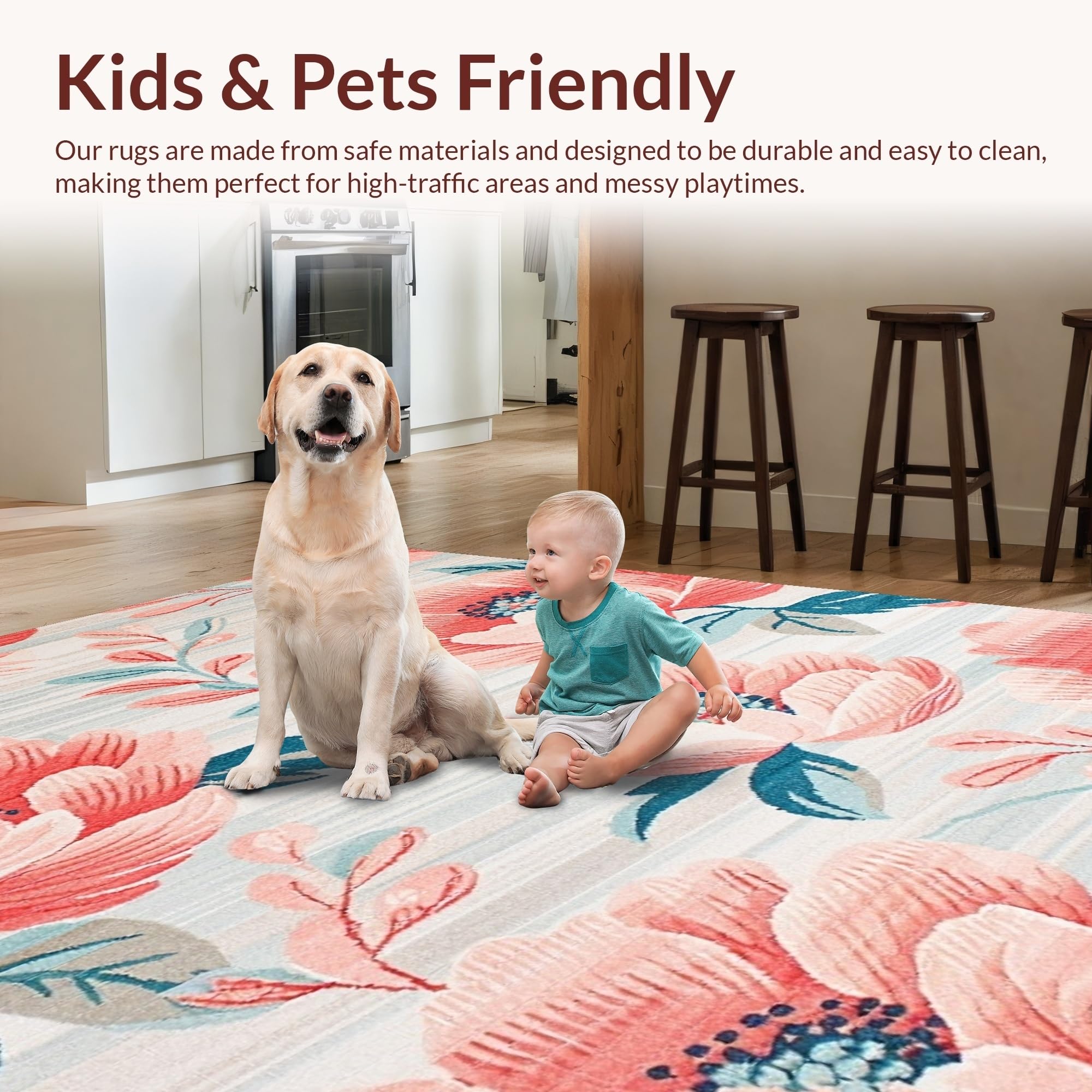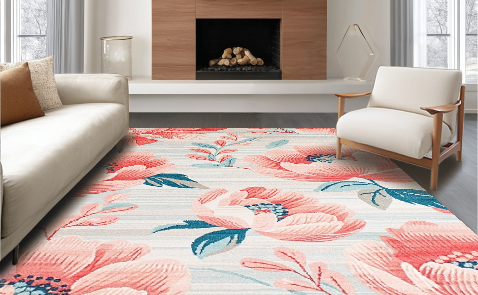 Ultra Soft Area Rug, Non Slip, Stain Resistant, Washable Area Rugs for Living Room, Bedroom, Contemporary Coral Trellis Design(Pink) Overview: