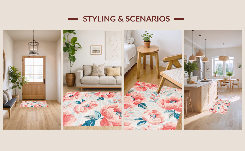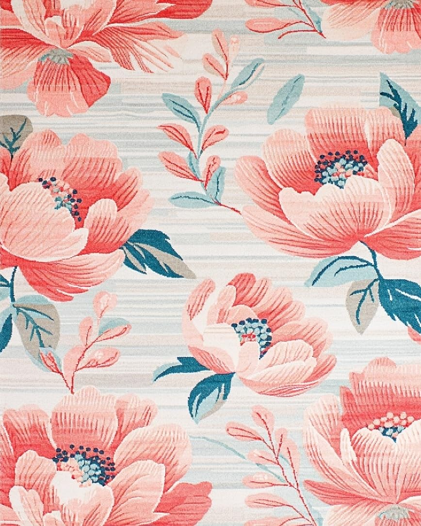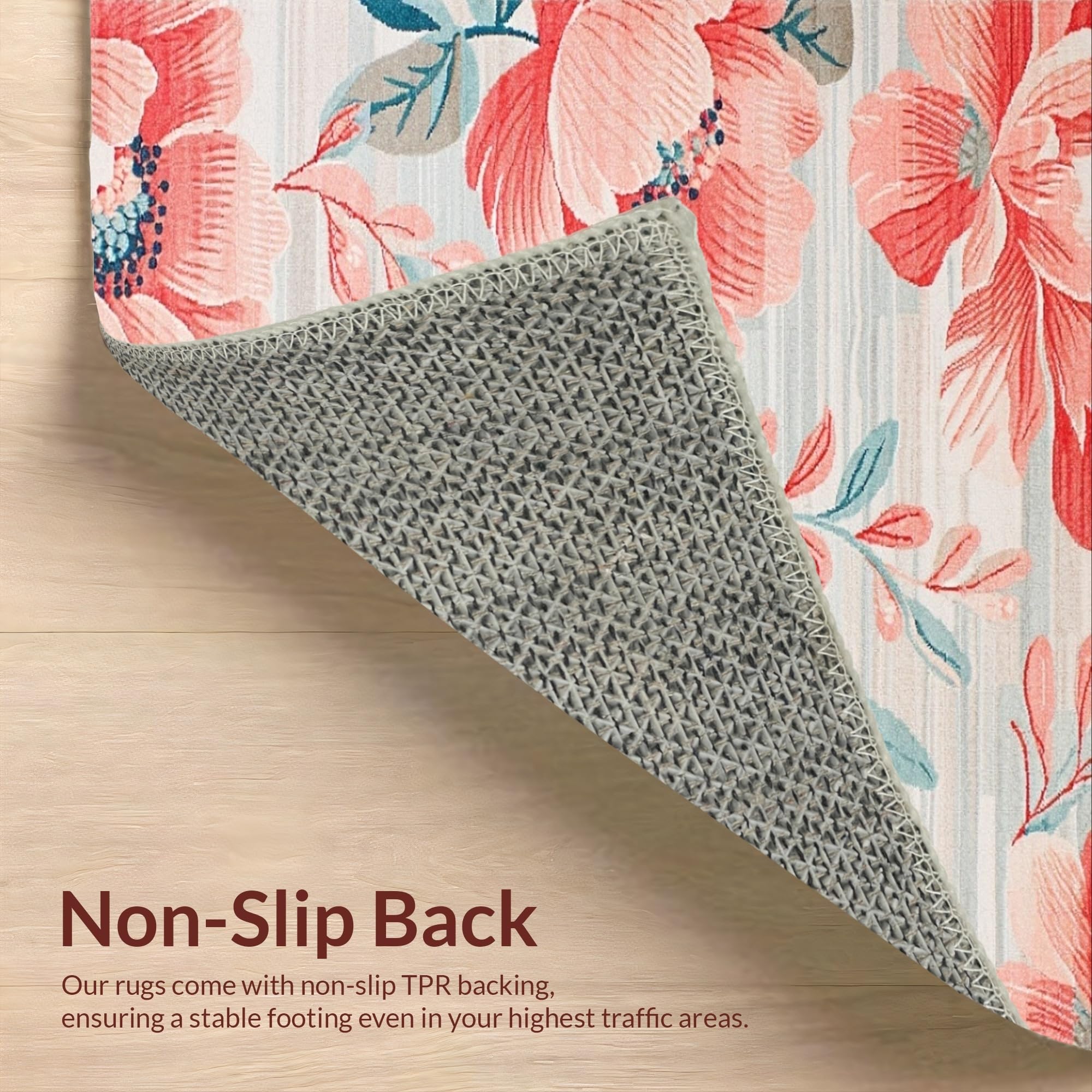 Ultra Soft Area Rug, Non Slip, Stain Resistant, Washable Area Rugs for Living Room, Bedroom, Contemporary Coral Trellis Design(Pink) Overview: