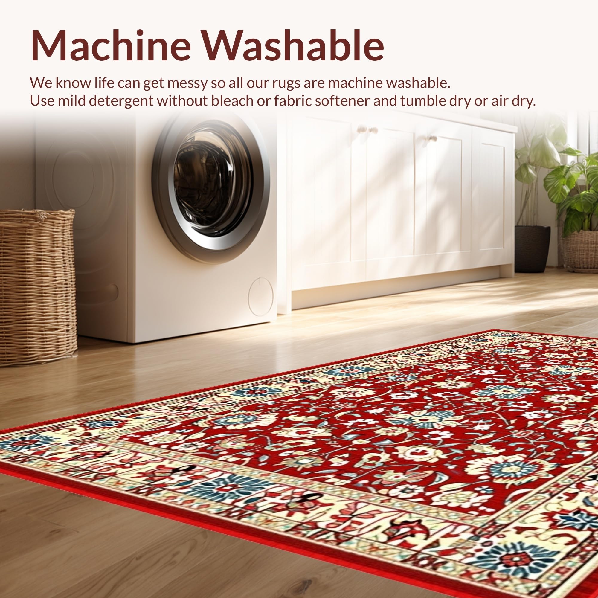 - Machine Washable: Our rugs can be easily thrown in the wash machine.