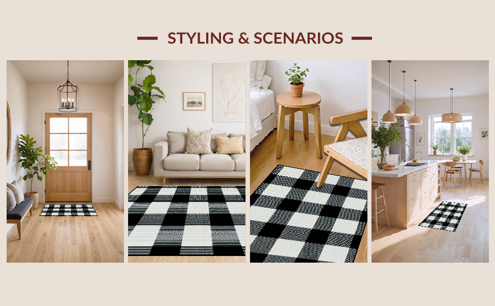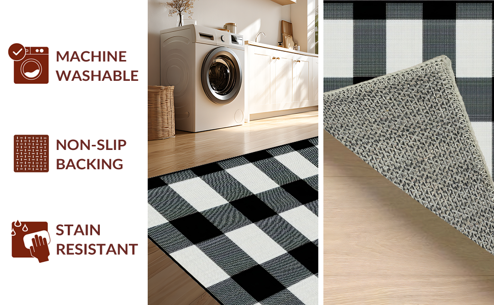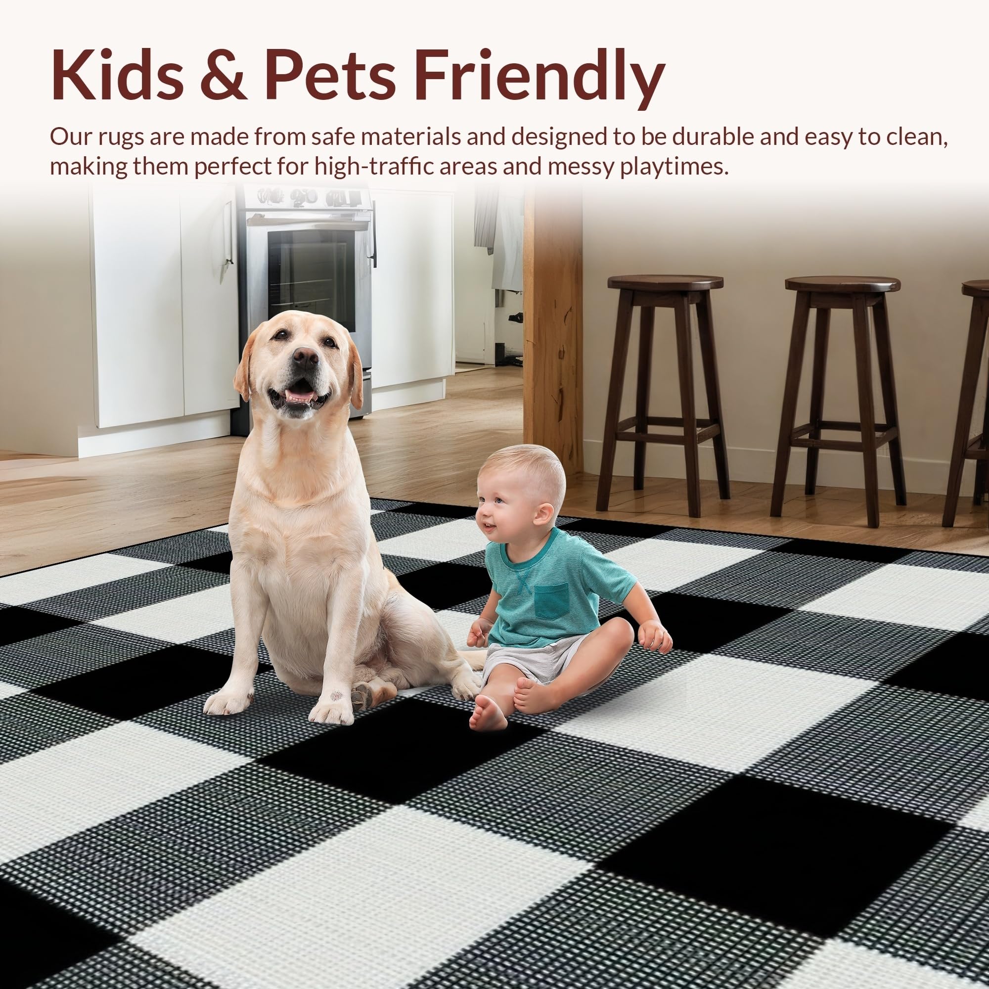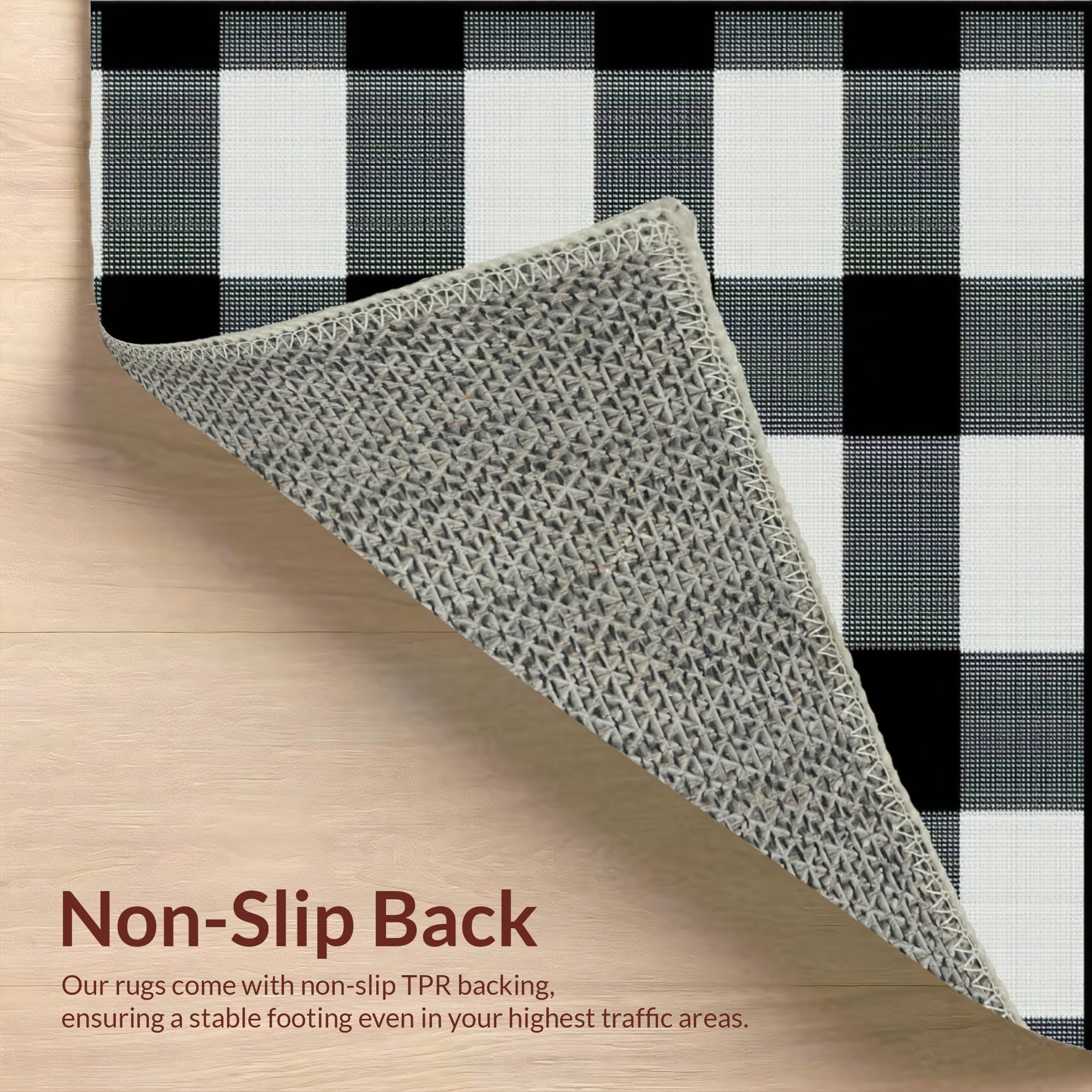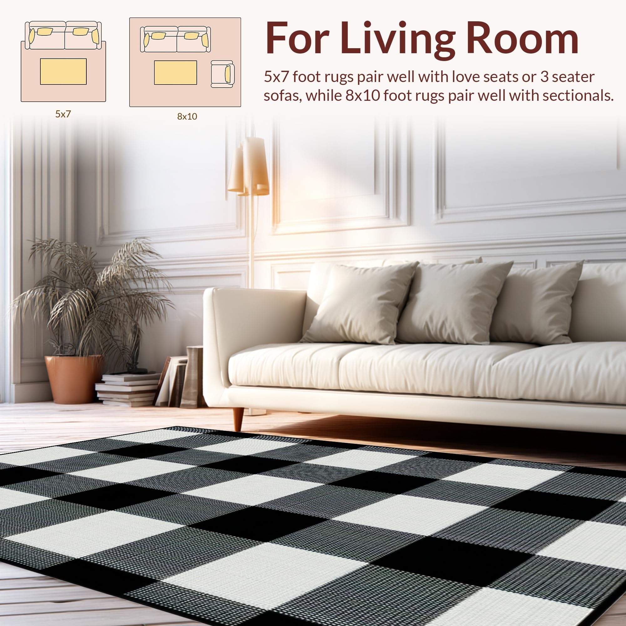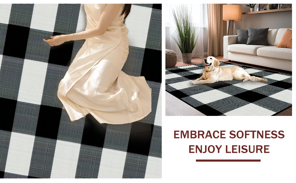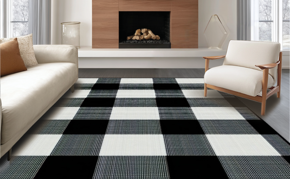 Ultra Soft Area Rug, Non Slip, Stain Resistant, Washable Area Rugs for Living Room, Bedroom, Contemporary Cozy Plaid Aesthetic(Black) Overview: