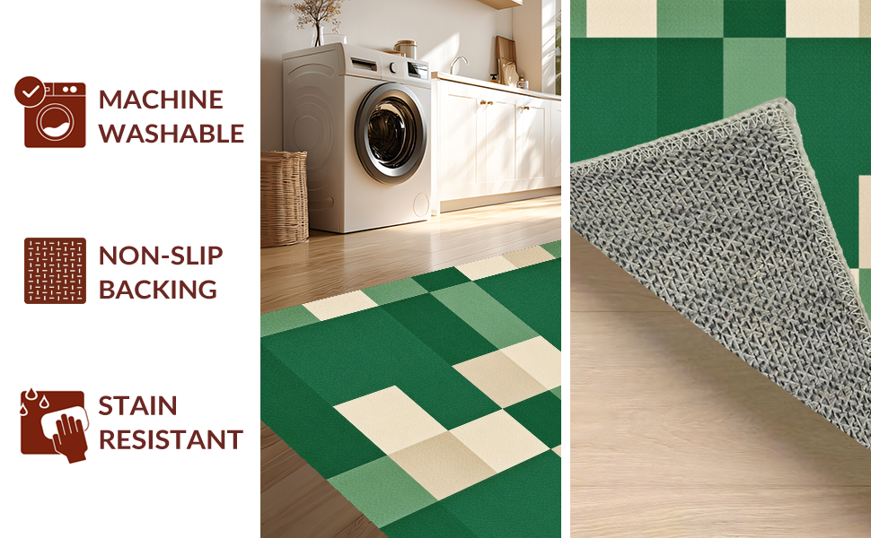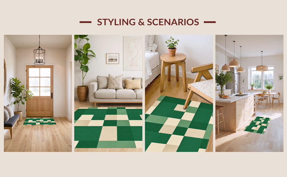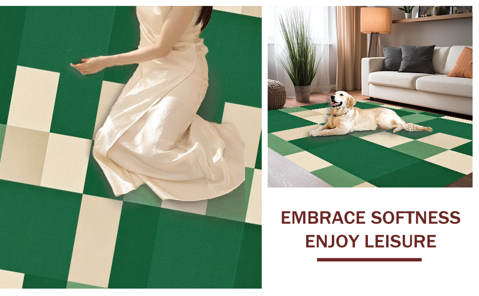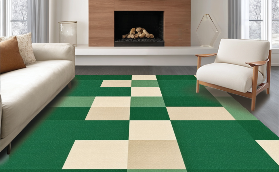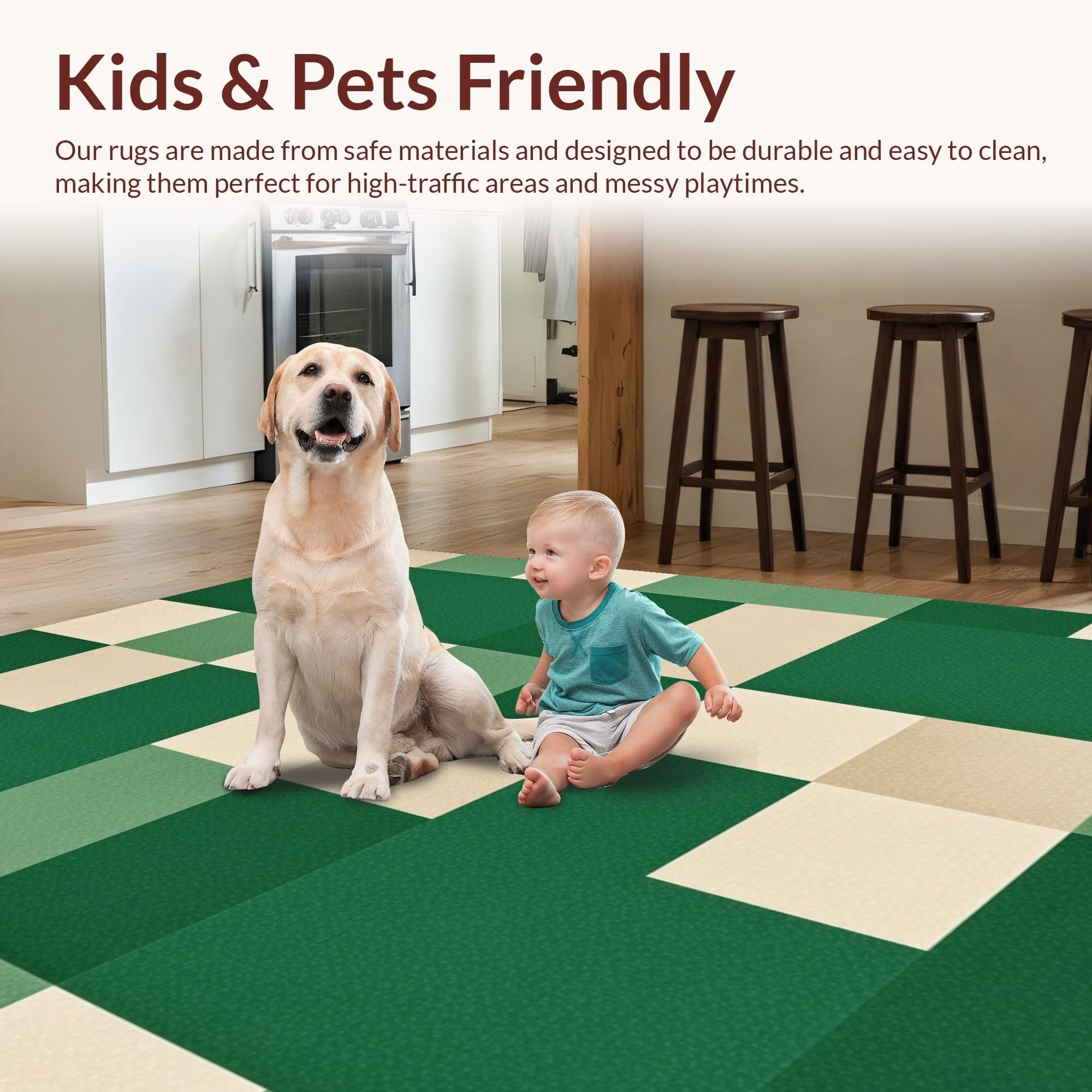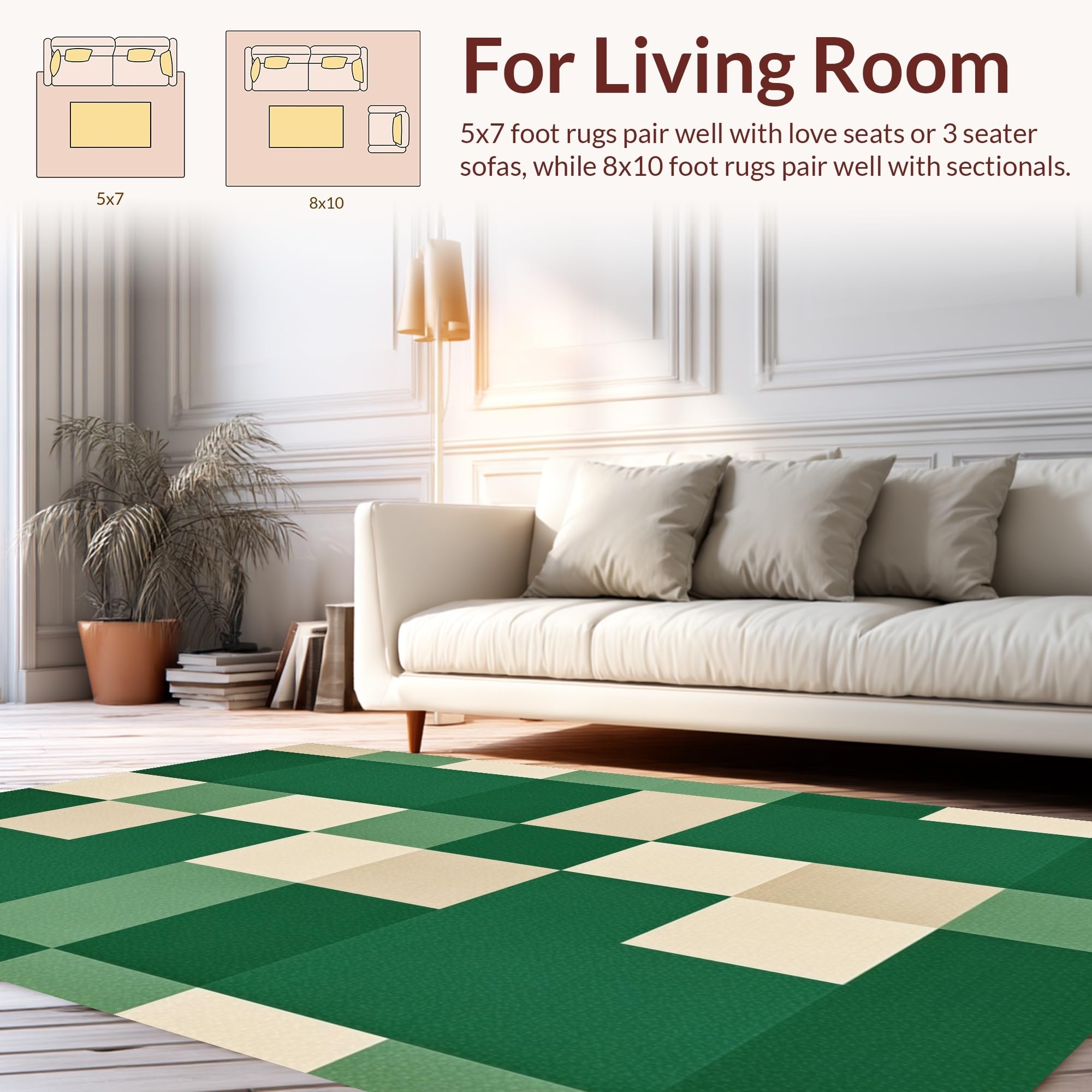 Ultra Soft Area Rug, Non Slip, Stain Resistant, Washable Area Rugs for Living Room, Bedroom, Contemporary Cozy Plaid Arrangement(Green) Overview: