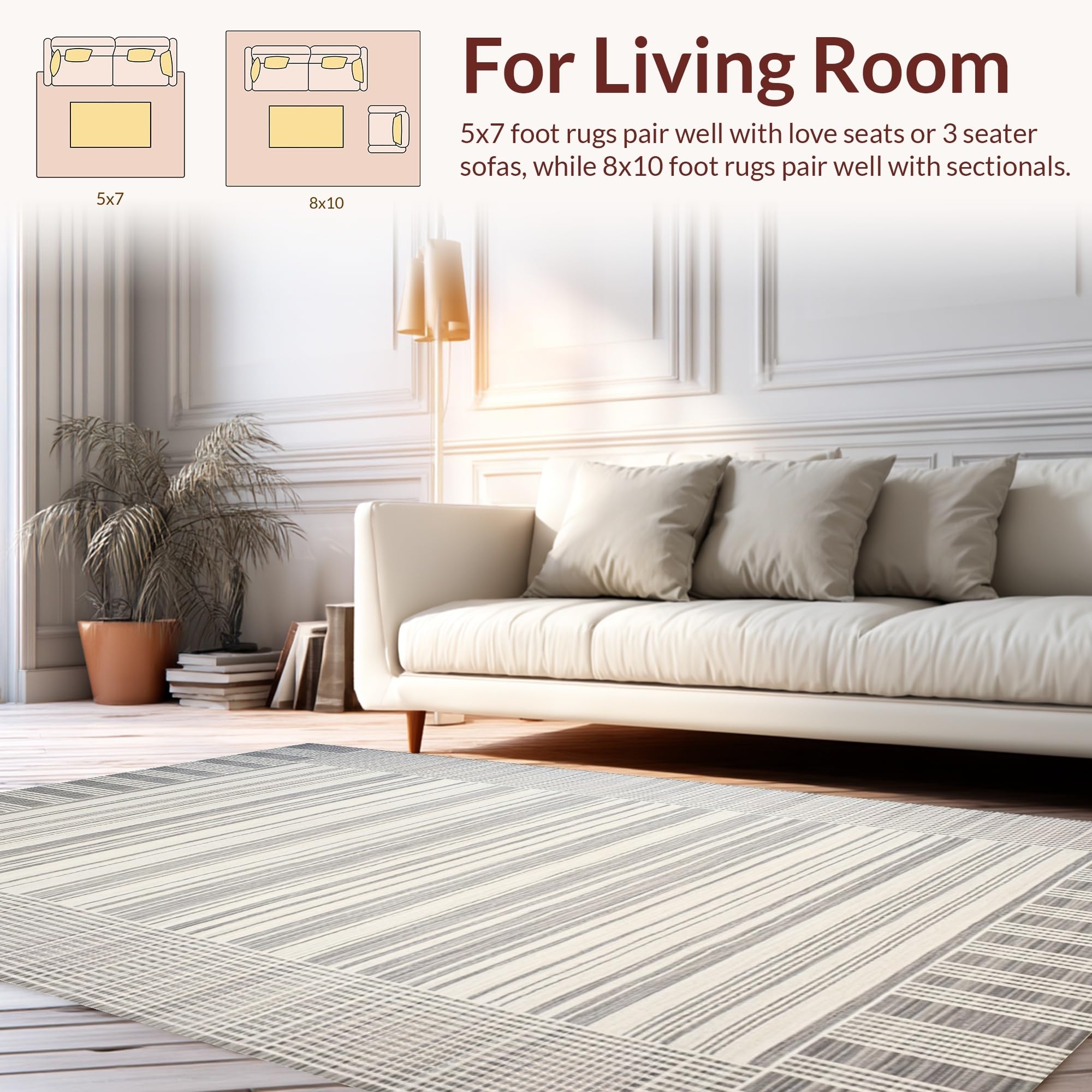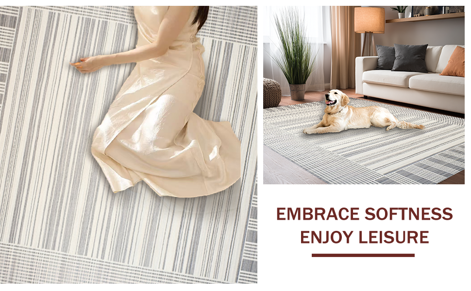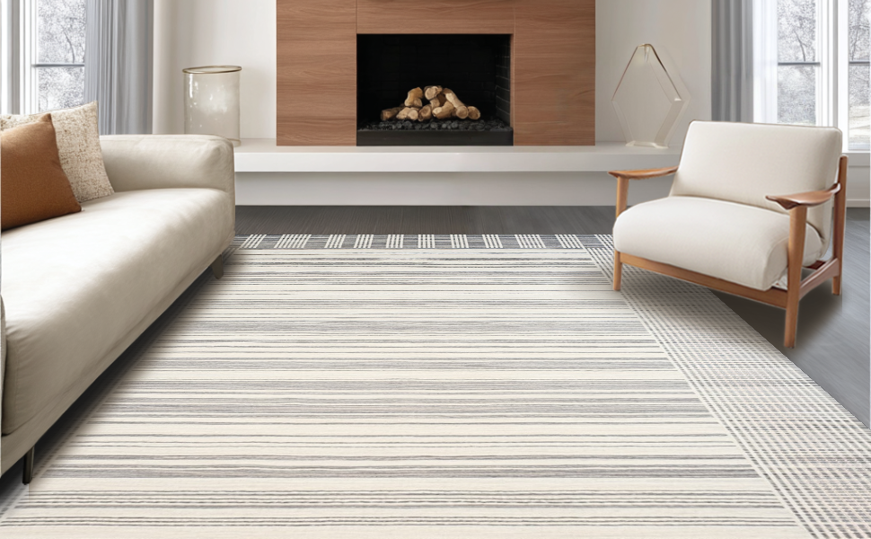 Ultra Soft Area Rug, Non Slip, Stain Resistant, Washable Area Rugs for Living Room, Bedroom, Contemporary Cozy Striped Design(Gray) Overview:
