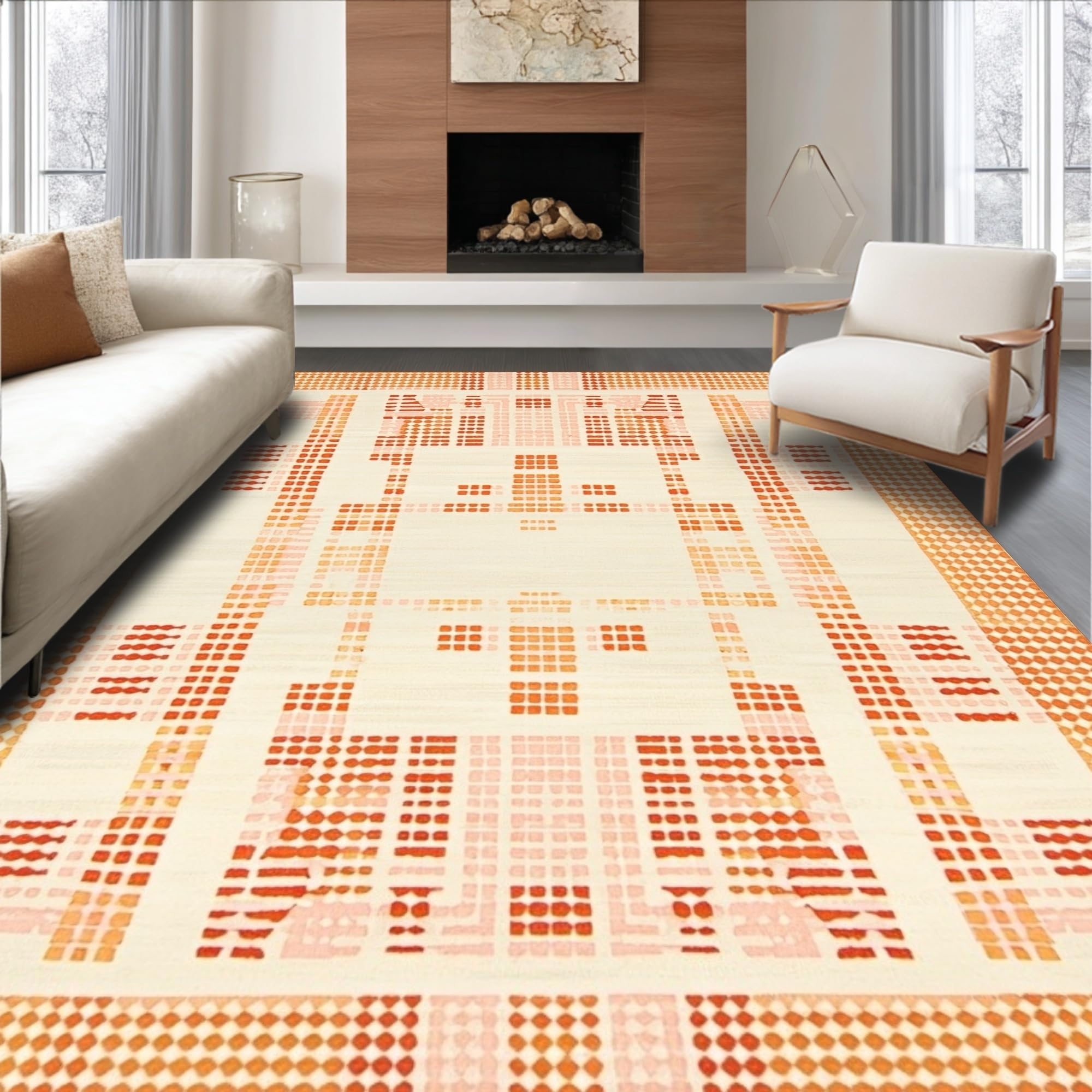 Ultra Soft Area Rug, Non Slip, Stain Resistant, Washable Area Rugs for Living Room, Bedroom, Contemporary Cream Artful Design(Beige) Overview: