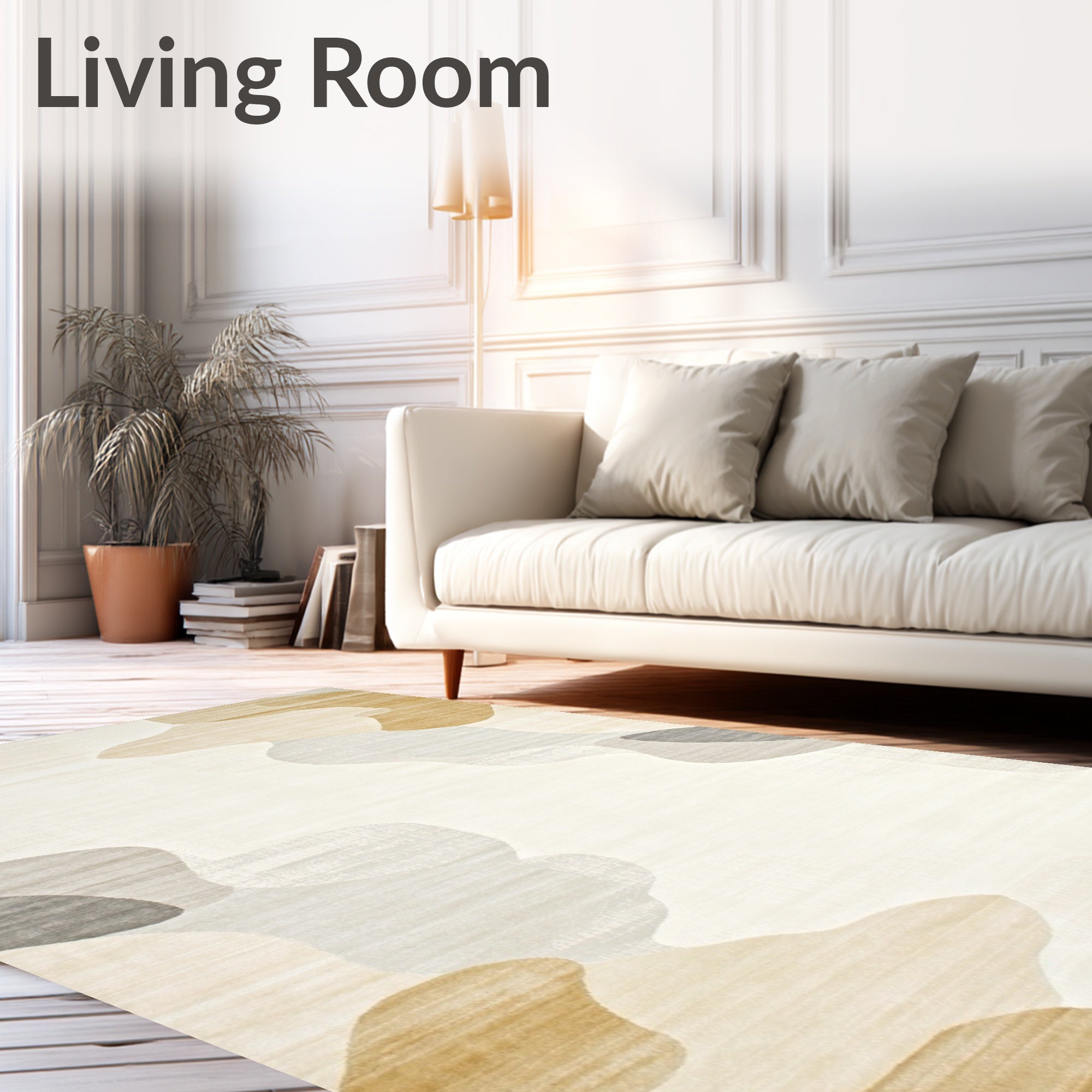 Ultra Soft Area Rug, Non Slip, Stain Resistant, Washable Area Rugs for Living Room, Bedroom, Contemporary Cream Beige with Artistic Abstract Print(Beige) Overview: