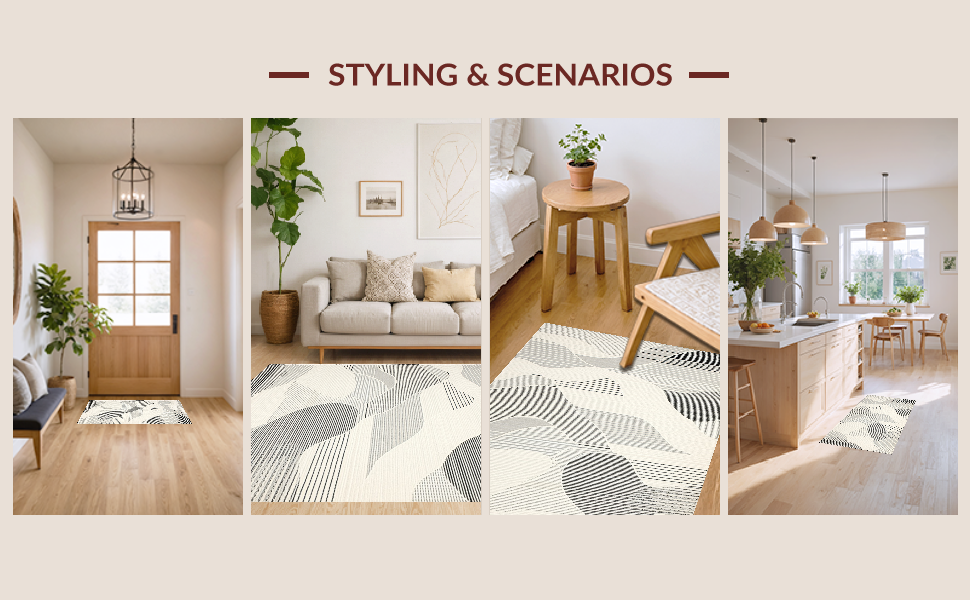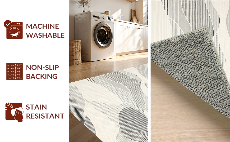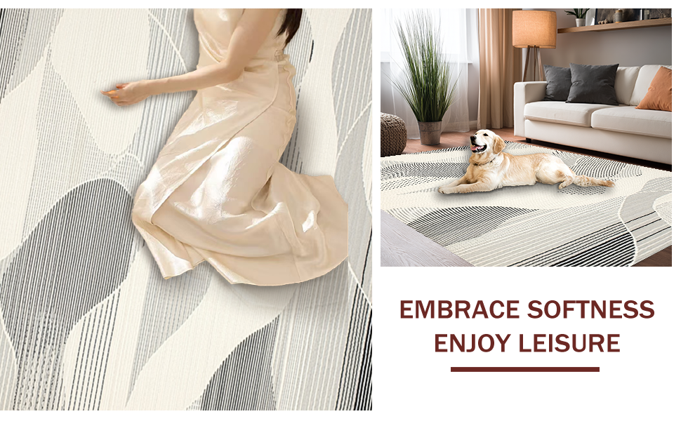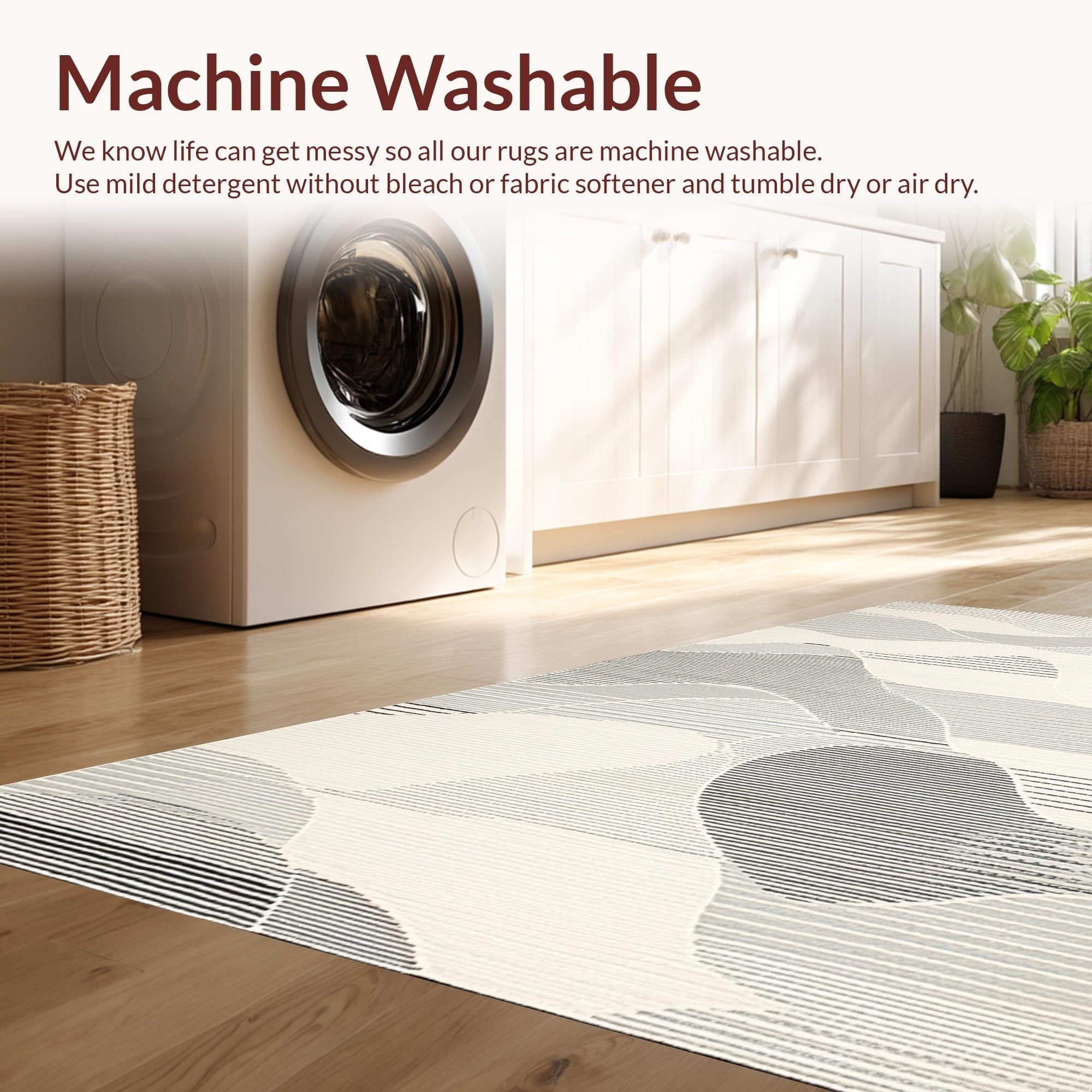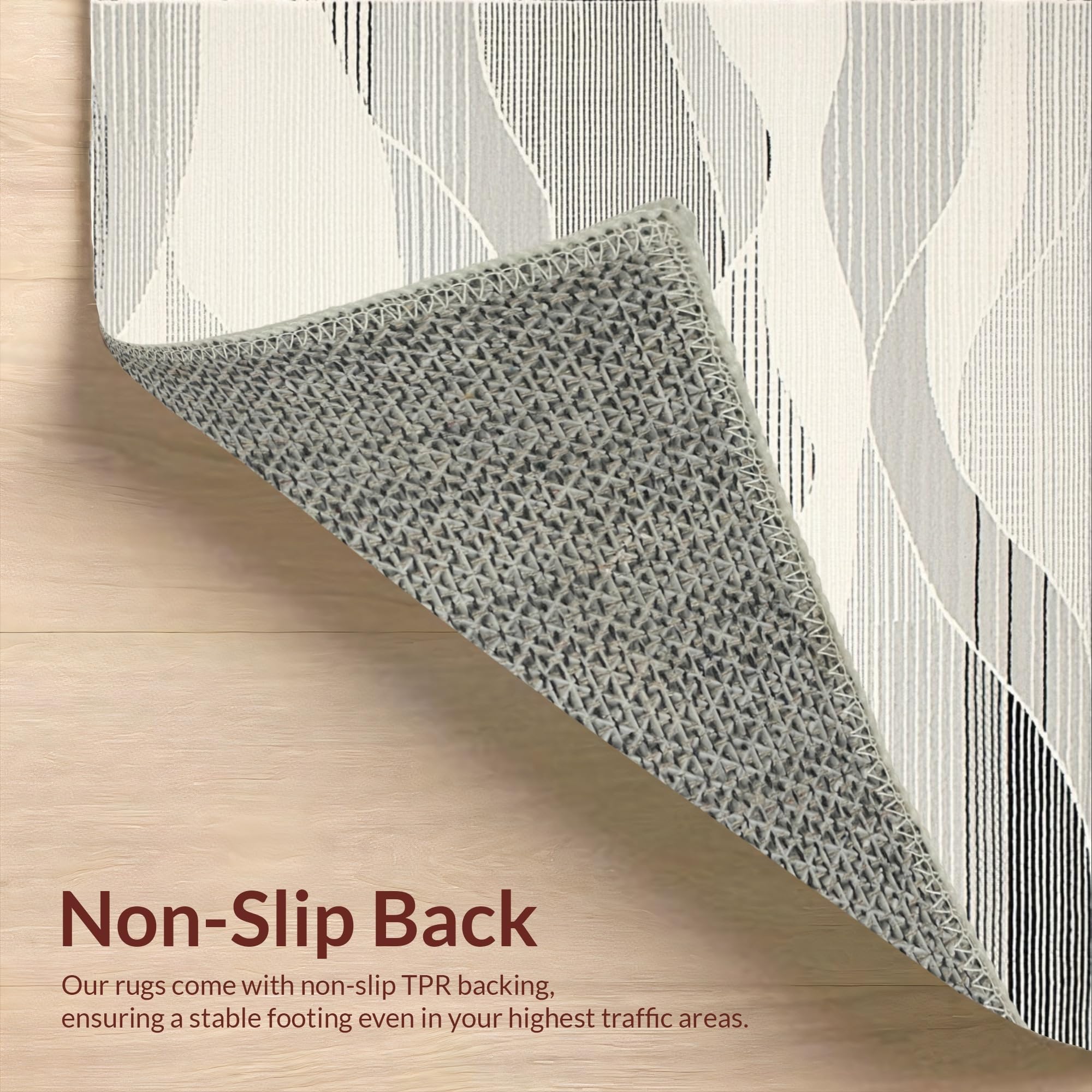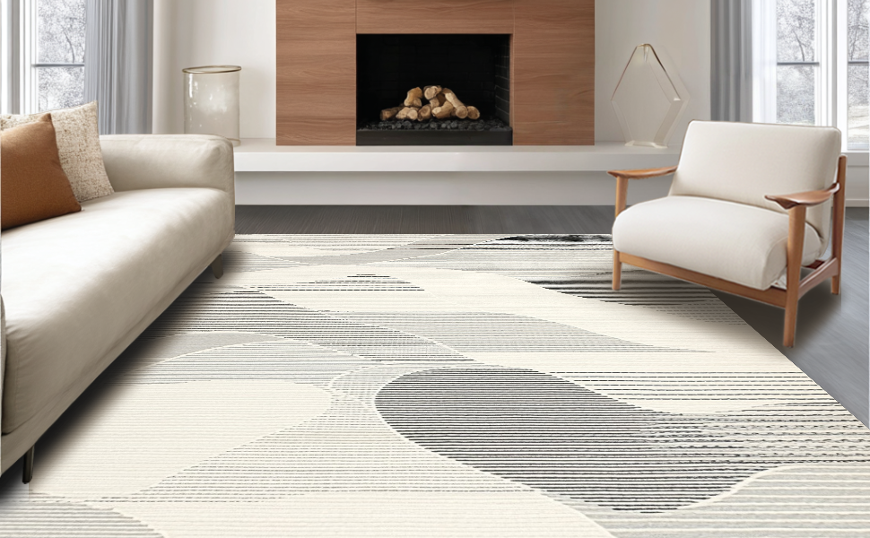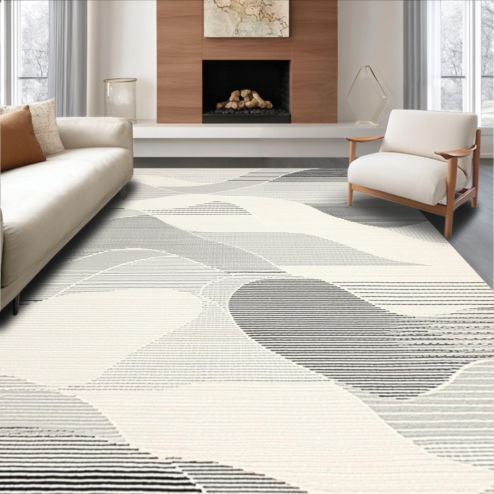 Ultra Soft Area Rug, Non Slip, Stain Resistant, Washable Area Rugs for Living Room, Bedroom, Contemporary Cream Geometric Waves(Black) Overview: