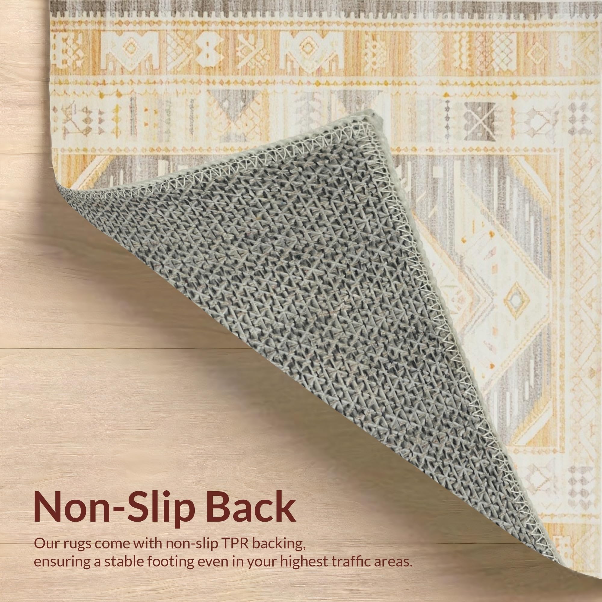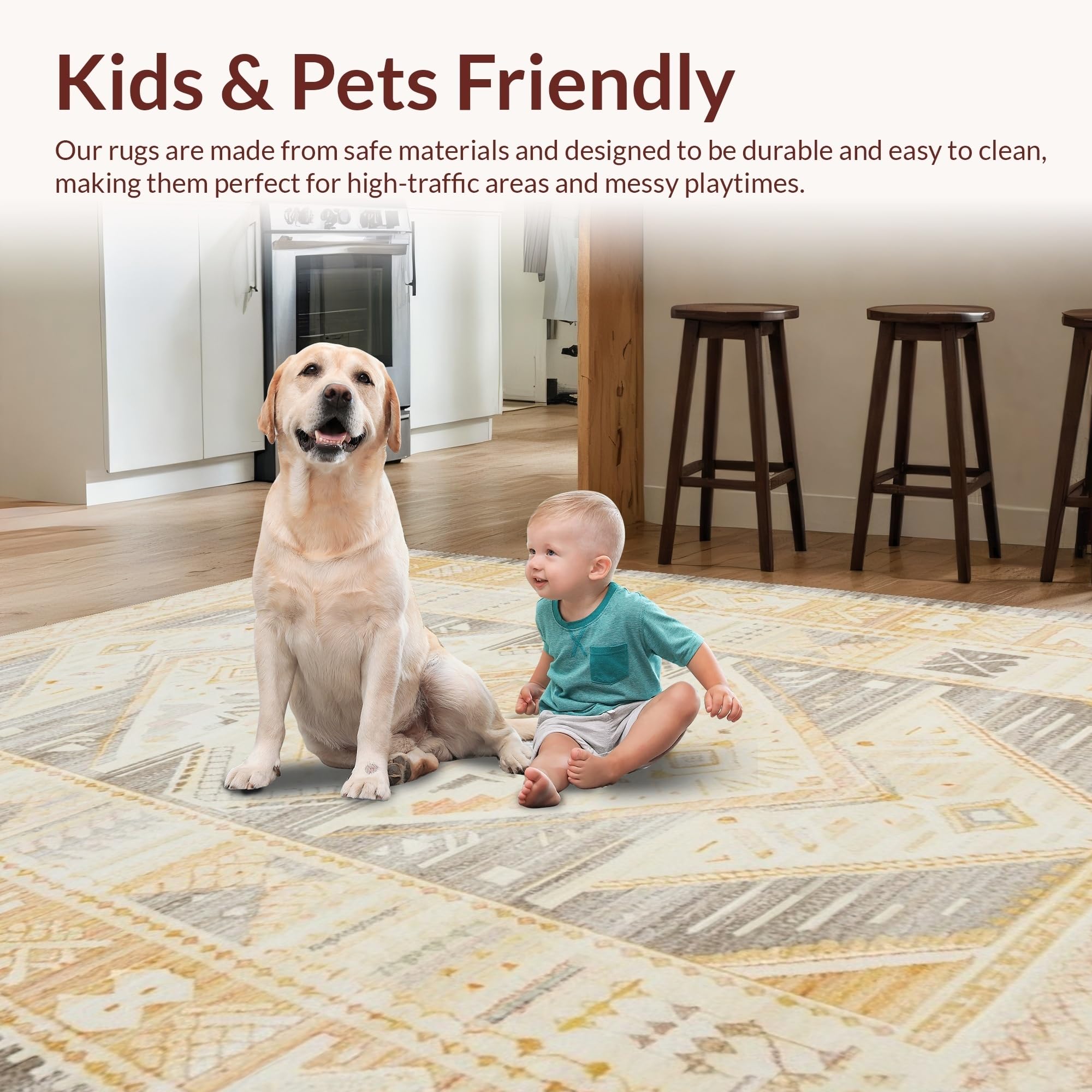 Ultra Soft Area Rug, Non Slip, Stain Resistant, Washable Area Rugs for Living Room, Bedroom, Contemporary Creamy Abstract Elements(Beige) Overview: