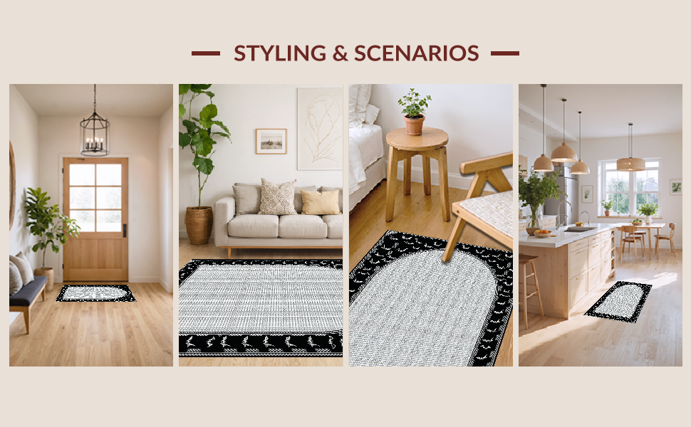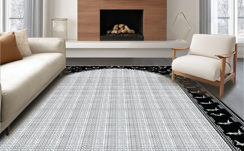 Ultra Soft Area Rug, Non Slip, Stain Resistant, Washable Area Rugs for Living Room, Bedroom, Contemporary Creepy Artful Design(Black) Overview: