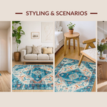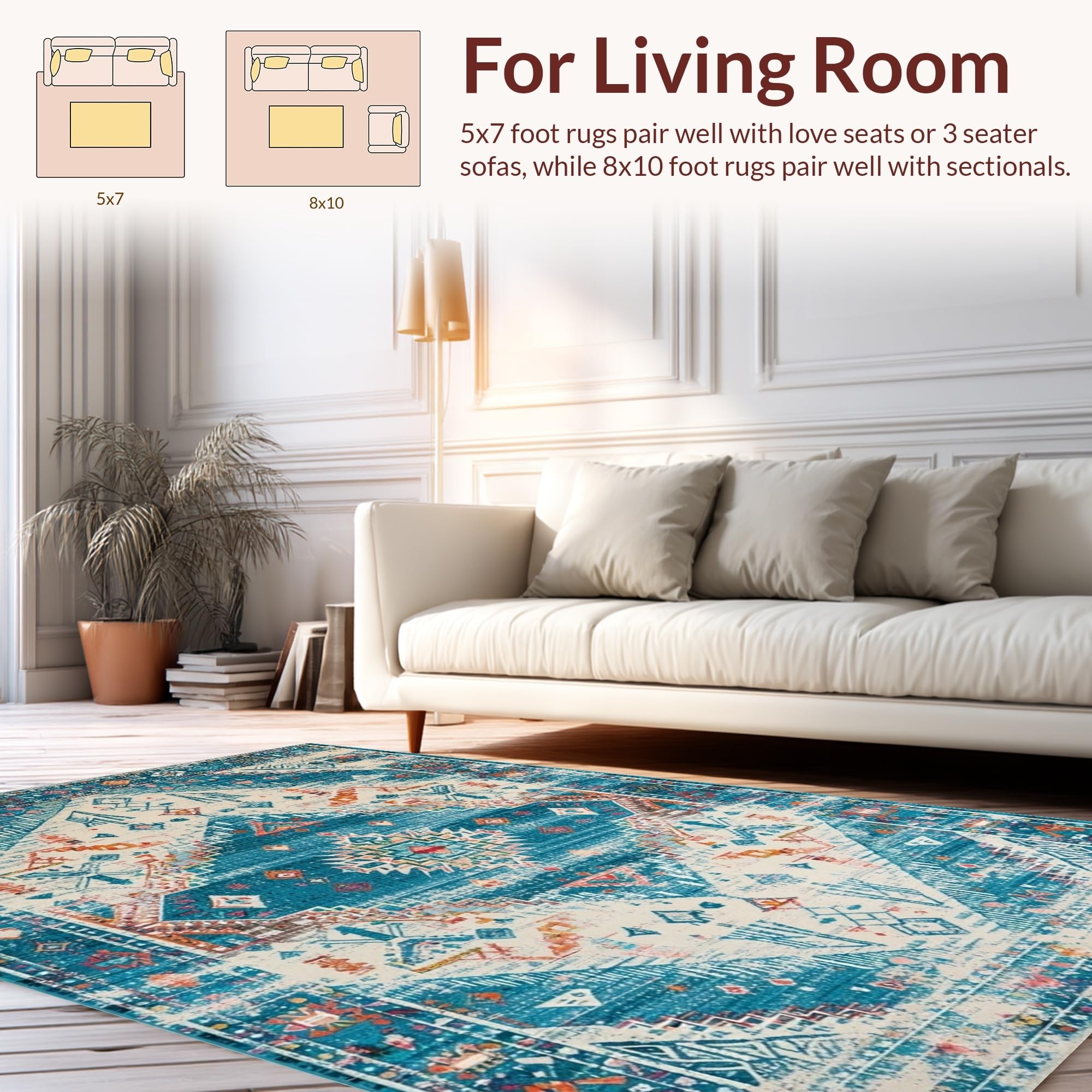 Ultra Soft Area Rug, Non Slip, Stain Resistant, Washable Area Rugs for Living Room, Bedroom, Contemporary Curved Linear Design(Blue) Overview:
