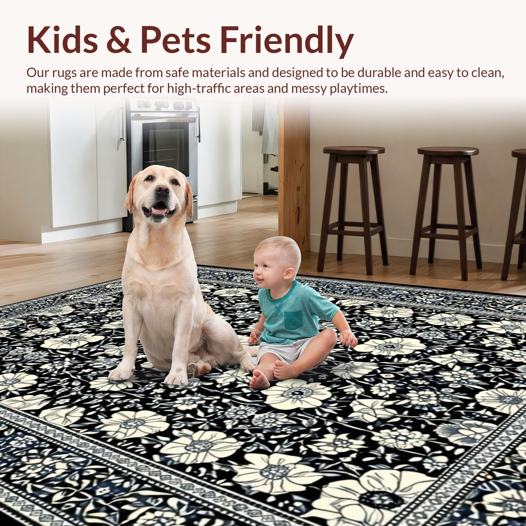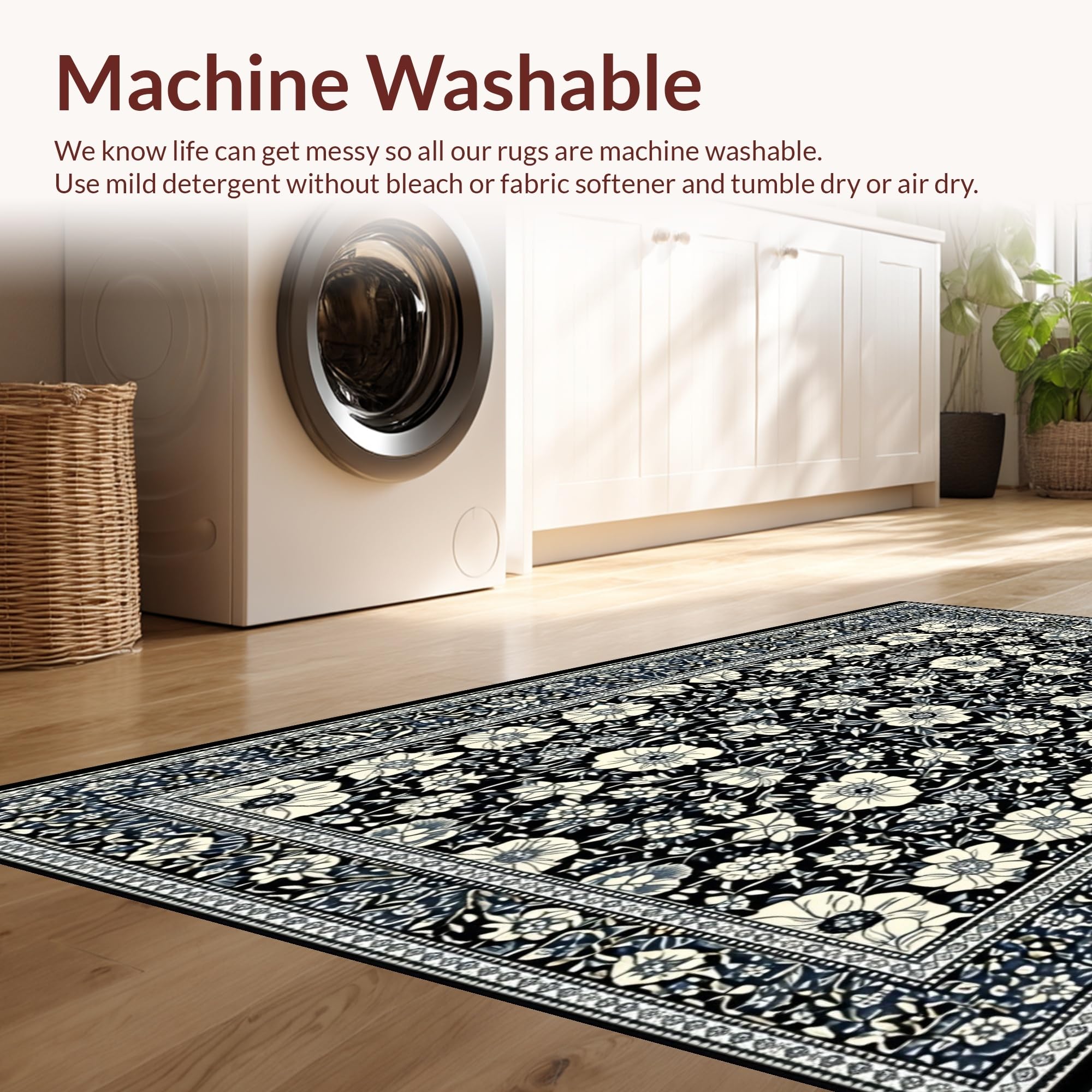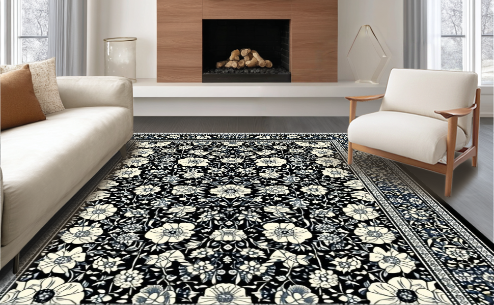 Ultra Soft Area Rug, Non Slip, Stain Resistant, Washable Area Rugs for Living Room, Bedroom, Contemporary Dark Bloom Arrangement(Black) Overview: