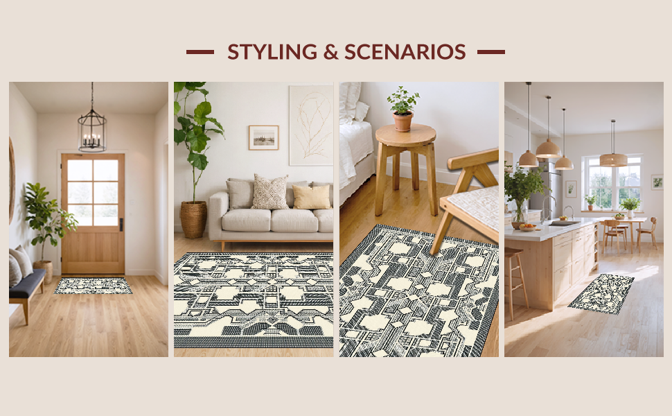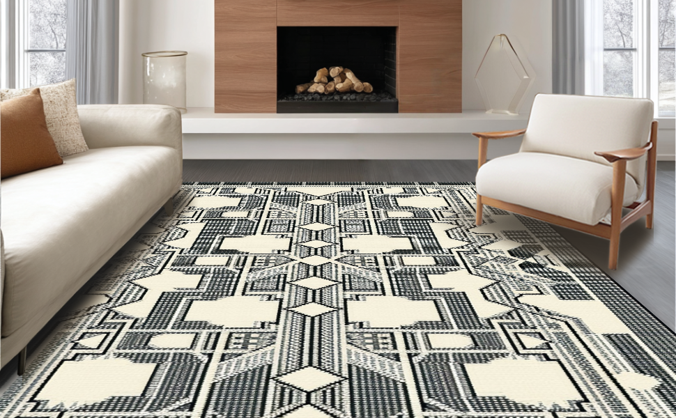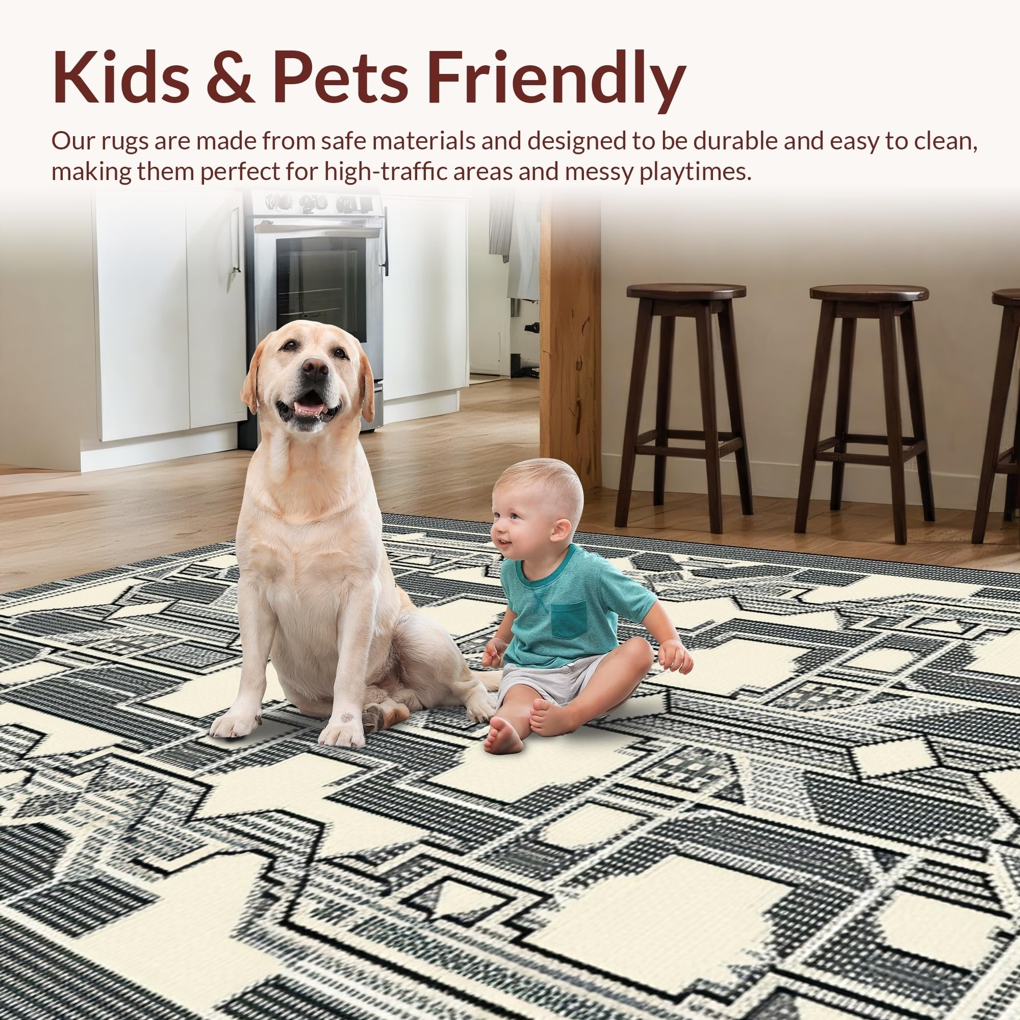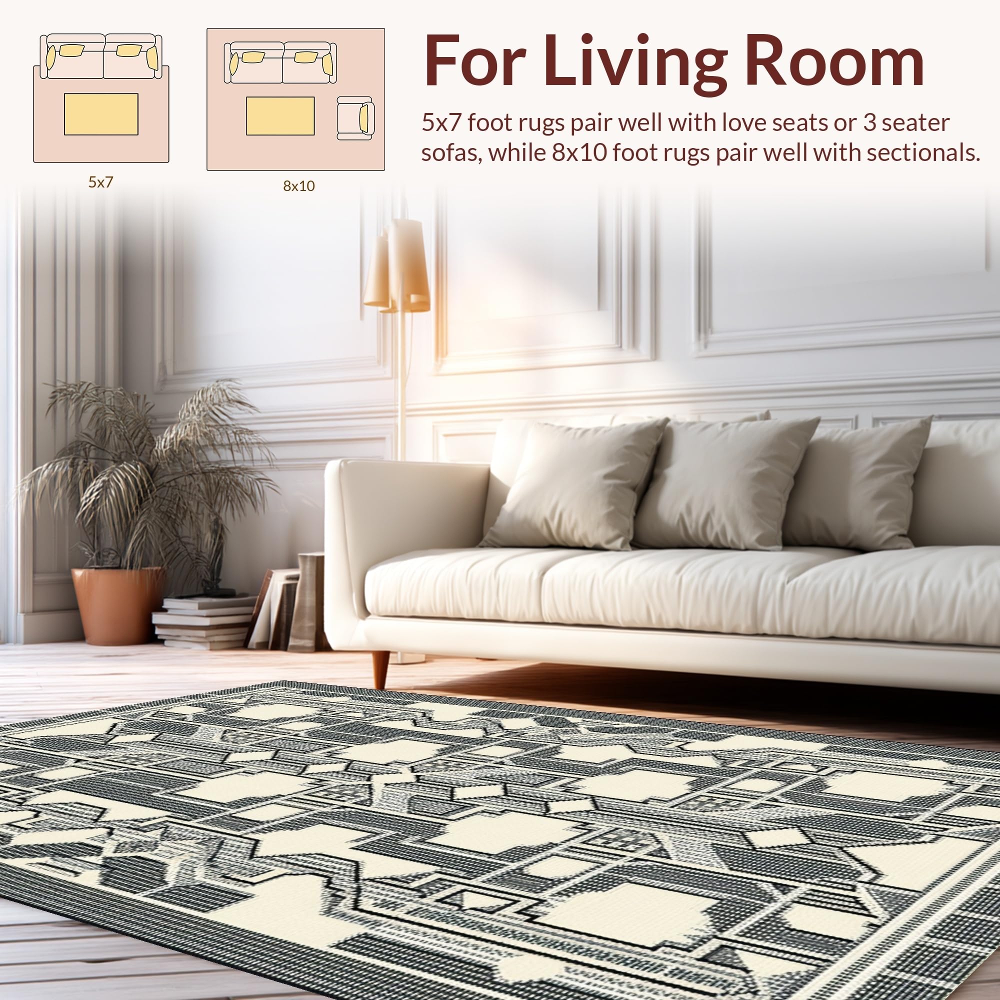 Ultra Soft Area Rug, Non Slip, Stain Resistant, Washable Area Rugs for Living Room, Bedroom, Contemporary Dark Gray Lattice Style(Black) Overview: