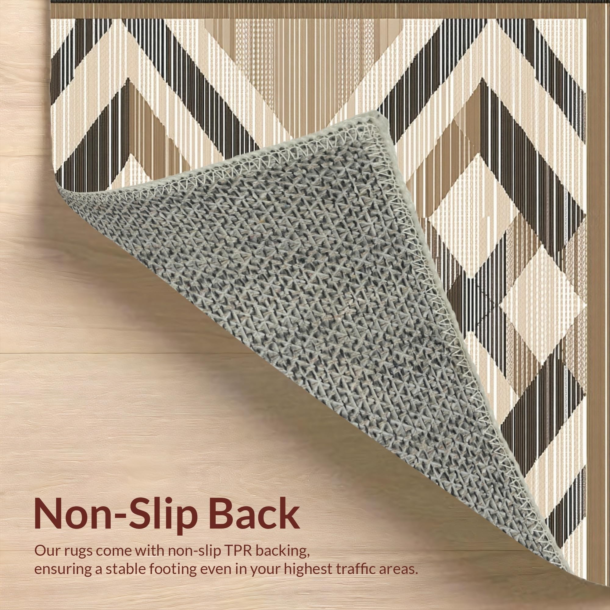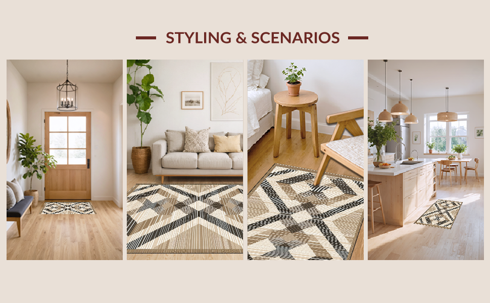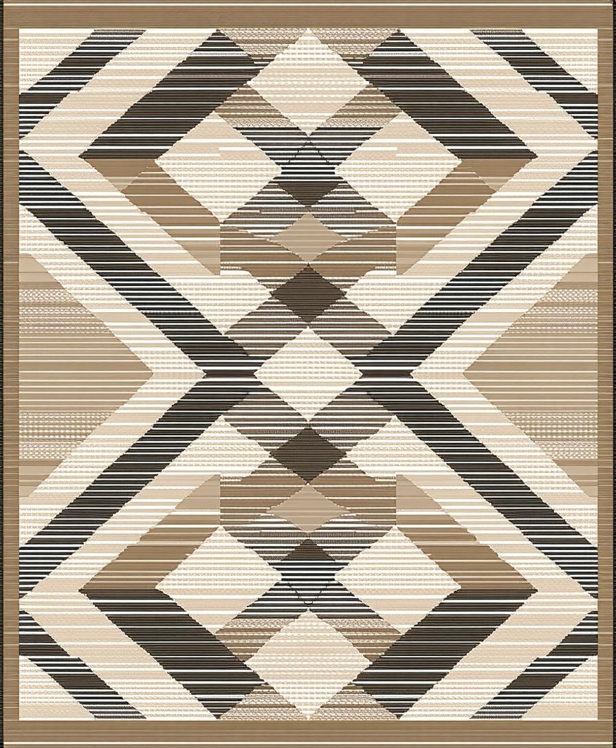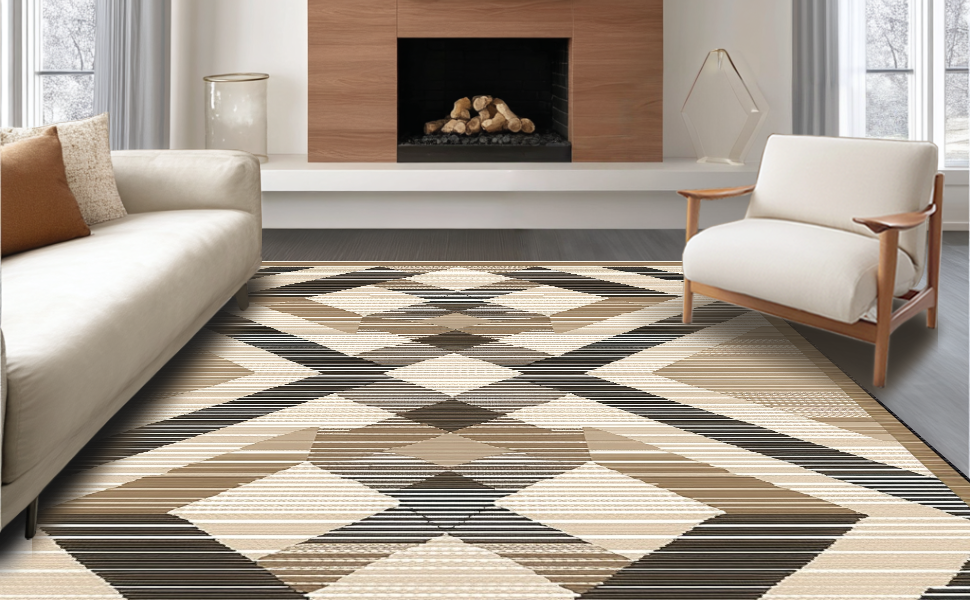 Ultra Soft Area Rug, Non Slip, Stain Resistant, Washable Area Rugs for Living Room, Bedroom, Contemporary Diamond Motif in Brown(Beige) Overview: