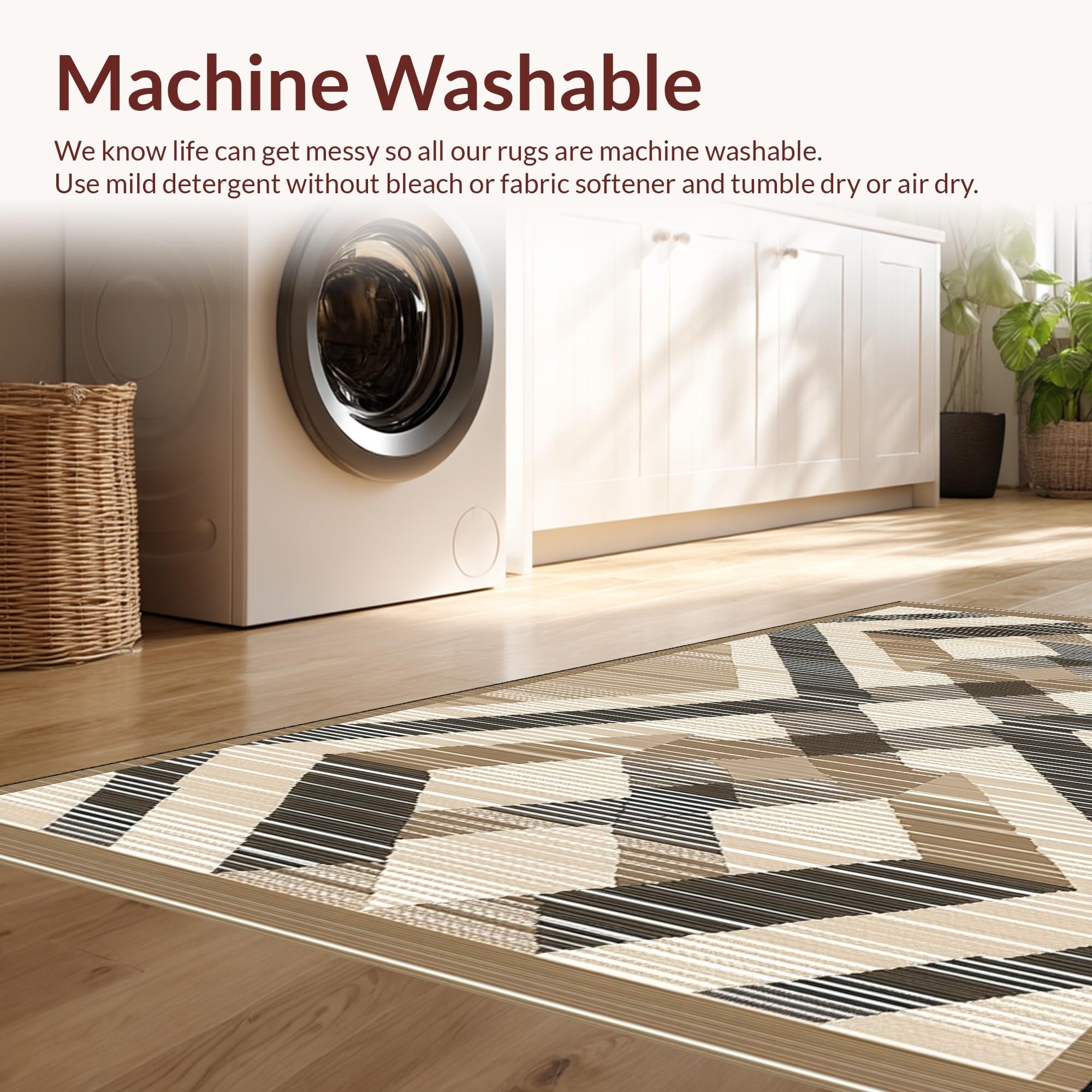 - Machine Washable: Our rugs can be easily thrown in the wash machine.