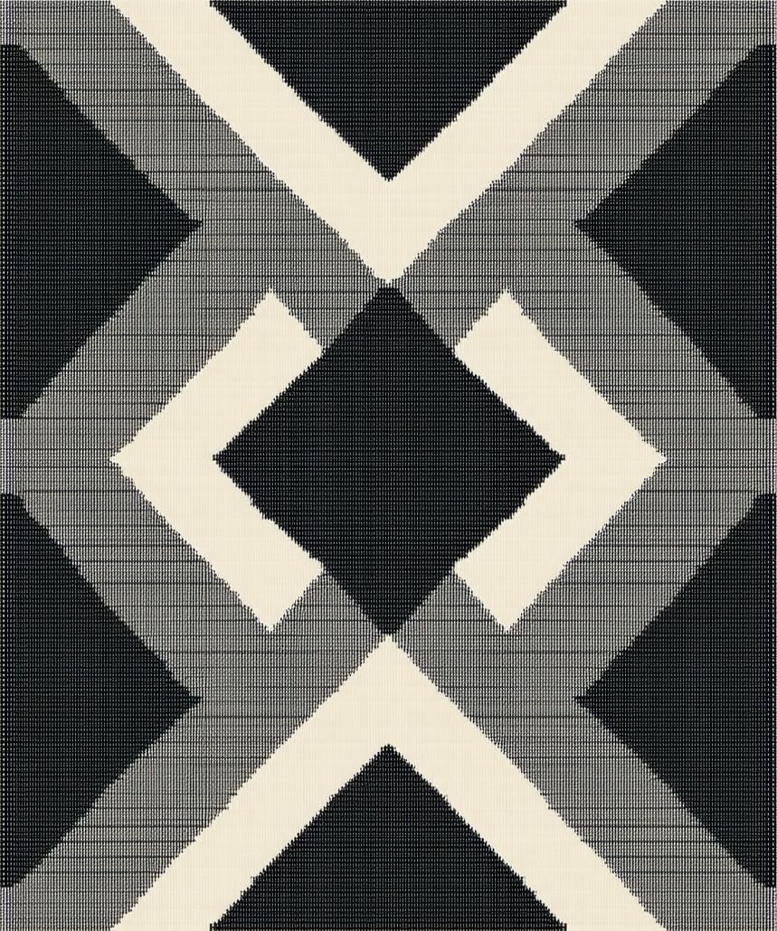 Contemporary Diamond Weave Black & Beige Colorblock Design(Black)