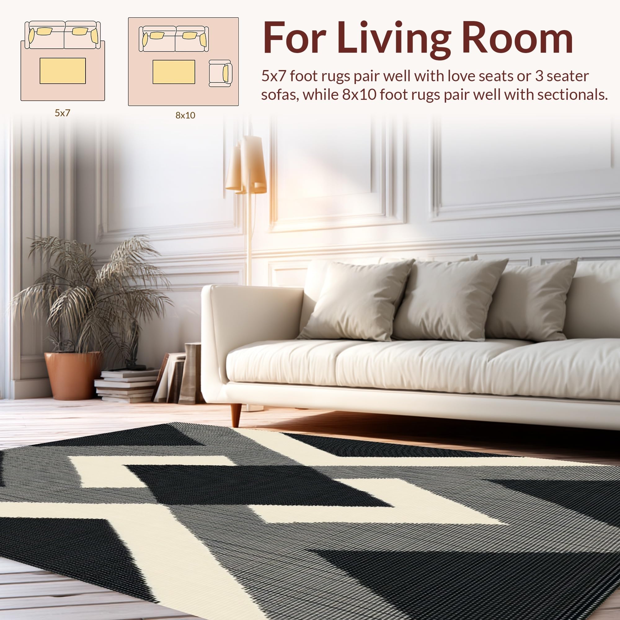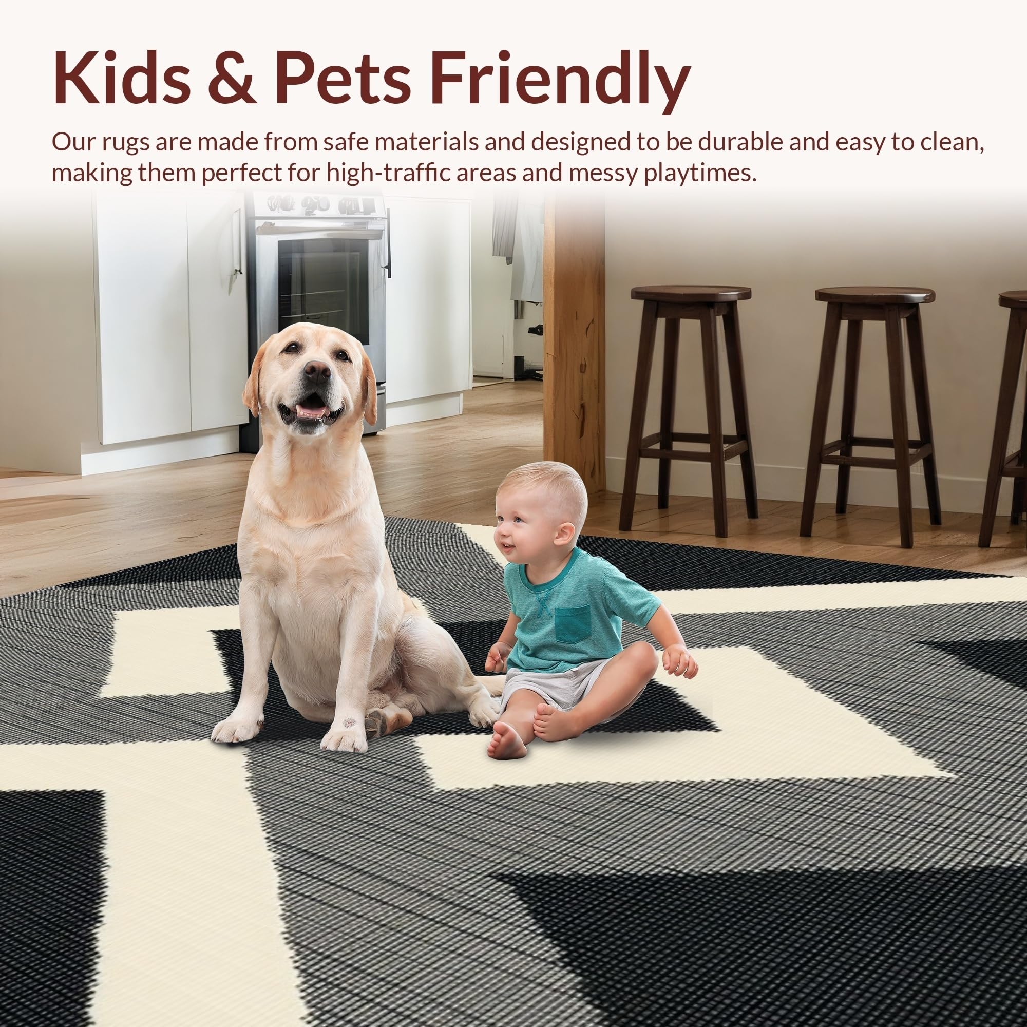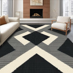 Ultra Soft Area Rug, Non Slip, Stain Resistant, Washable Area Rugs for Living Room, Bedroom, Contemporary Diamond Weave Black & Beige Colorblock Design(Black) Overview: