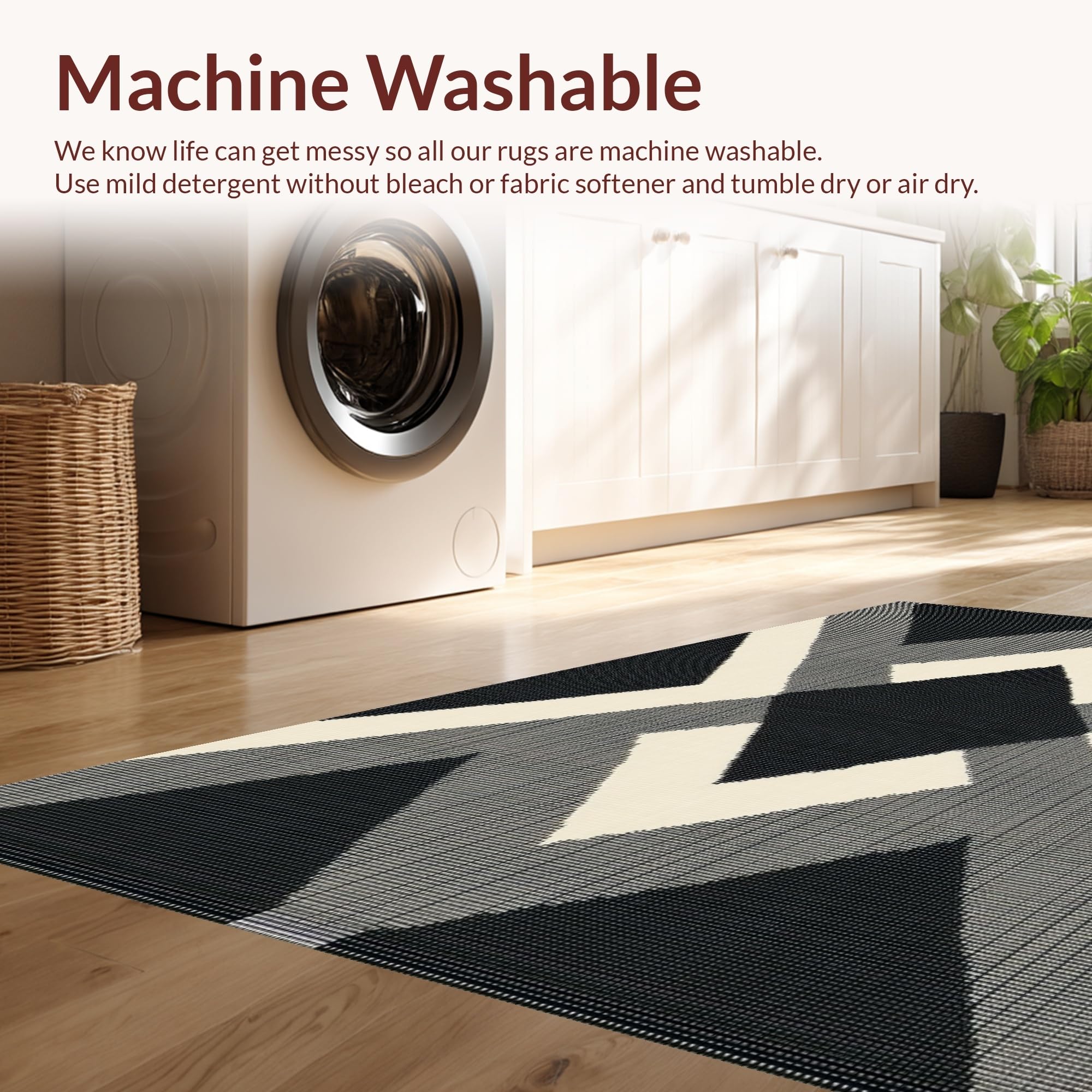 - Machine Washable: Our rugs can be easily thrown in the wash machine.